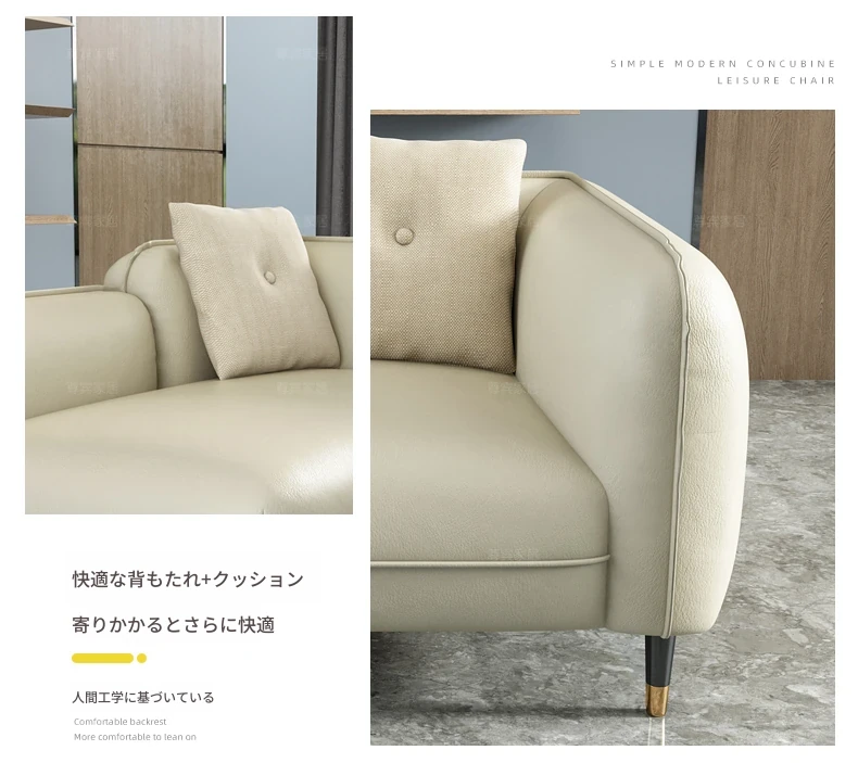 北欧デザインの2人用本革ソファ - モダンなカウチスタイル、コンパクトで小さなお部屋に最適!リラックスできるネット人気のレジャーチェアで、空間を節約しながらおしゃれなリビングを演出!