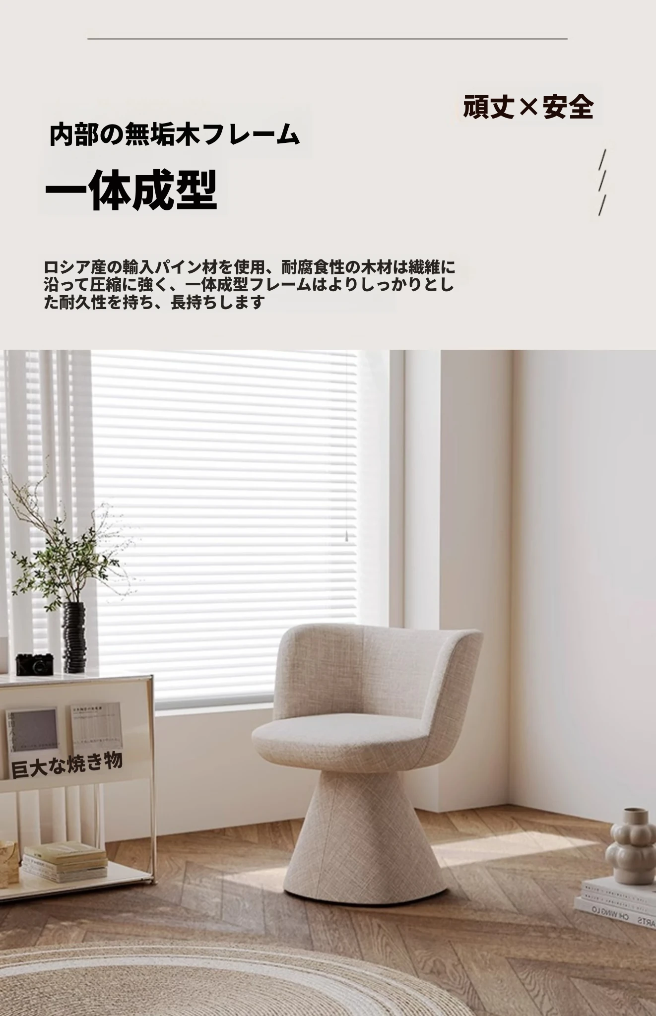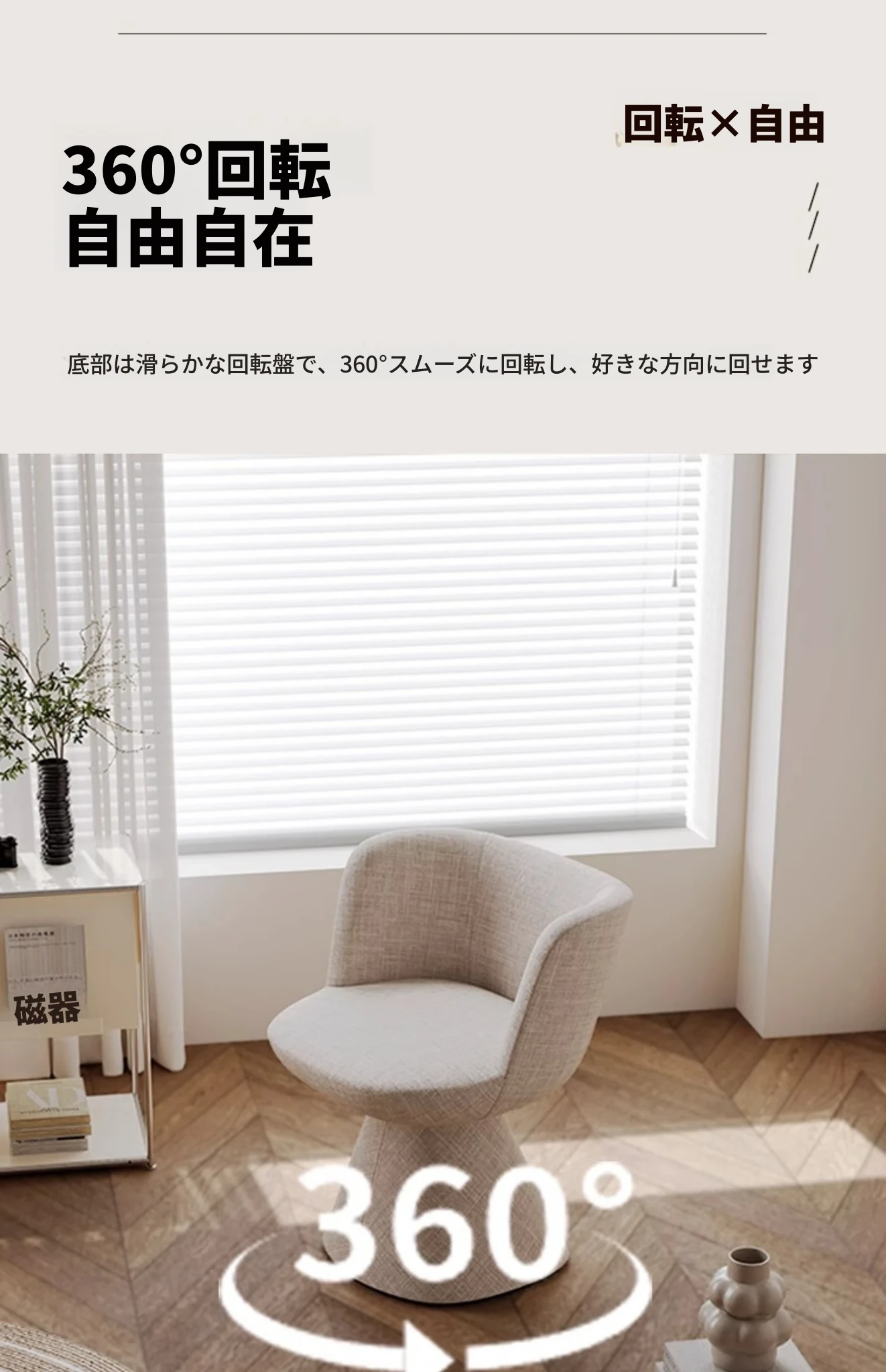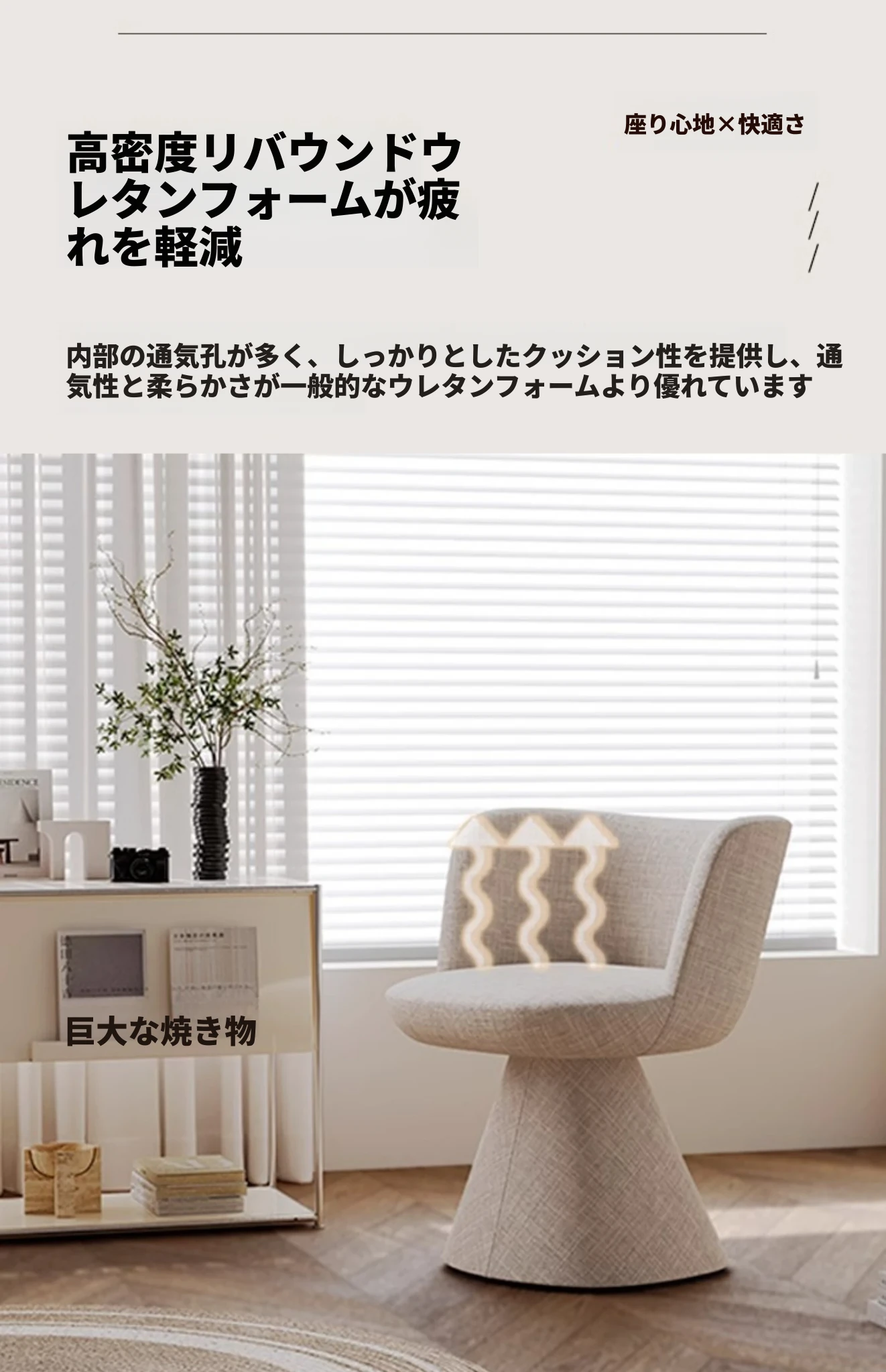 北欧デザインの回転式化粧椅子|おしゃれなリビングや寝室にぴったり|クリーミーカラーで優雅な雰囲気を演出|リラックスできる談話椅子としても最適な一品!
