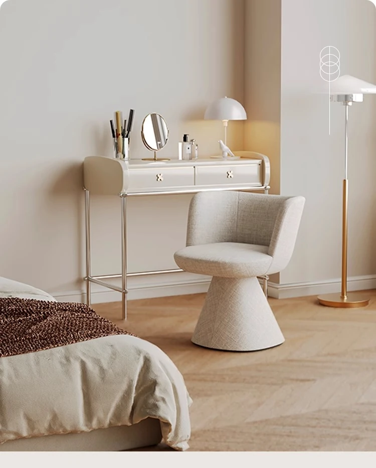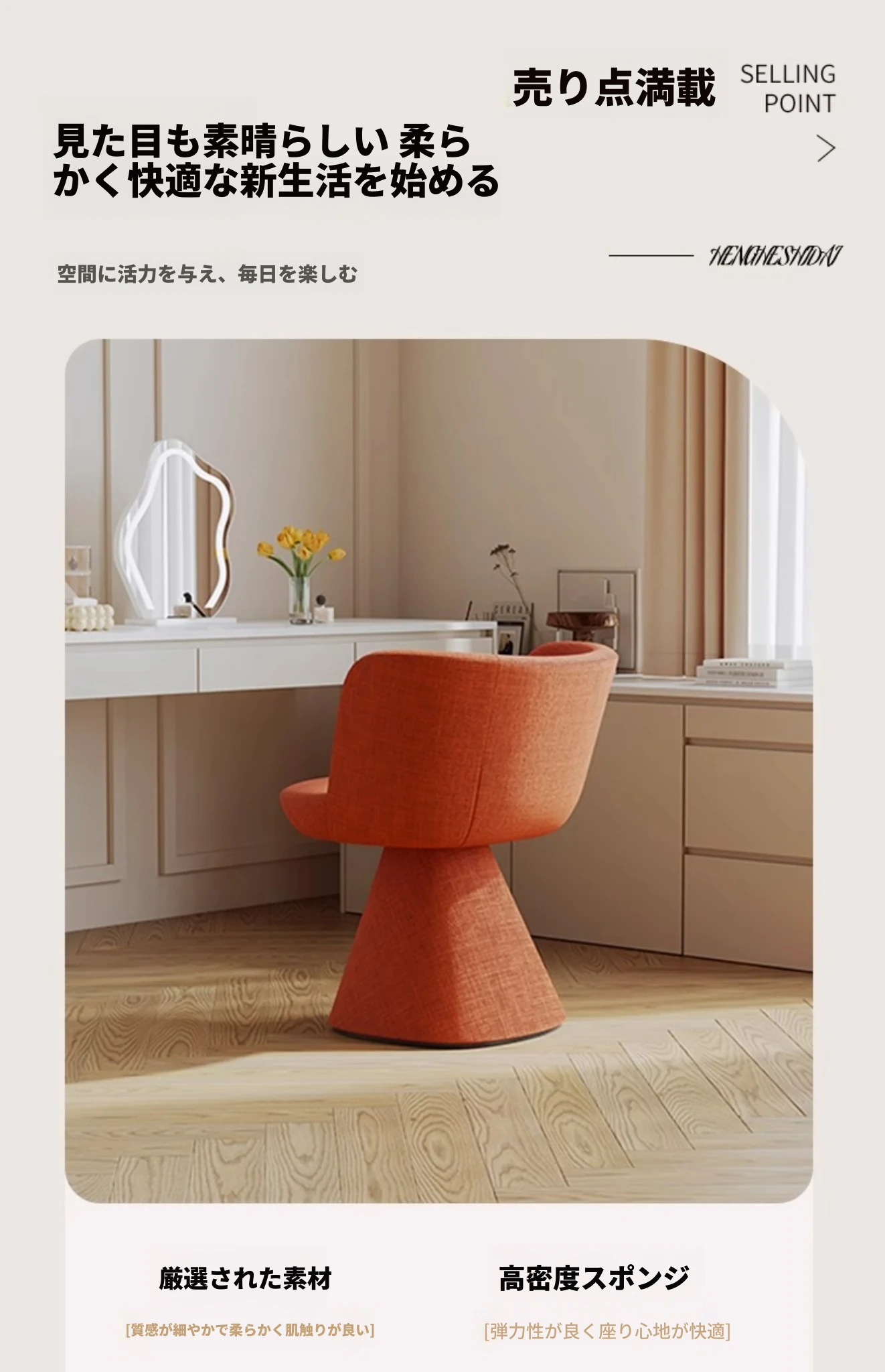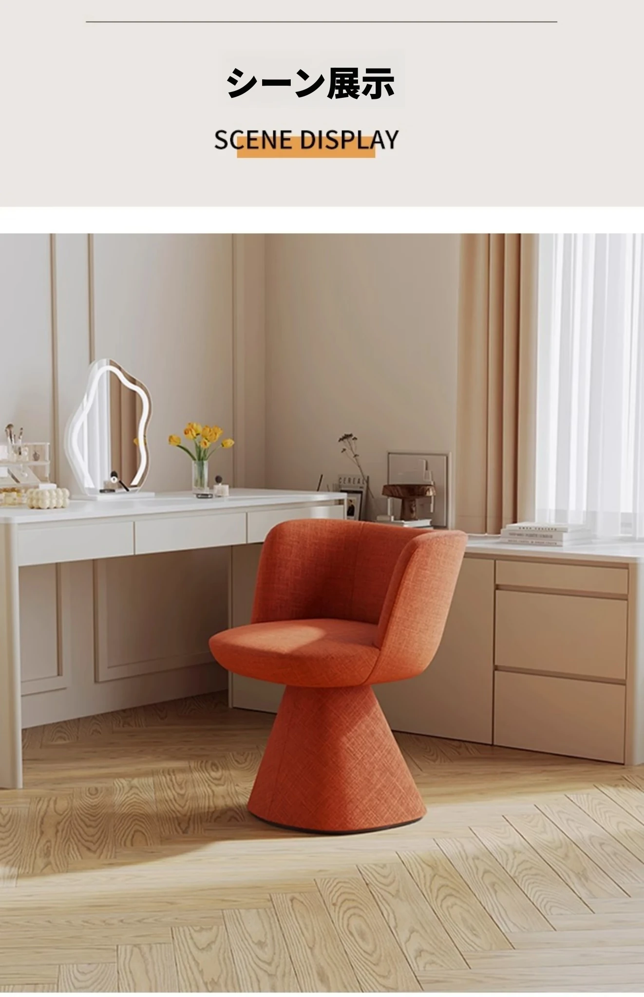 北欧デザインの回転式化粧椅子|おしゃれなリビングや寝室にぴったり|クリーミーカラーで優雅な雰囲気を演出|リラックスできる談話椅子としても最適な一品!