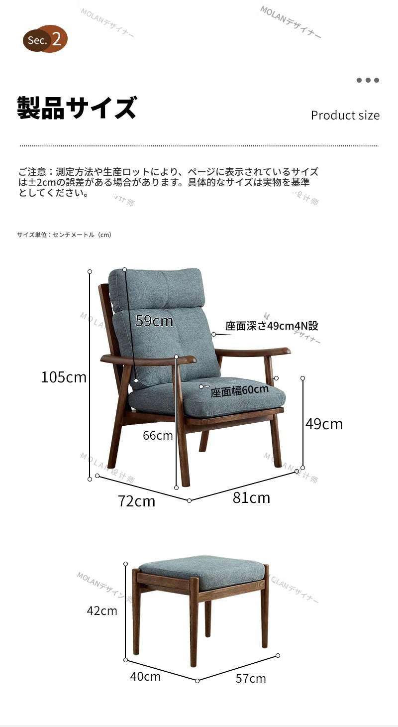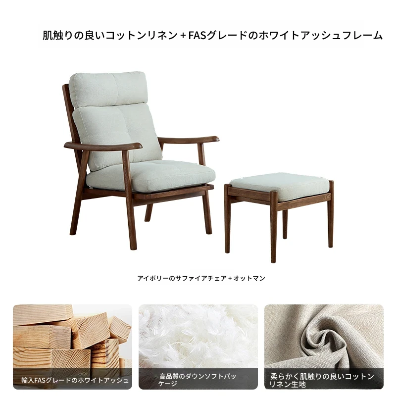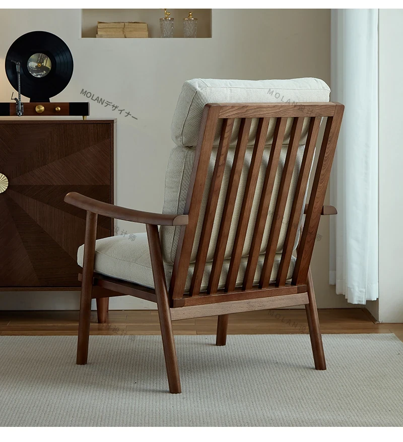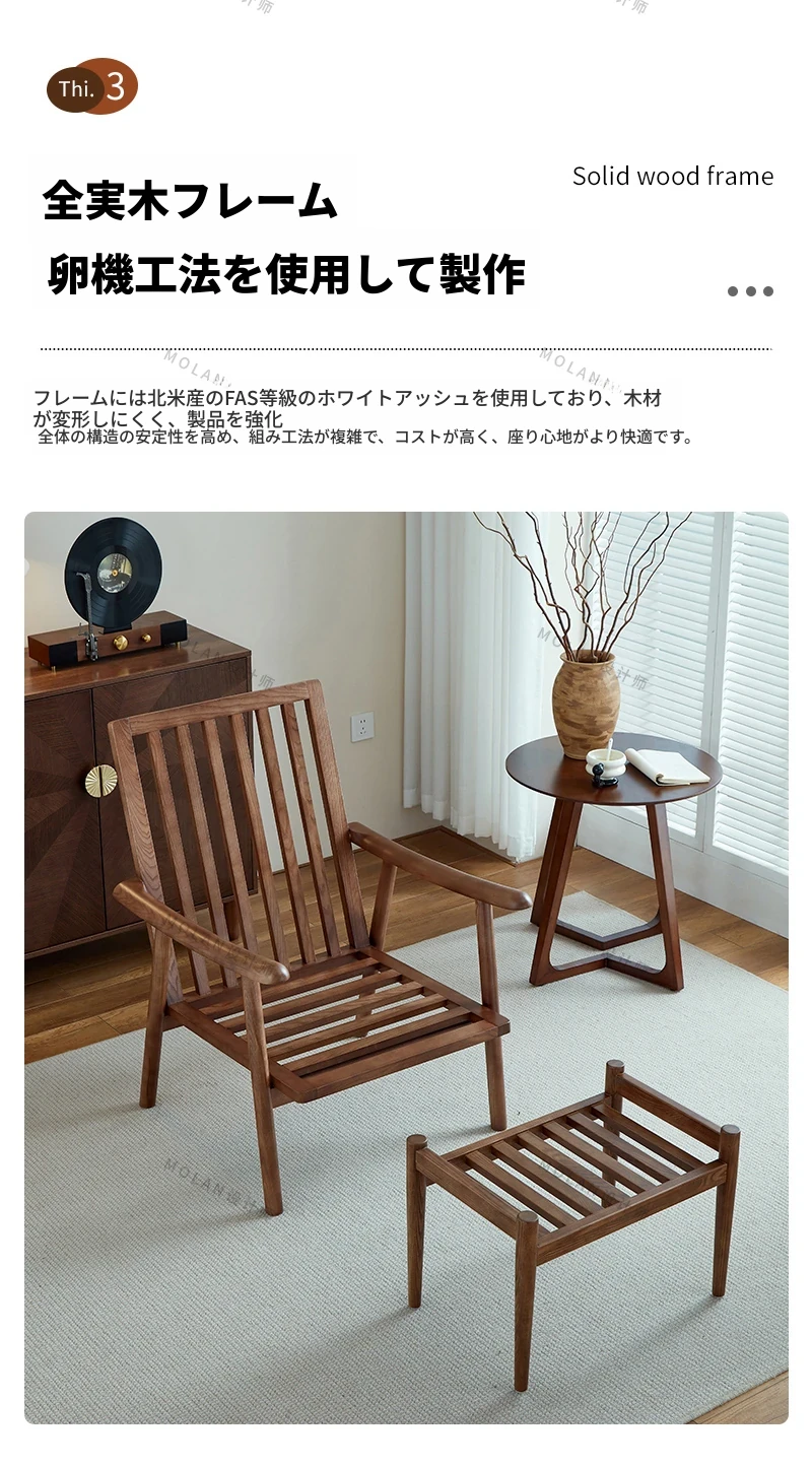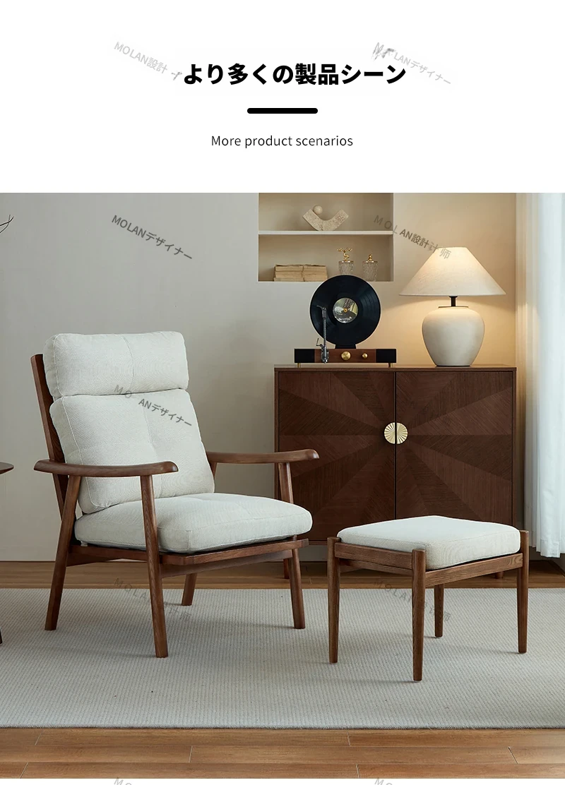 ヴィンテージ風の一人掛けソファ、クリーミーなウルフデザイン、北米産のブラックウォールナット使用!デザイナーによるクリエイティブな無垢材リラックスチェアで、居心地の良い空間を演出します。