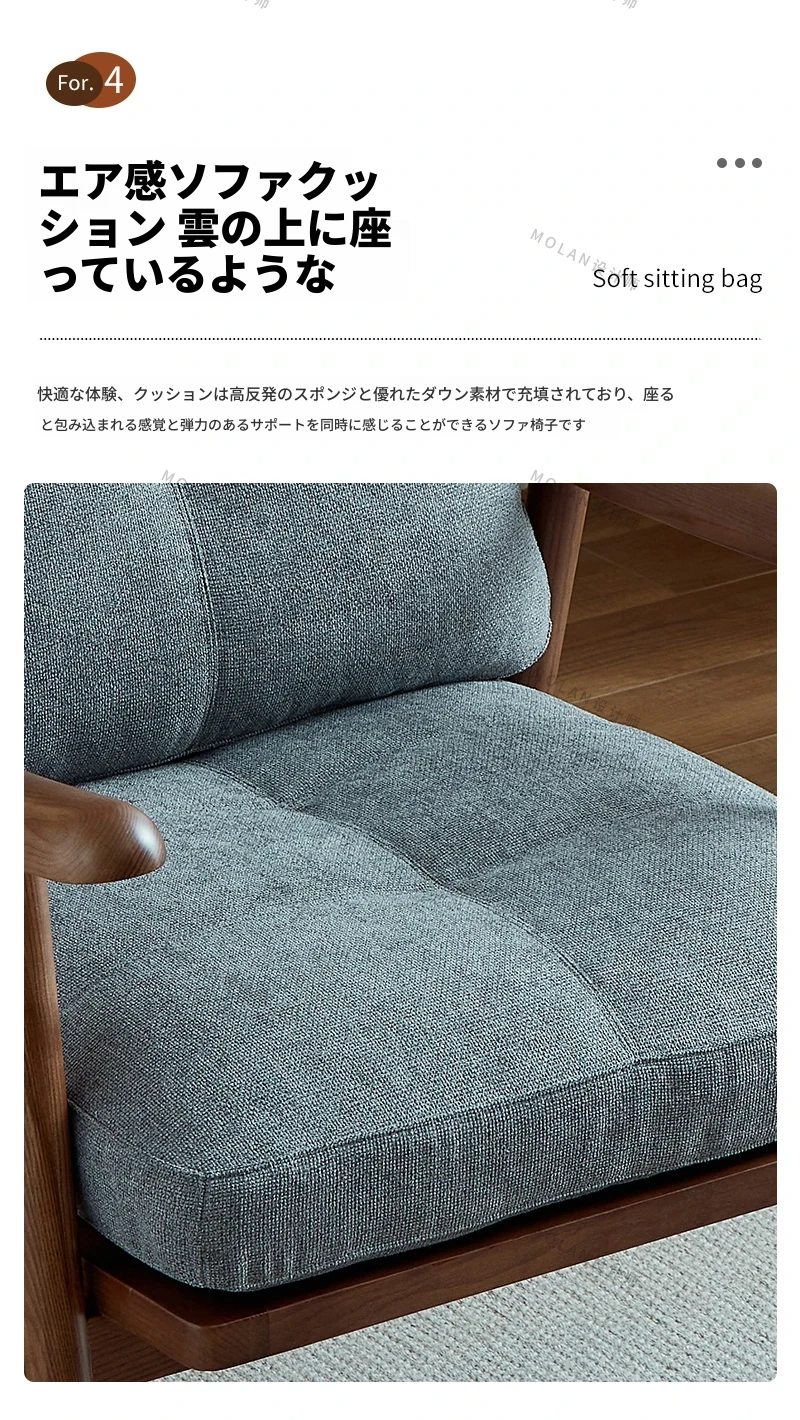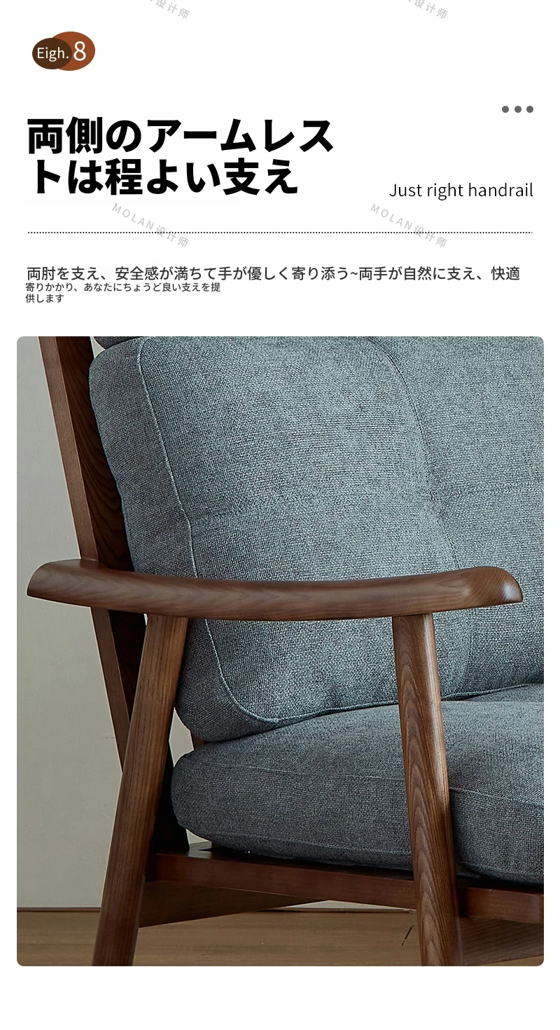 北欧スタイルの一人掛けソファ、布製でおしゃれなデザイン!アメリカンウッドのコーヒーテーブルにぴったりなリビング用L字型ソファ。リラックスできる虎のような居心地の良さを体験してください!