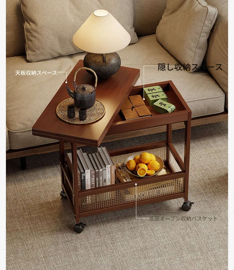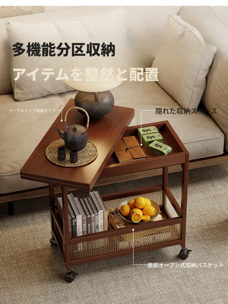 移動式の茶卓!おしゃれなサイドテーブルとして、リビングやバルコニーにぴったり。実木製で小型ながら、クリエイティブなデザインが魅力の角テーブルです。あなたの空間を素敵に彩ります!