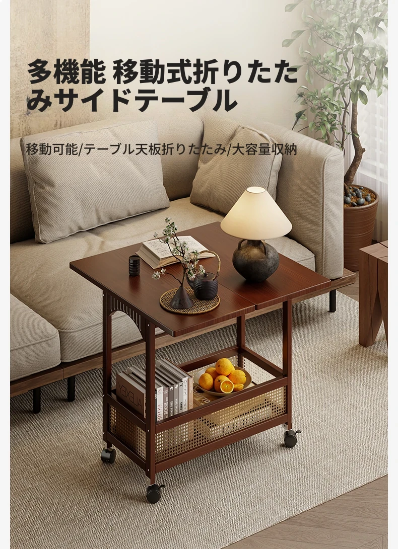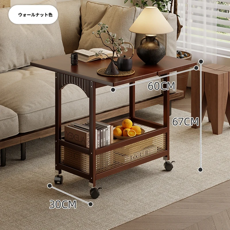 主図熱売商品⭐【無垢材】クラシックウォールナット色 | 折りたたみ移動サイドテーブル【60*30*67】
