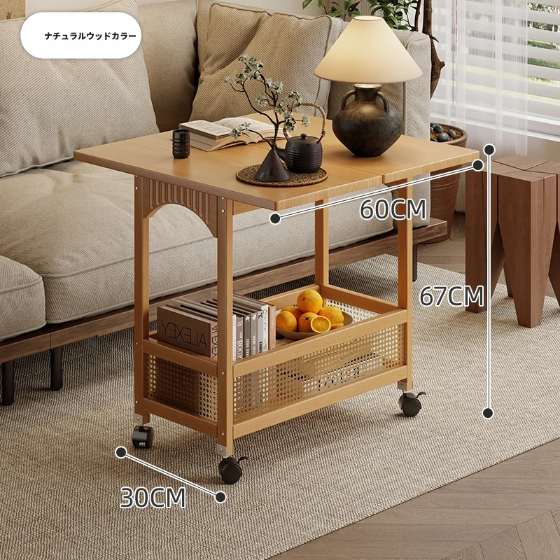 【無垢材】素朴なナチュラルウッド色 | 折りたたみ移動サイドテーブル【60*30*67】