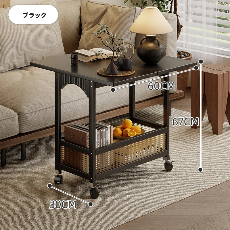 【無垢材】ラグジュアリーブラック色 | 折りたたみ移動サイドテーブル【60*30*67】
