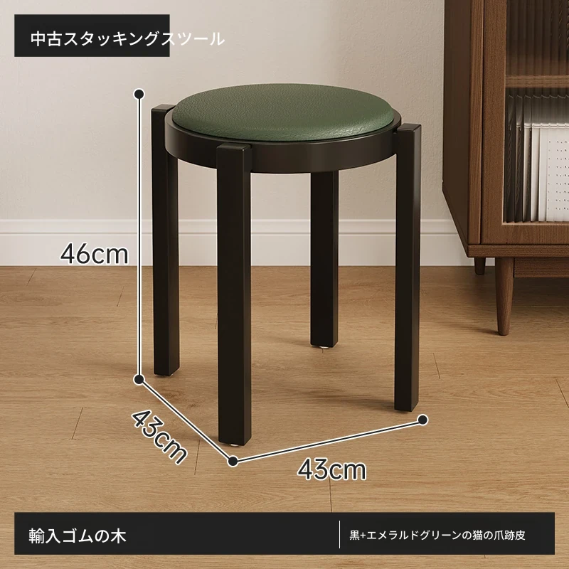 【輸入無垢材】ブラック│翠緑-猫爪皮製スツール【ペットフレンドリー】【防水防汚】
