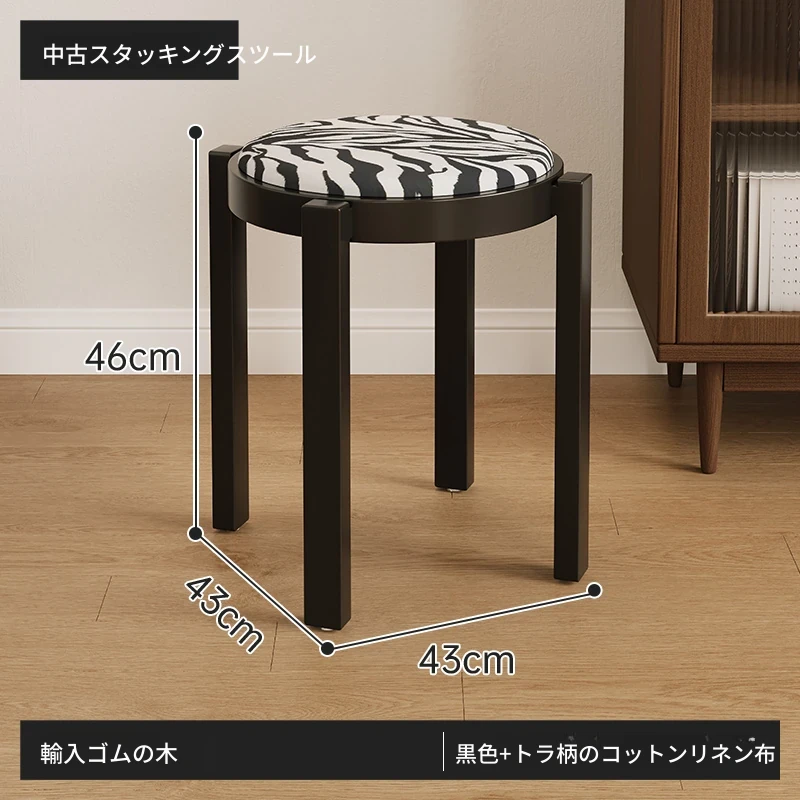 【輸入無垢材】ブラック│トラ模様-コットンリネン布製スツール【天然環境保護】【通気性吸湿性】