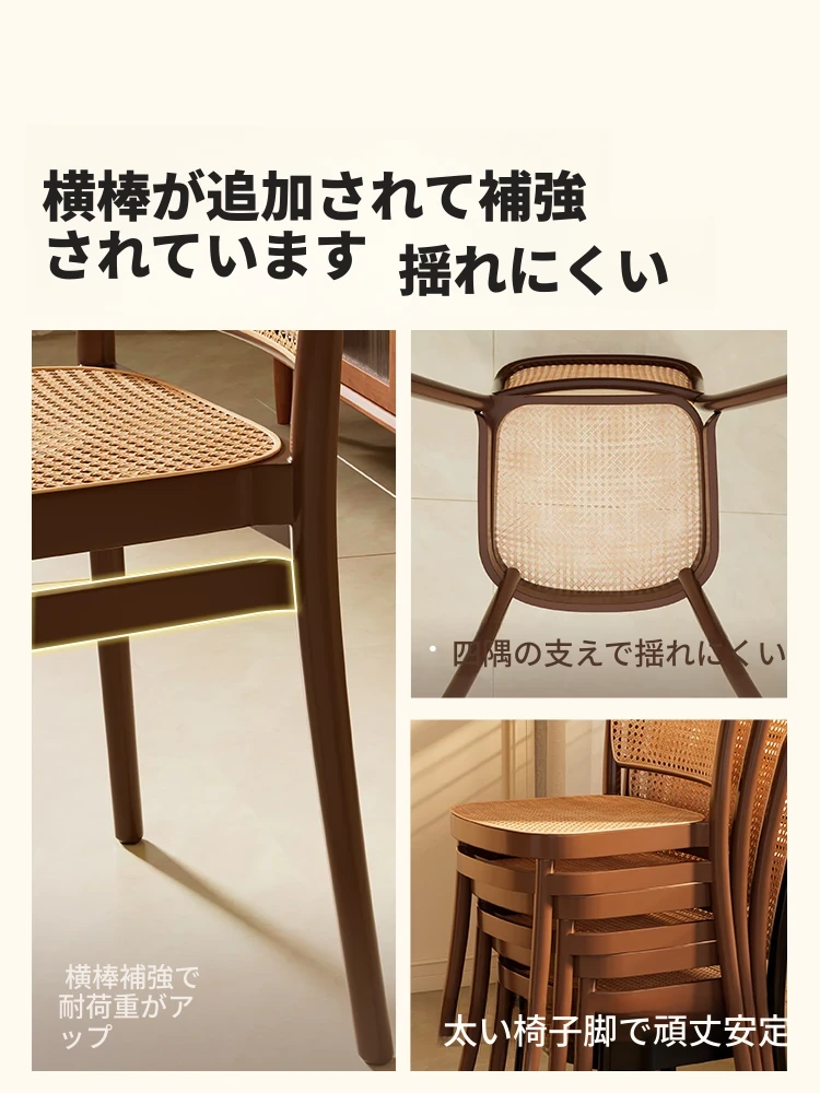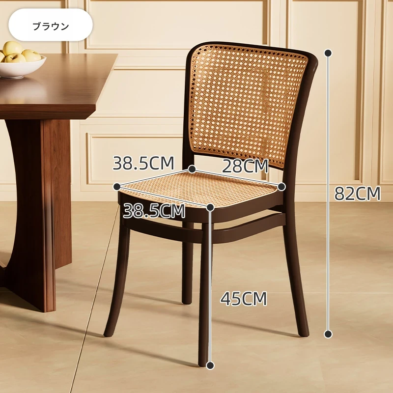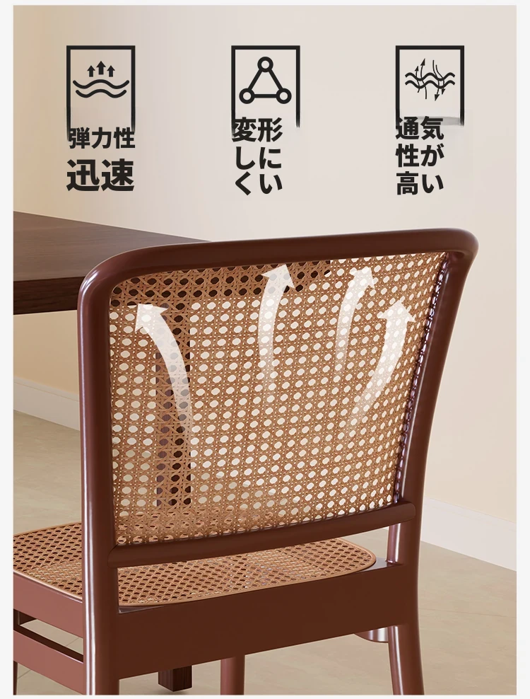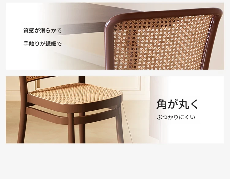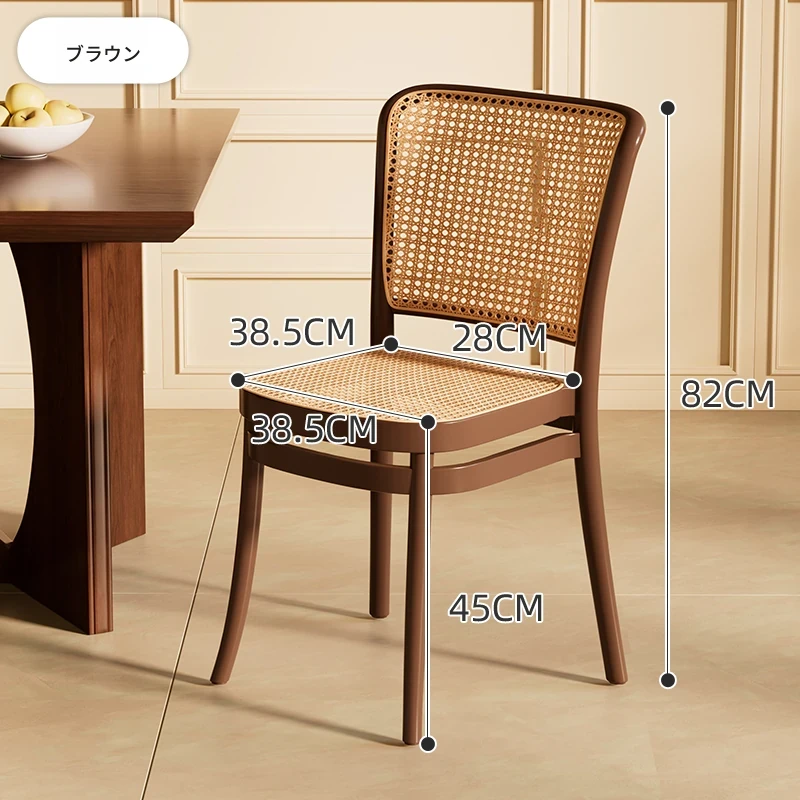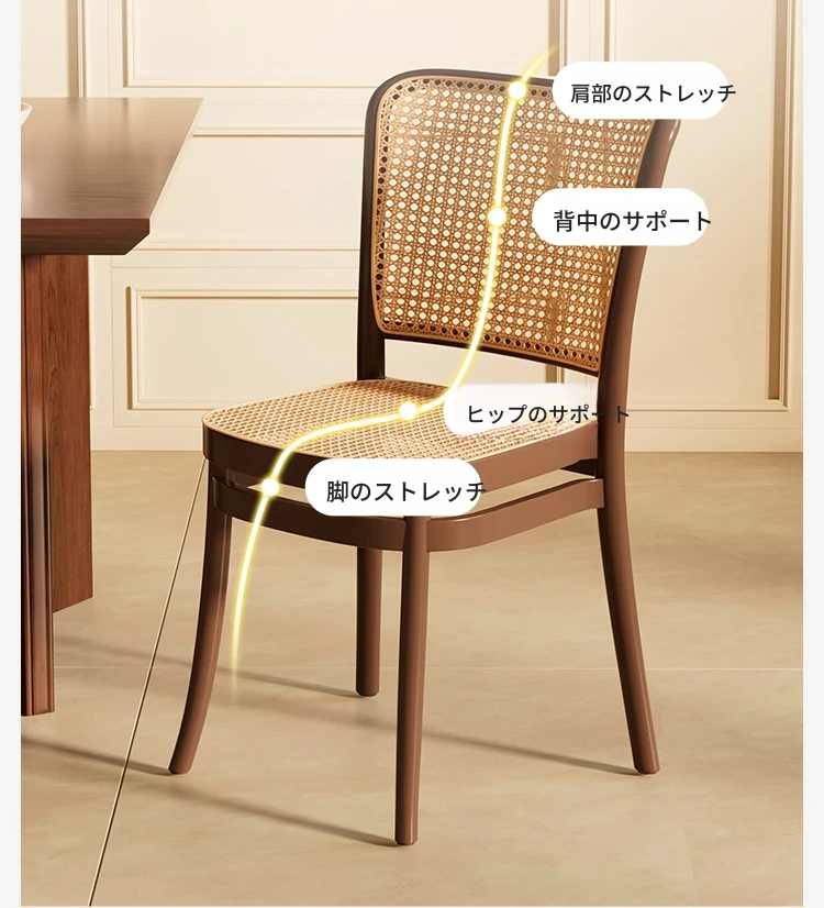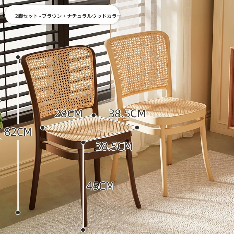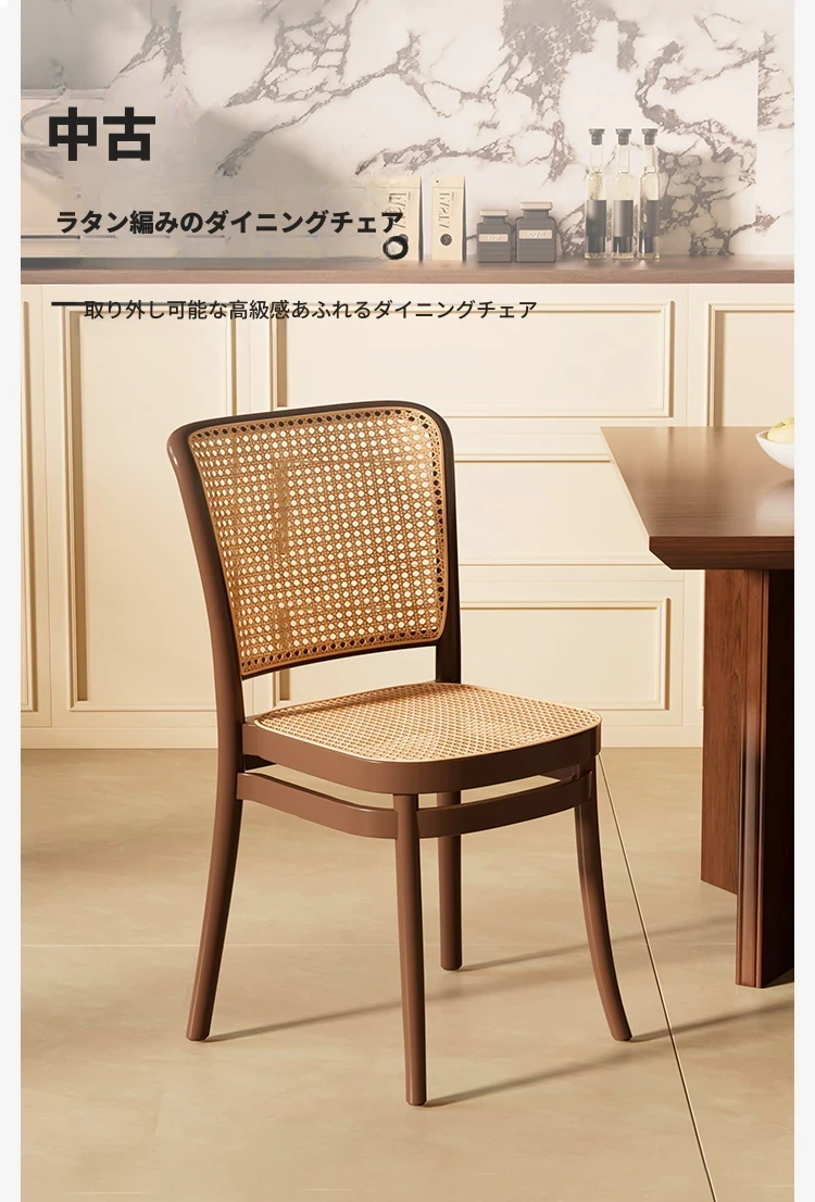 高級感溢れる藤編みチェア|民宿やカフェに最適なレトロ風ダイニングチェア|軽やかなプラスチック背もたれ付き|リラックスできるティーチェアとしてもおすすめ!