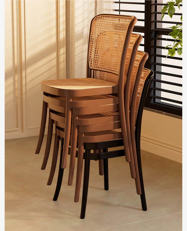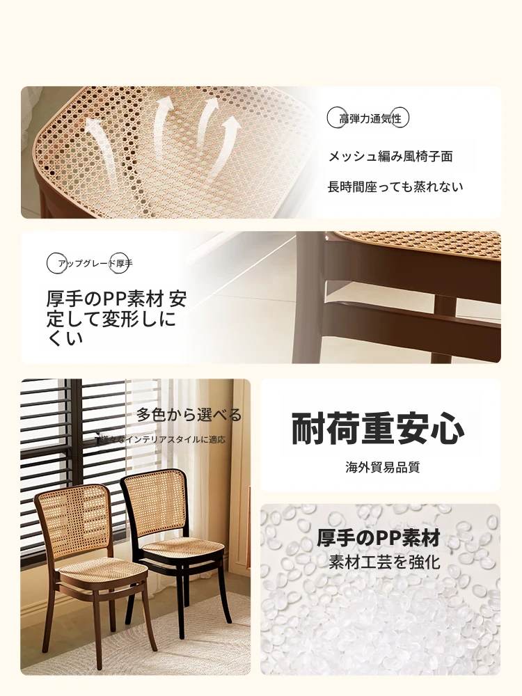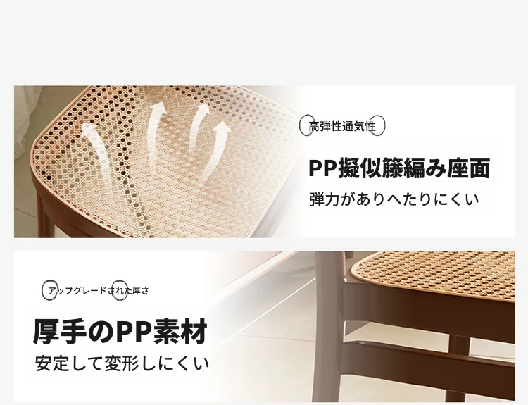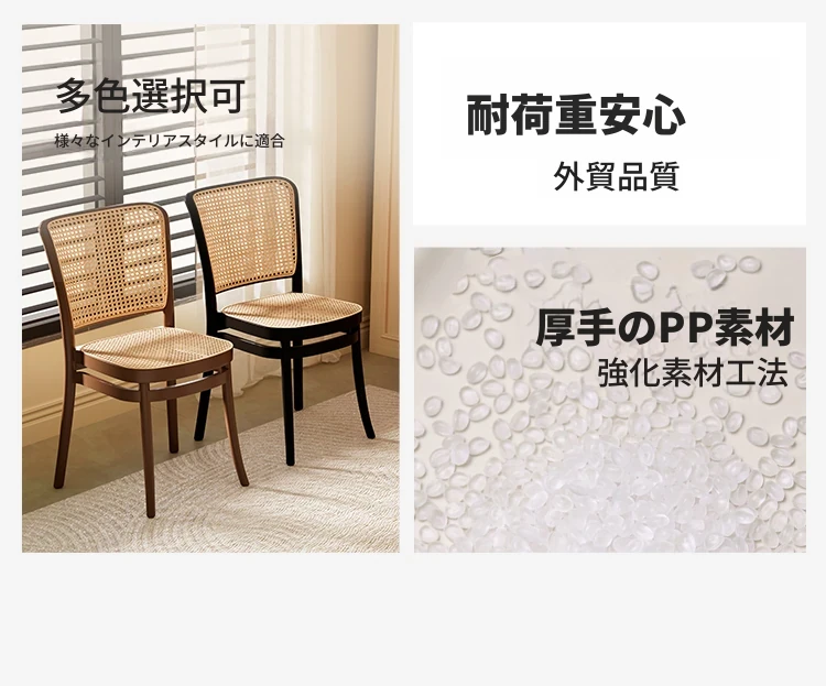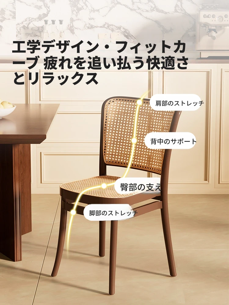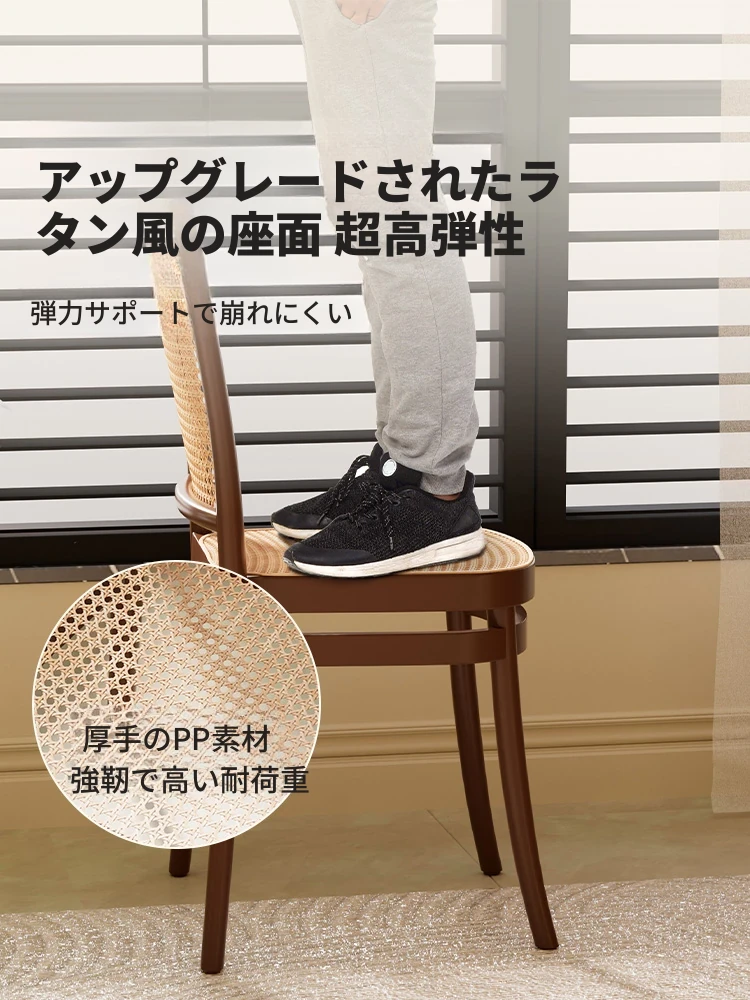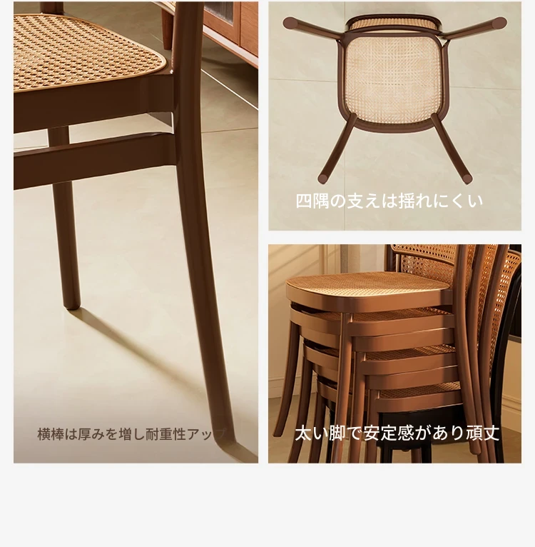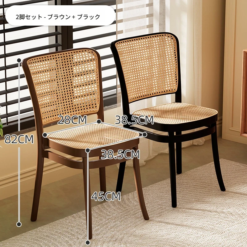 高級感溢れる藤編みチェア|民宿やカフェに最適なレトロ風ダイニングチェア|軽やかなプラスチック背もたれ付き|リラックスできるティーチェアとしてもおすすめ!