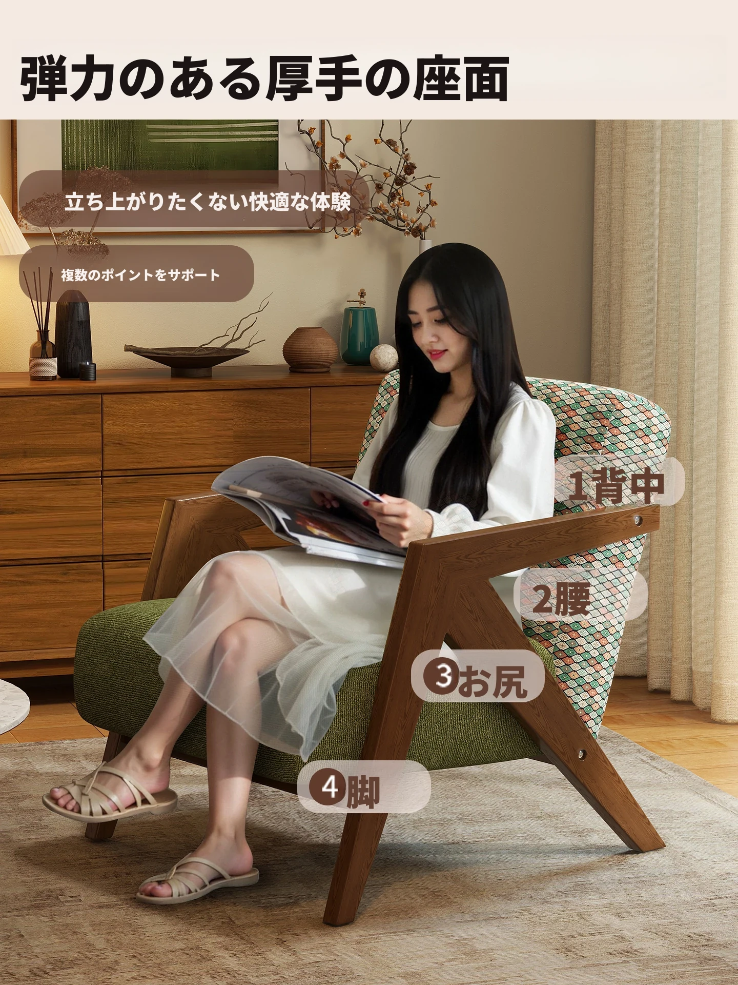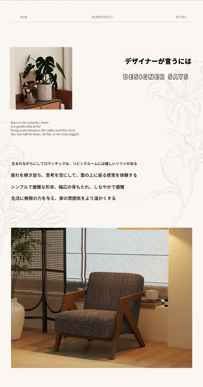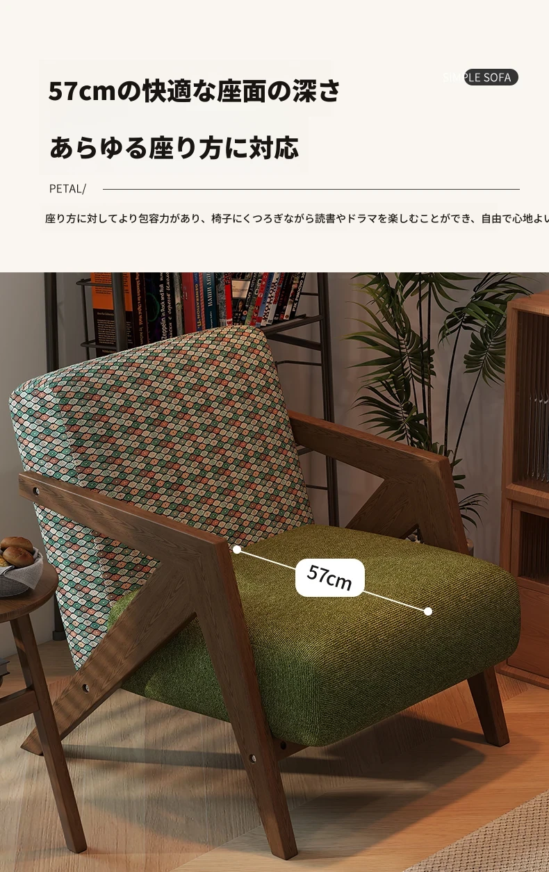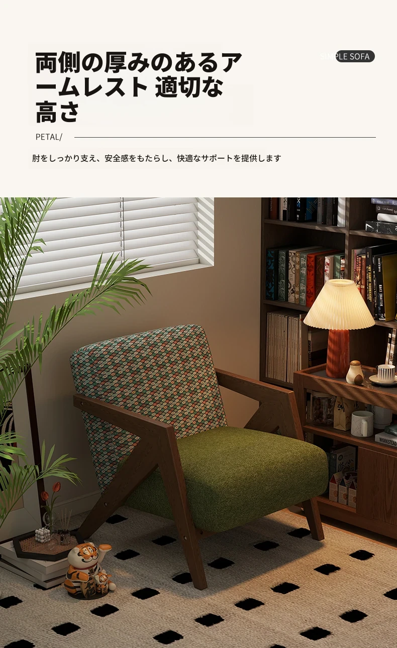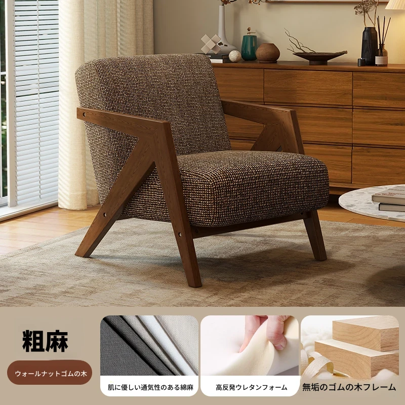 リチャード・フレンチスタイルの一人掛けソファチェア|中古風おしゃれなリビング・バルコニー用リラックスチェア|高品質無垢材使用|ホテルや宿泊施設にも最適なデザイン