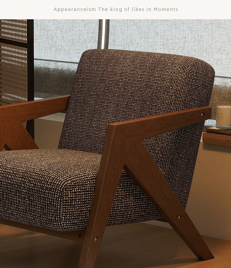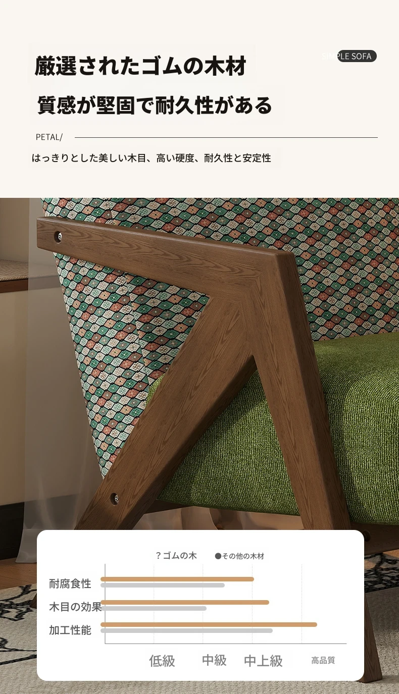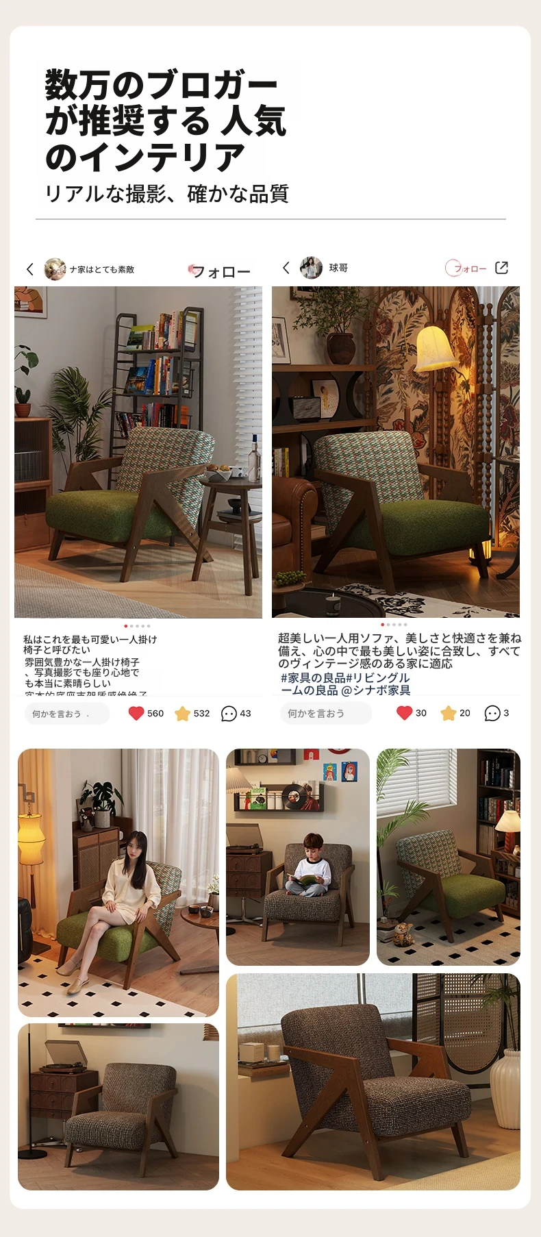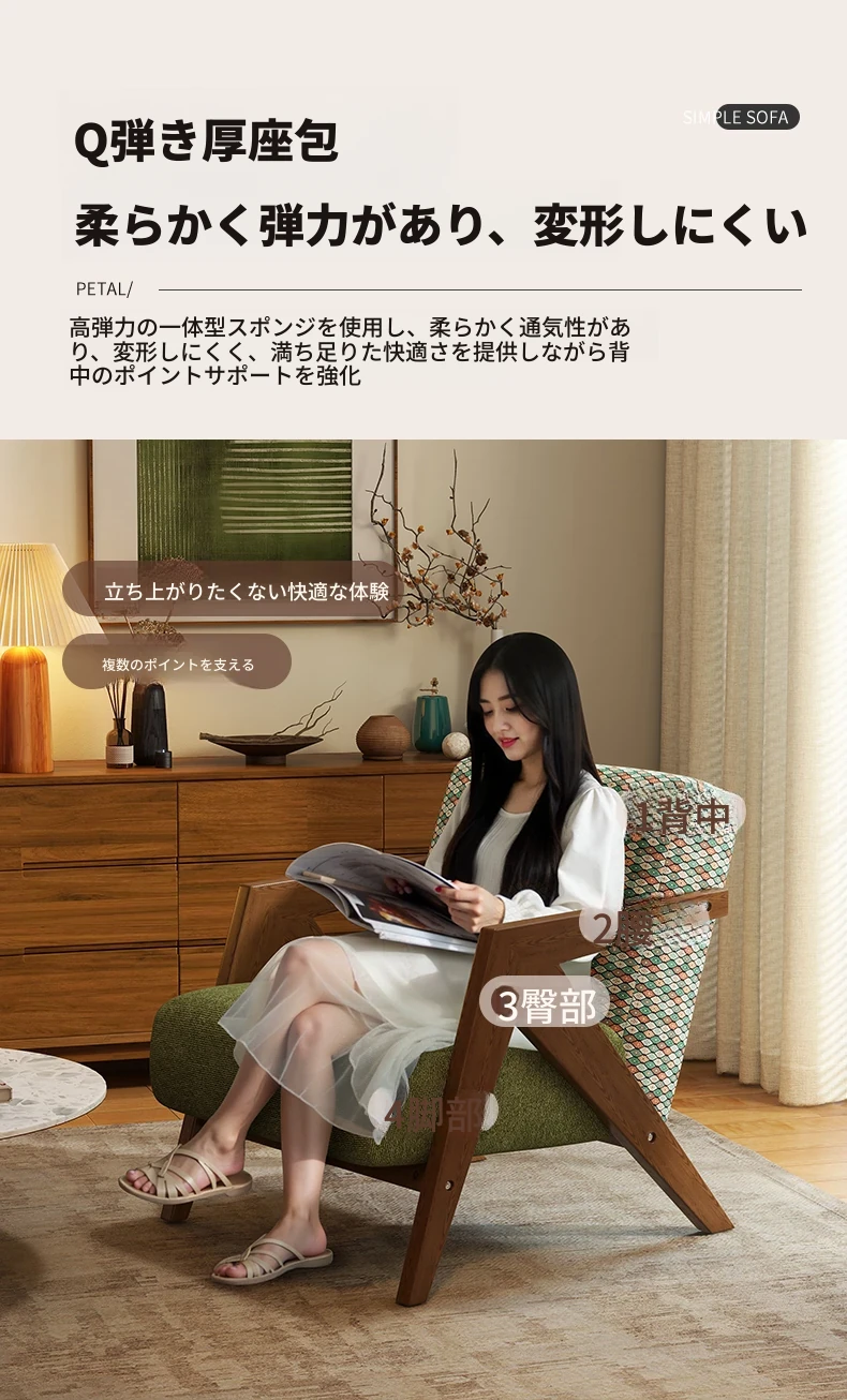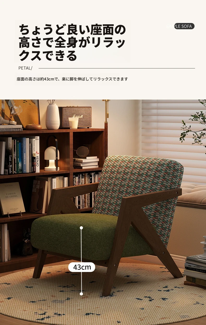 リチャード・フレンチスタイルの一人掛けソファチェア|中古風おしゃれなリビング・バルコニー用リラックスチェア|高品質無垢材使用|ホテルや宿泊施設にも最適なデザイン