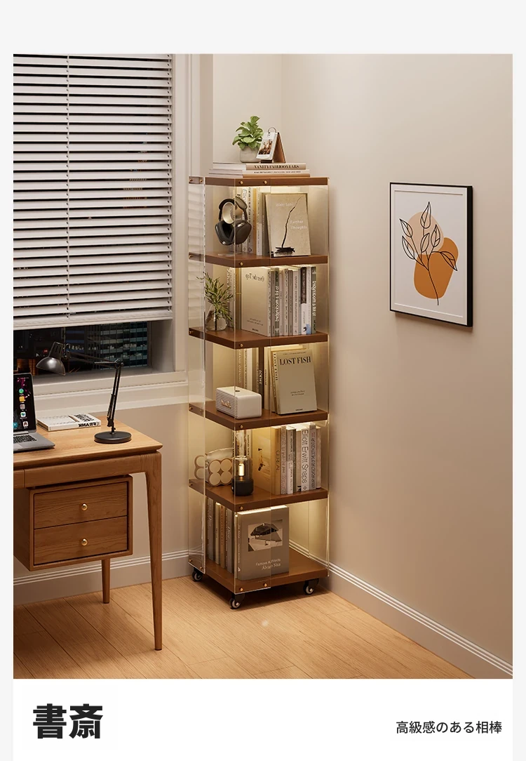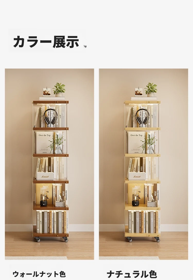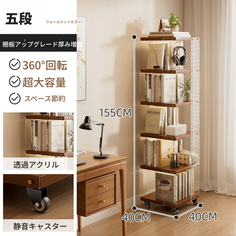 【HD透明】 五層-ウォールナット色 (360度回転) 移動可能
