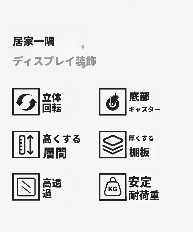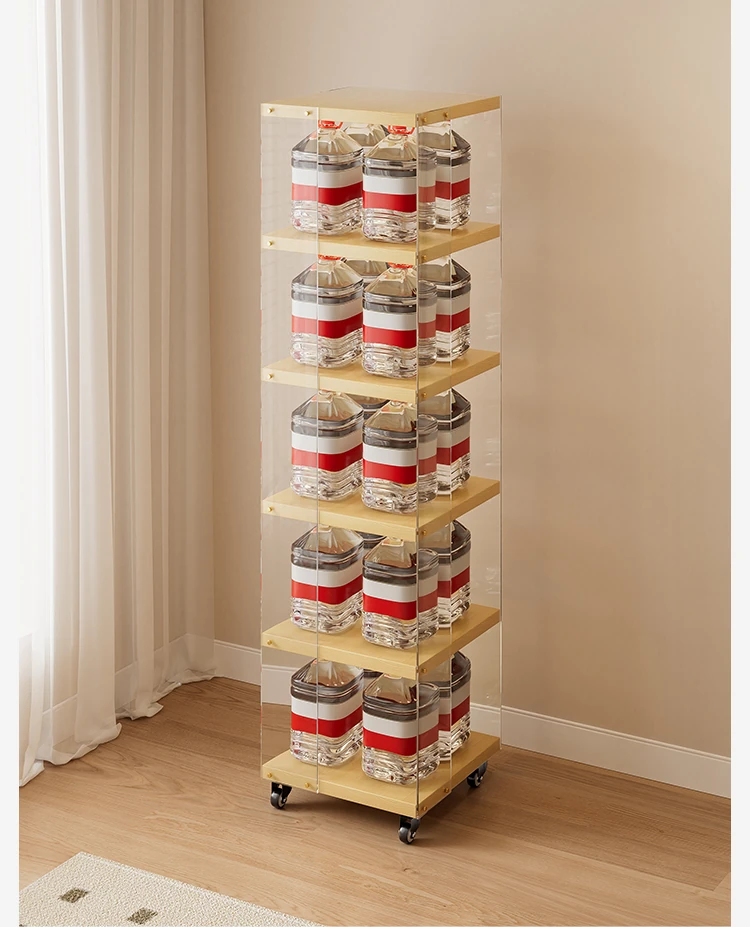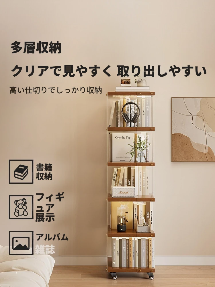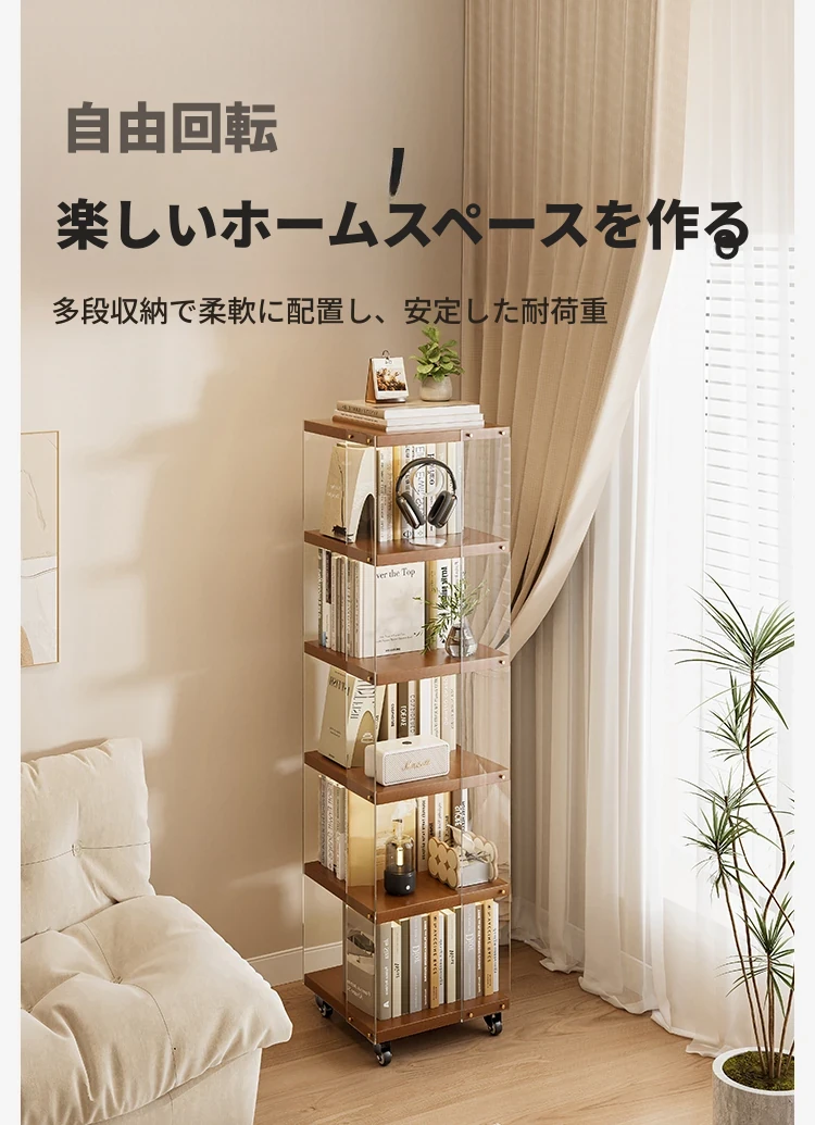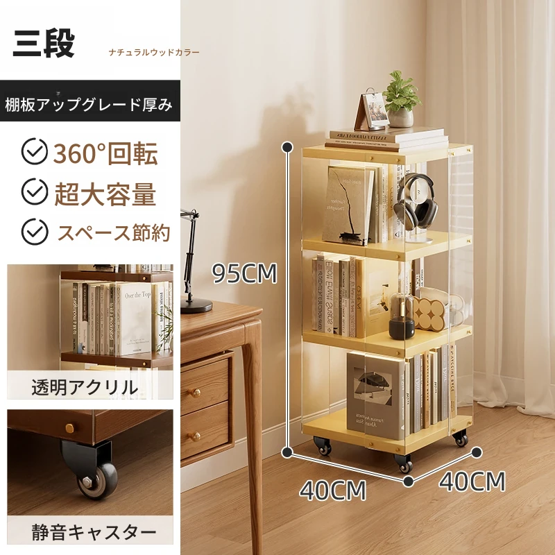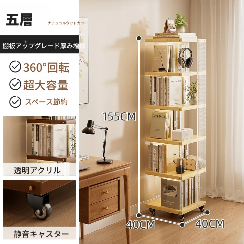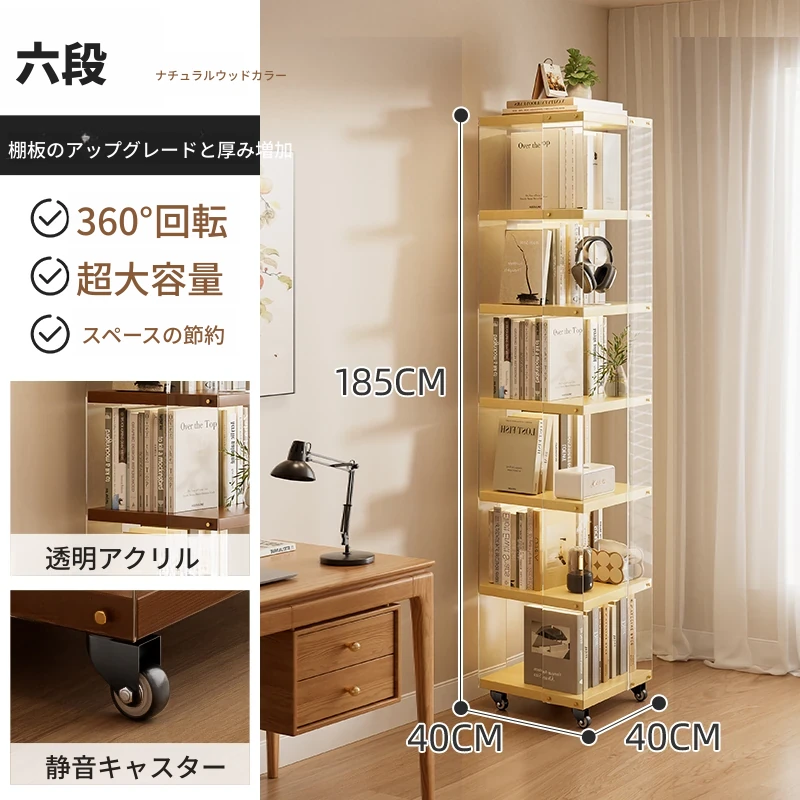【HD透明】 六層-ナチュラル色 (360度回転) 移動可能