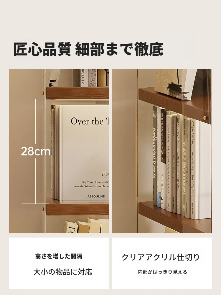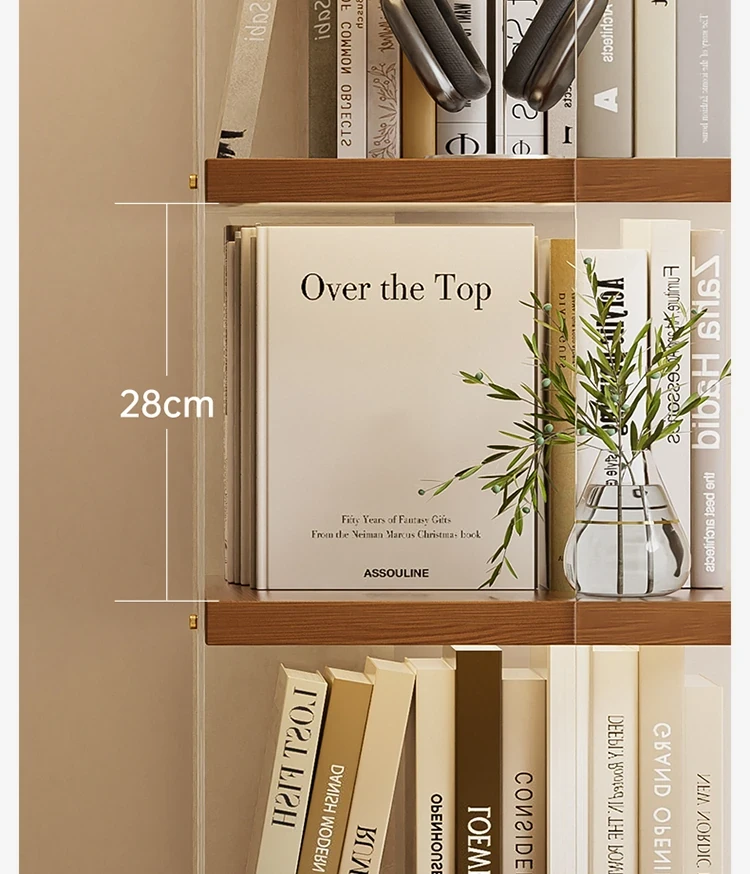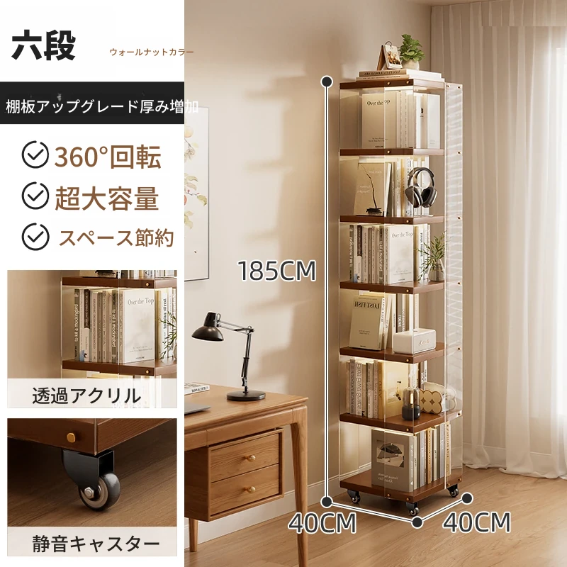【HD透明】 六層-ウォールナット色 (360度回転) 移動可能