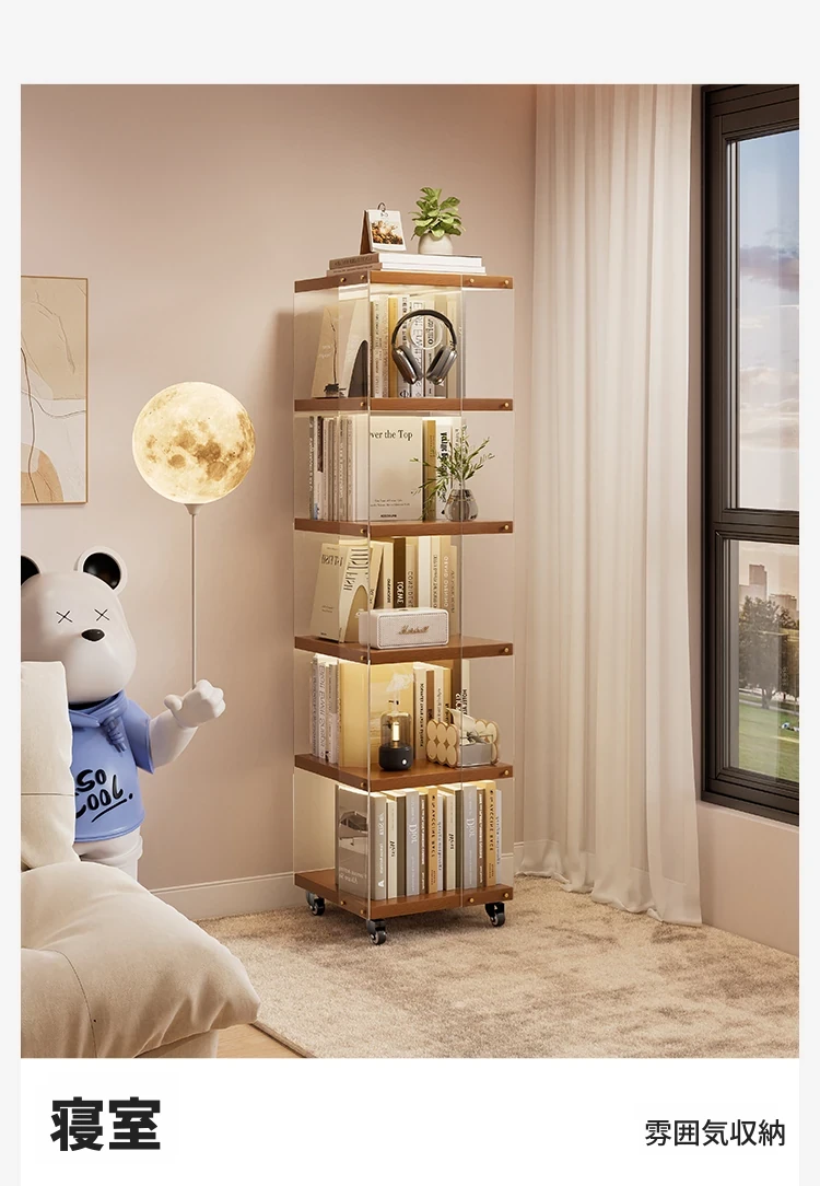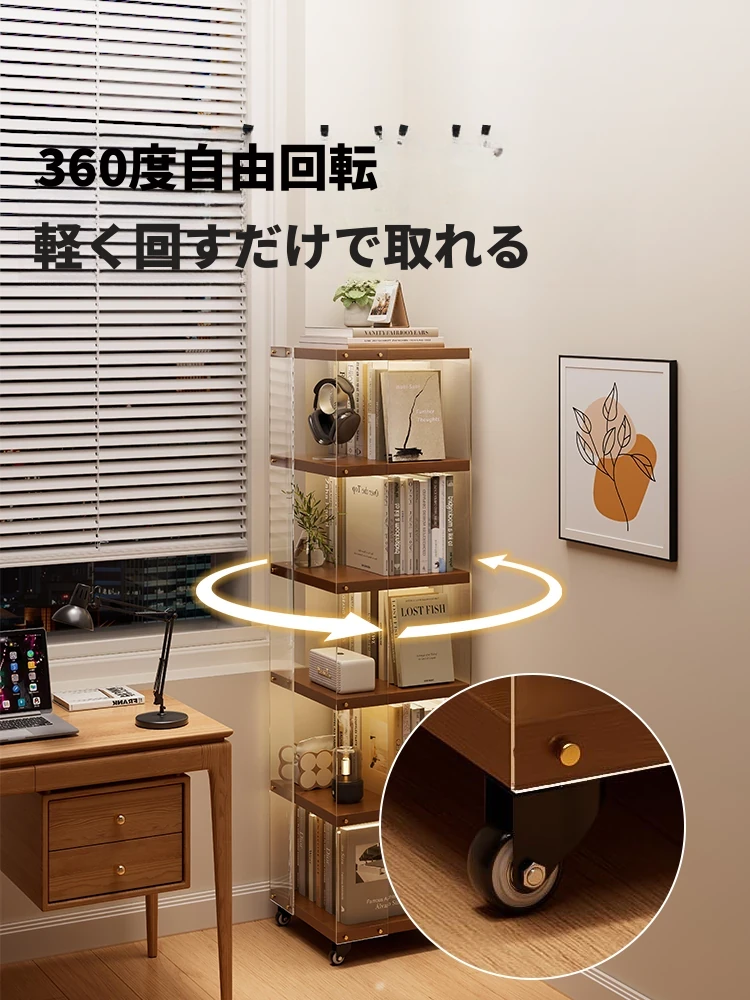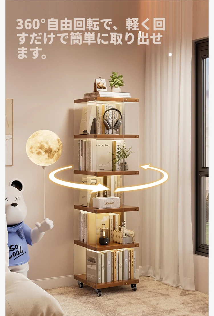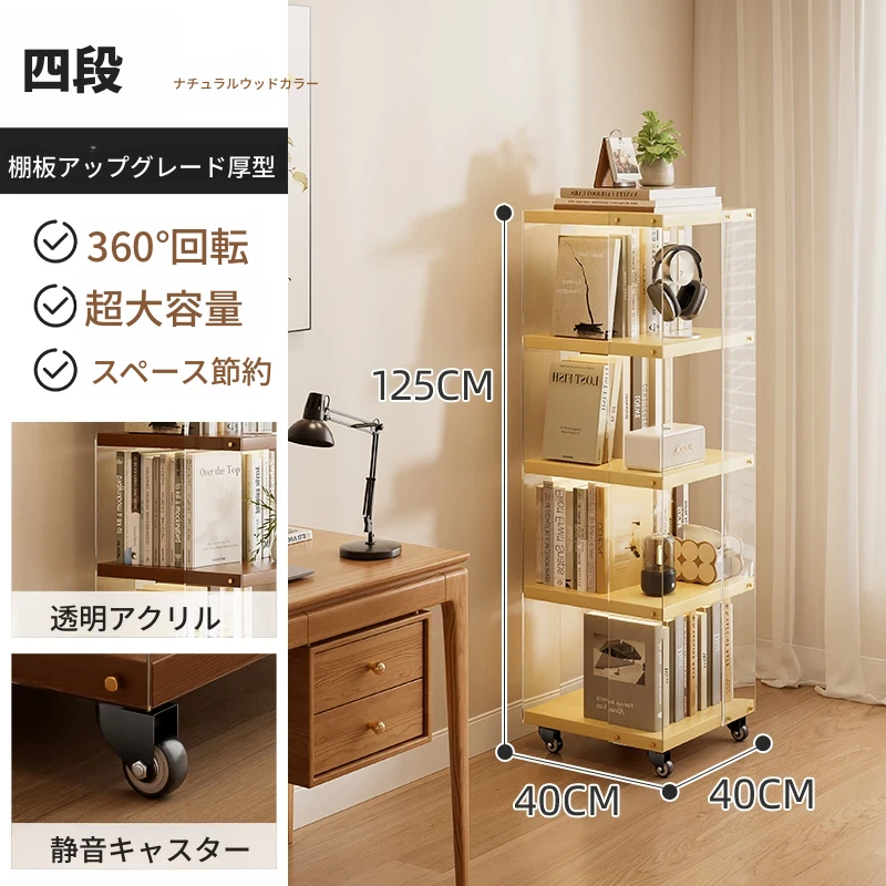 回転式本棚 フロア収納ラック シンプルな天然木製 家庭用ストレージキャビネット 子供部屋やリビングに最適なディスプレイスタンド!おしゃれで機能的な収納力で、お部屋をスッキリ整理!