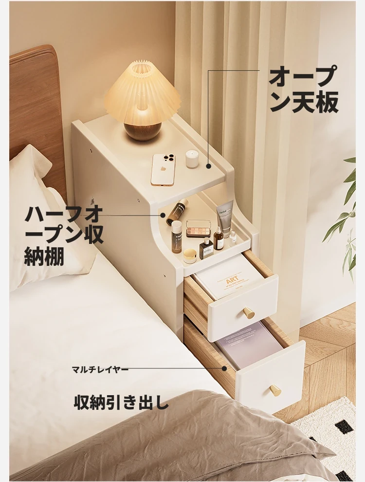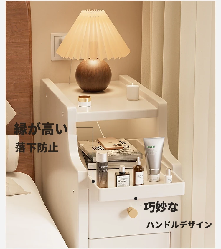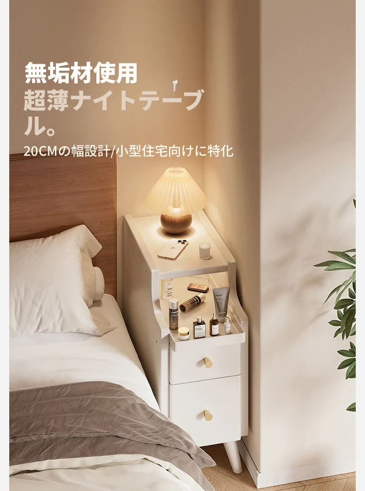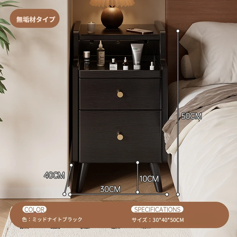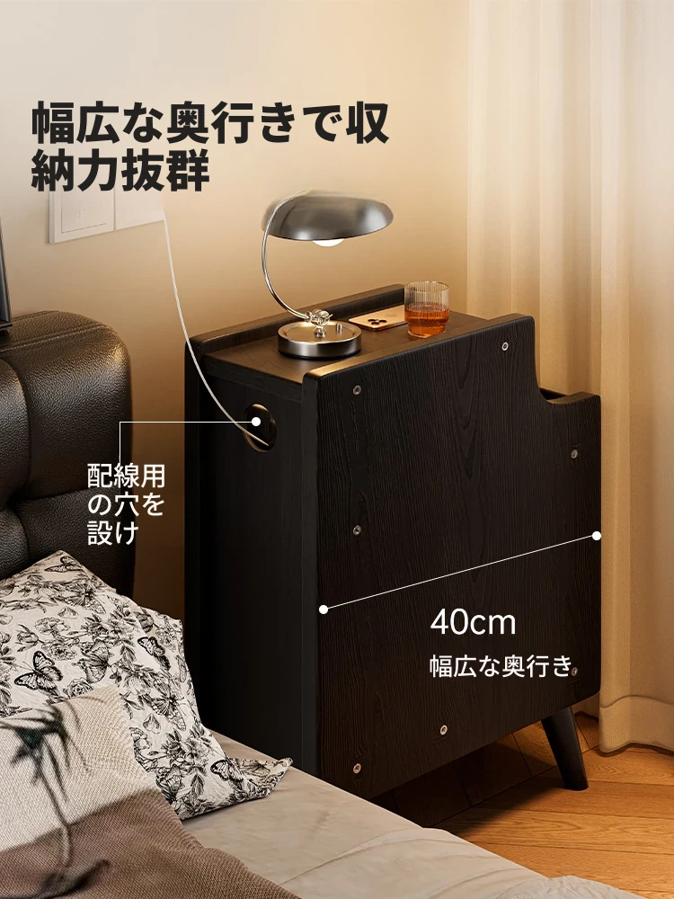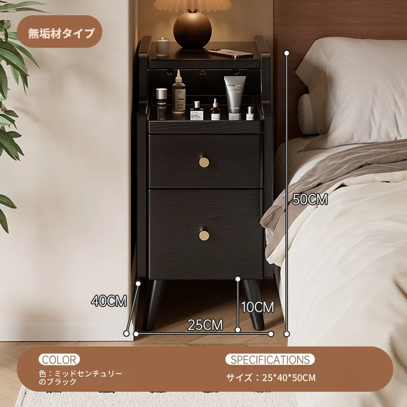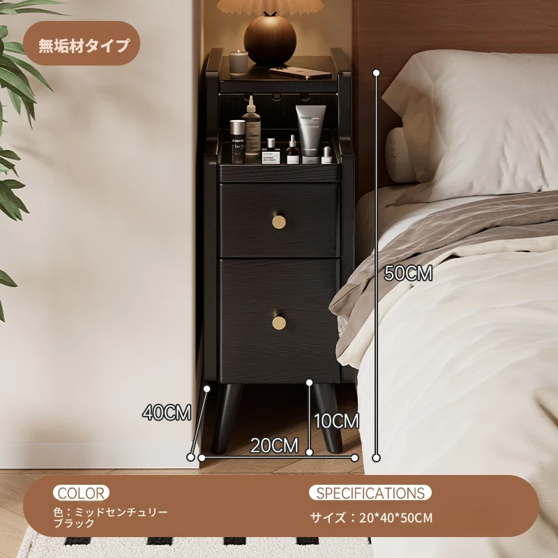 極狭デザインの実木製ブラックナイトスタンド!小型・ミニサイズで、寝室にぴったり。収納力抜群のベッドサイドラックで、主寝室や隙間にもフィットします。おしゃれに整理整頓を楽しんで!
