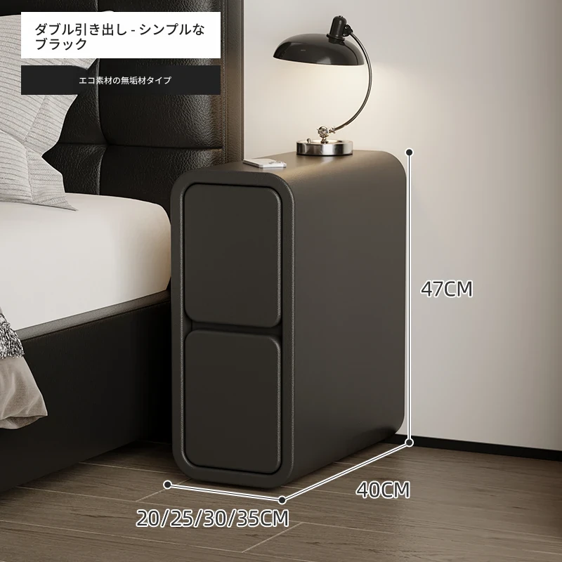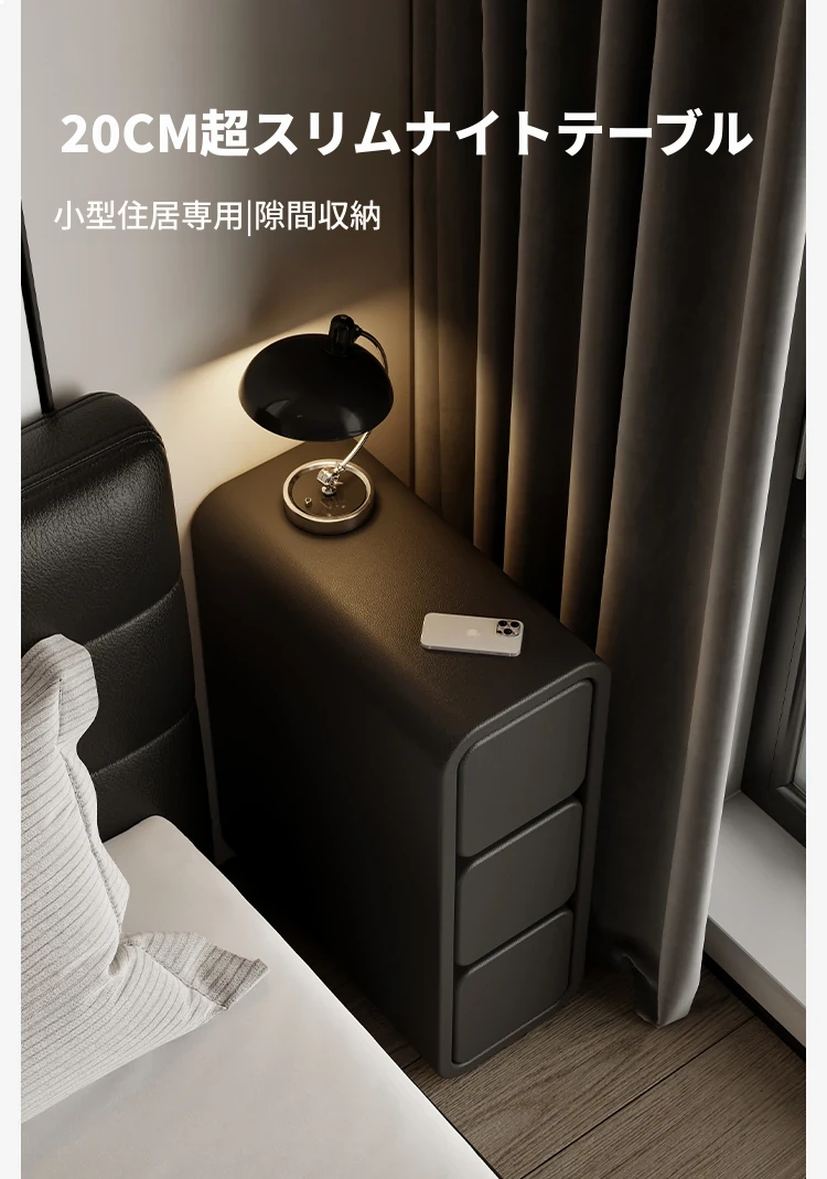 極薄デザインの木製ベッドサイドキャビネット - 高級感あふれるブラック仕上げ、幅20cmのコンパクト収納で省スペース!寝室にぴったりなスタイリッシュなアイテム。