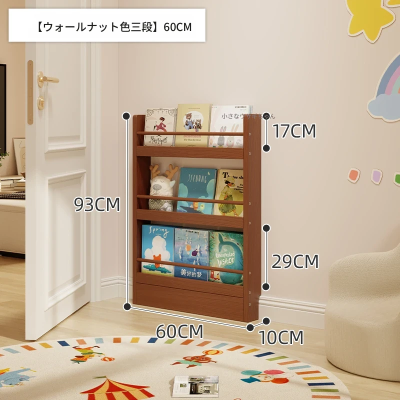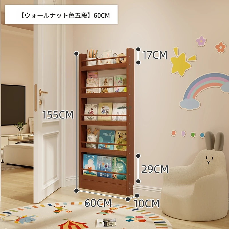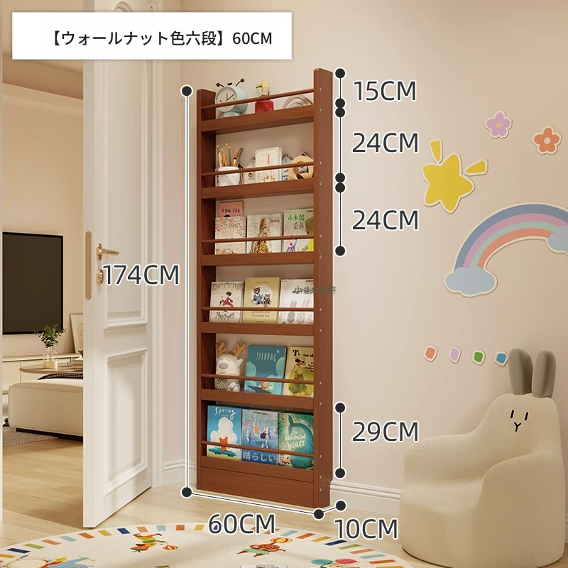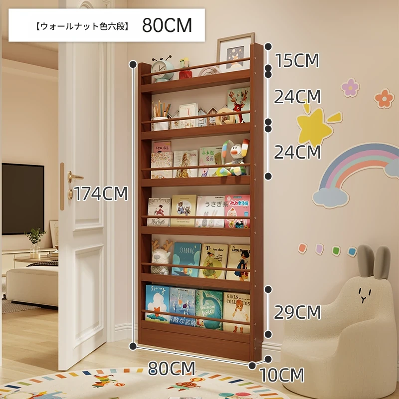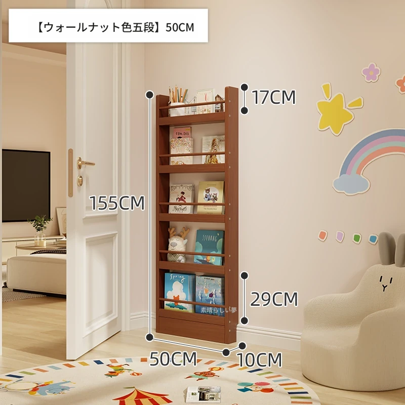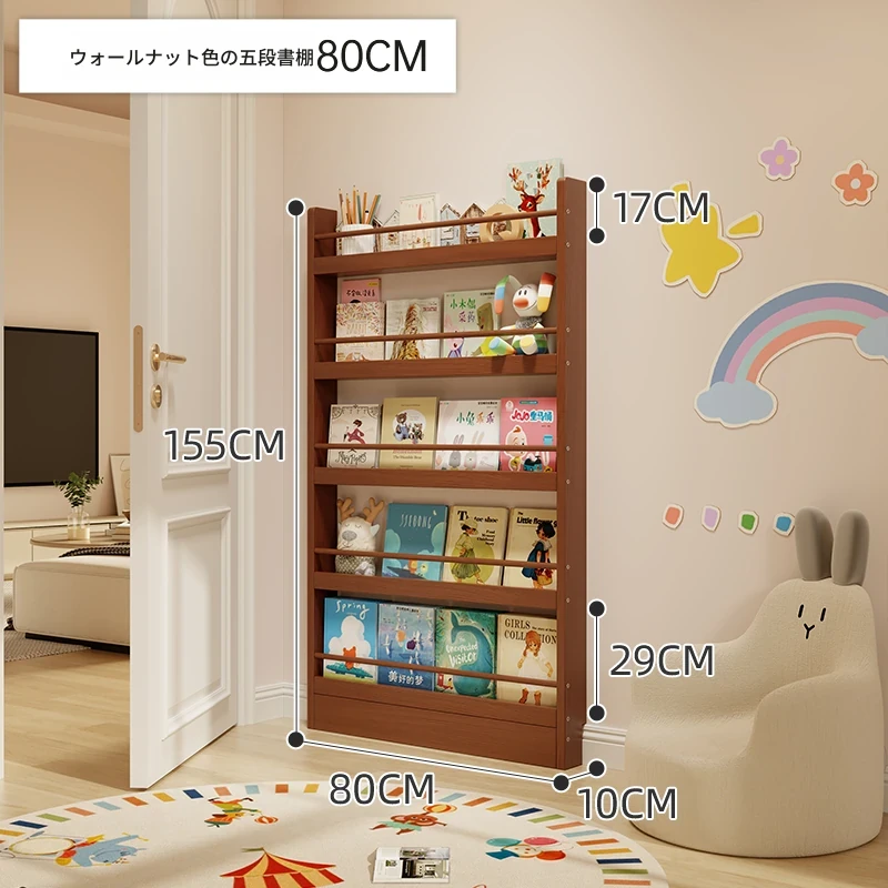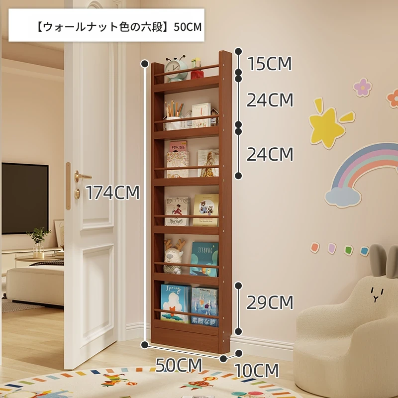 超薄デザインの子供向け絵本ラック!壁際にぴったりフィットするスリムな収納キャビネット。ドアの後ろにも置ける省スペース型のフロアシェルフで、お部屋をスッキリ整理!おしゃれで機能的な収納を実現します!