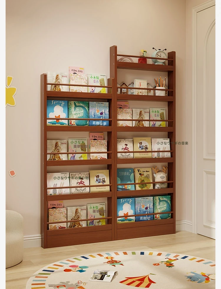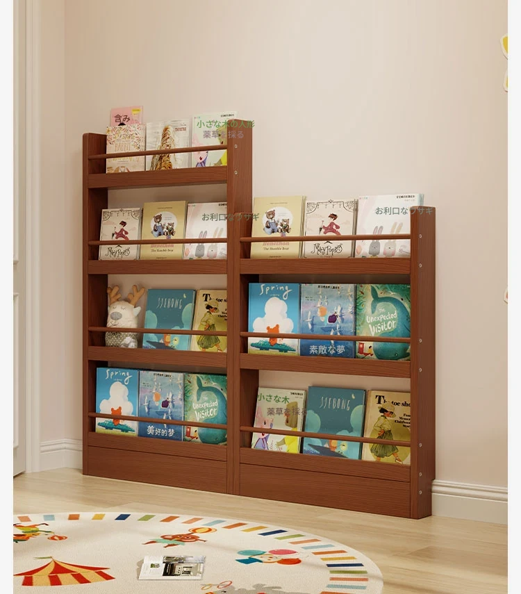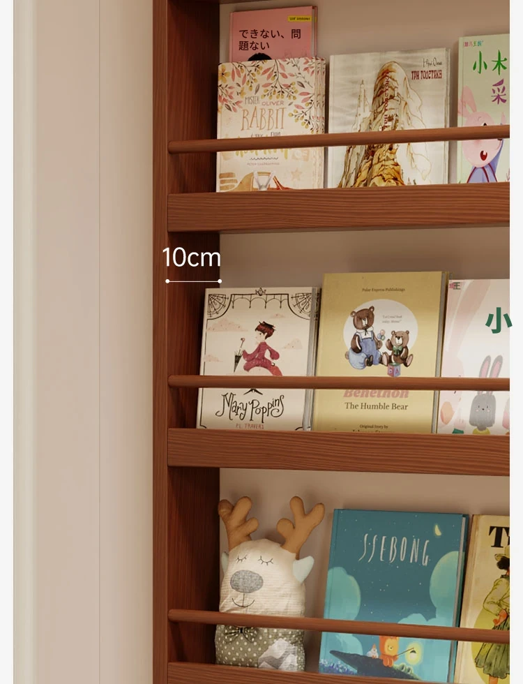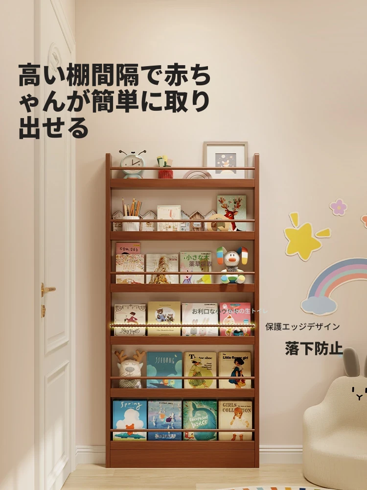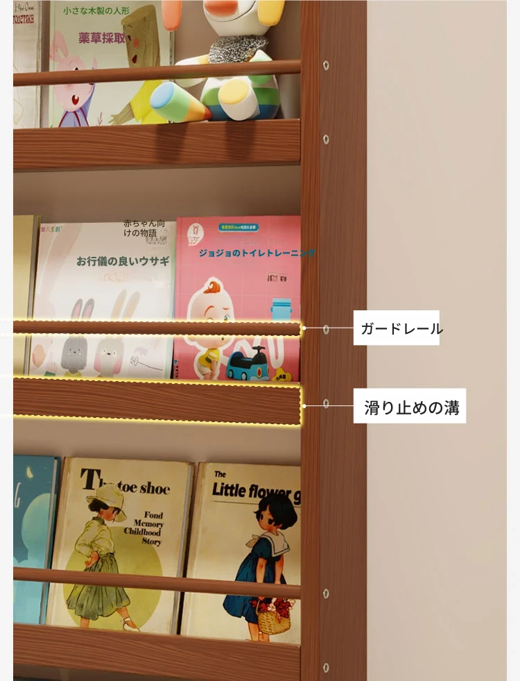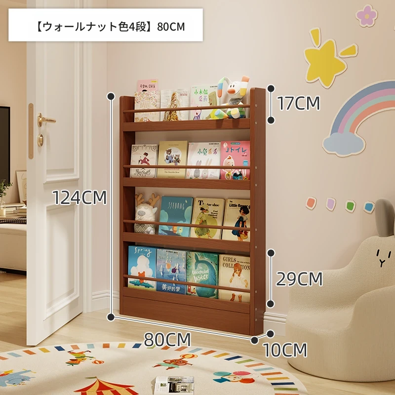 超薄デザインの子供向け絵本ラック!壁際にぴったりフィットするスリムな収納キャビネット。ドアの後ろにも置ける省スペース型のフロアシェルフで、お部屋をスッキリ整理!おしゃれで機能的な収納を実現します!