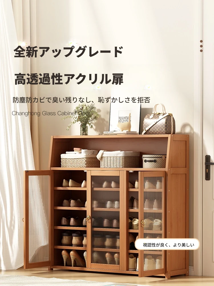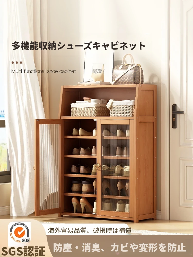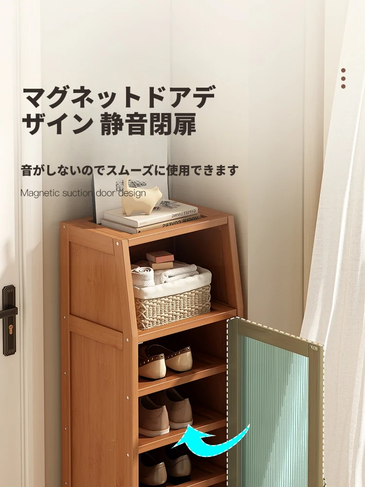 玄関用スリムシューズラック - 家庭用、薄型設計で省スペース!防塵機能付きの経済的収納アイテムで、スッキリした玄関を実現。シンプルで使いやすい収納ソリューション!