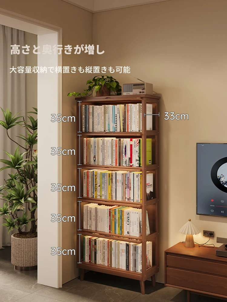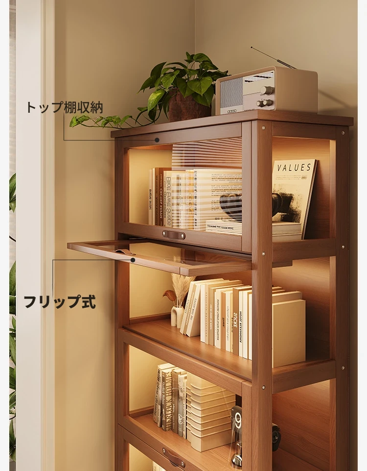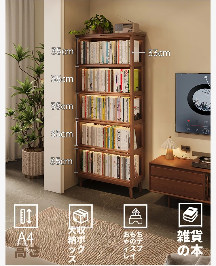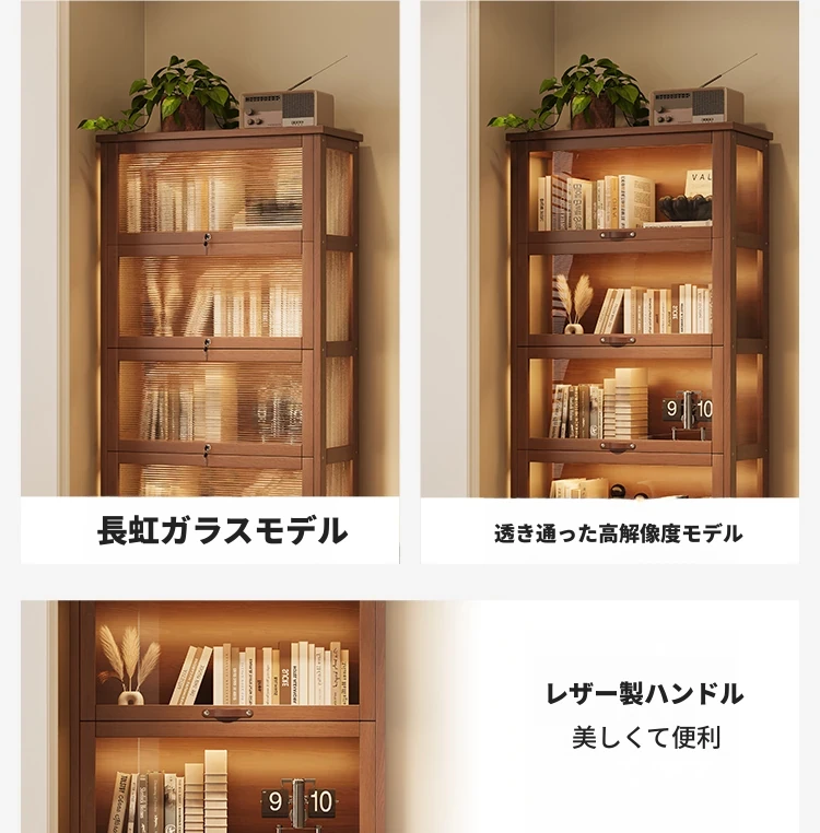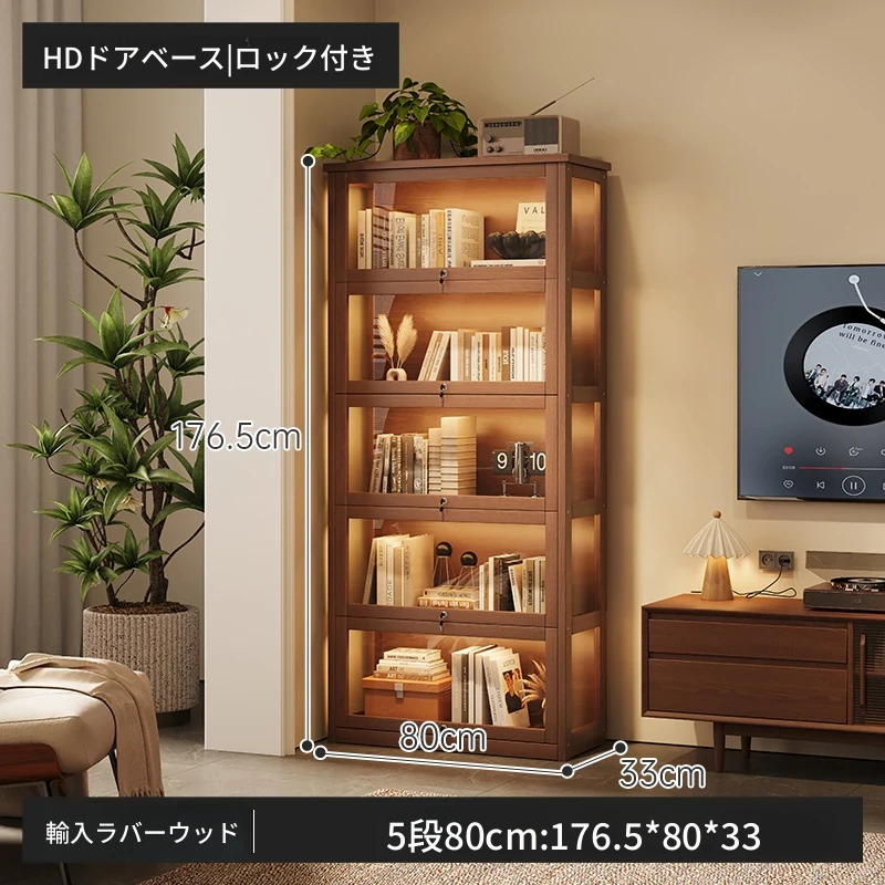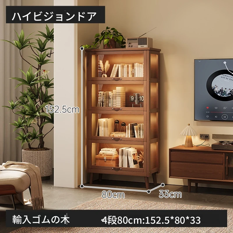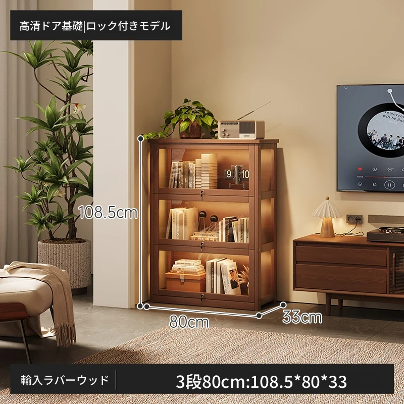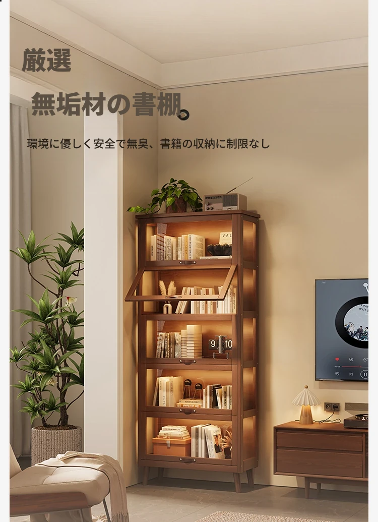 高品質の無垢材を使用したリビング用書棚、家庭用フロアシェルフ。子供の絵本やフィギュアを美しく展示できる透明デザインの収納ラック。お部屋をおしゃれに演出し、収納力も抜群!