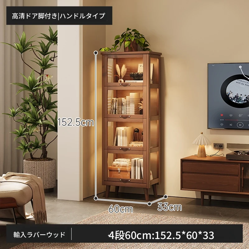 脚付きモデル❤️全透けドア丨4ドア60cm【FSC認証ゴムの木】【200+超強耐荷重】