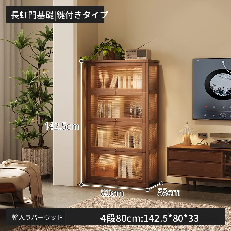 脚付きモデル❤️全透けドア丨4ドア80cm【FSC認証ゴムの木】【200+超強耐荷重】