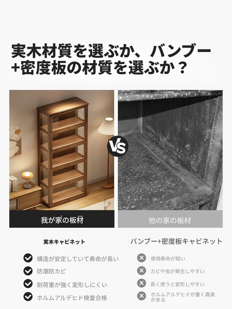 組み立て:透明扉付きロック-4扉60cm【無垢材質・安定して揺れない】