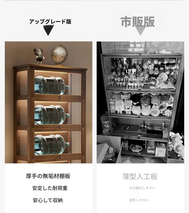組み立て:透明扉付きロック-4扉80cm【無垢材質・安定して揺れない】