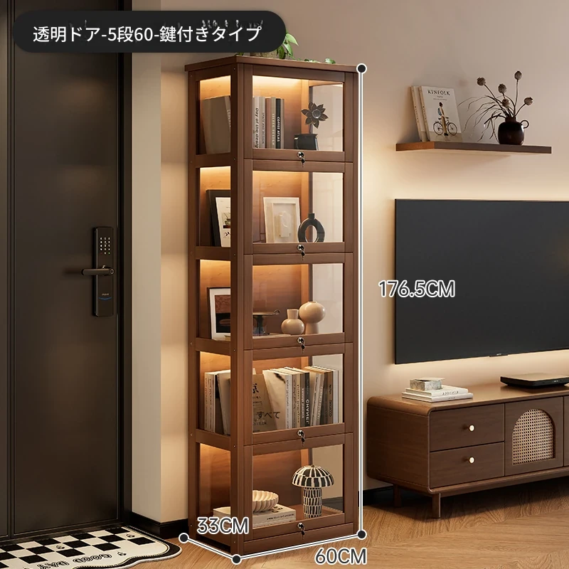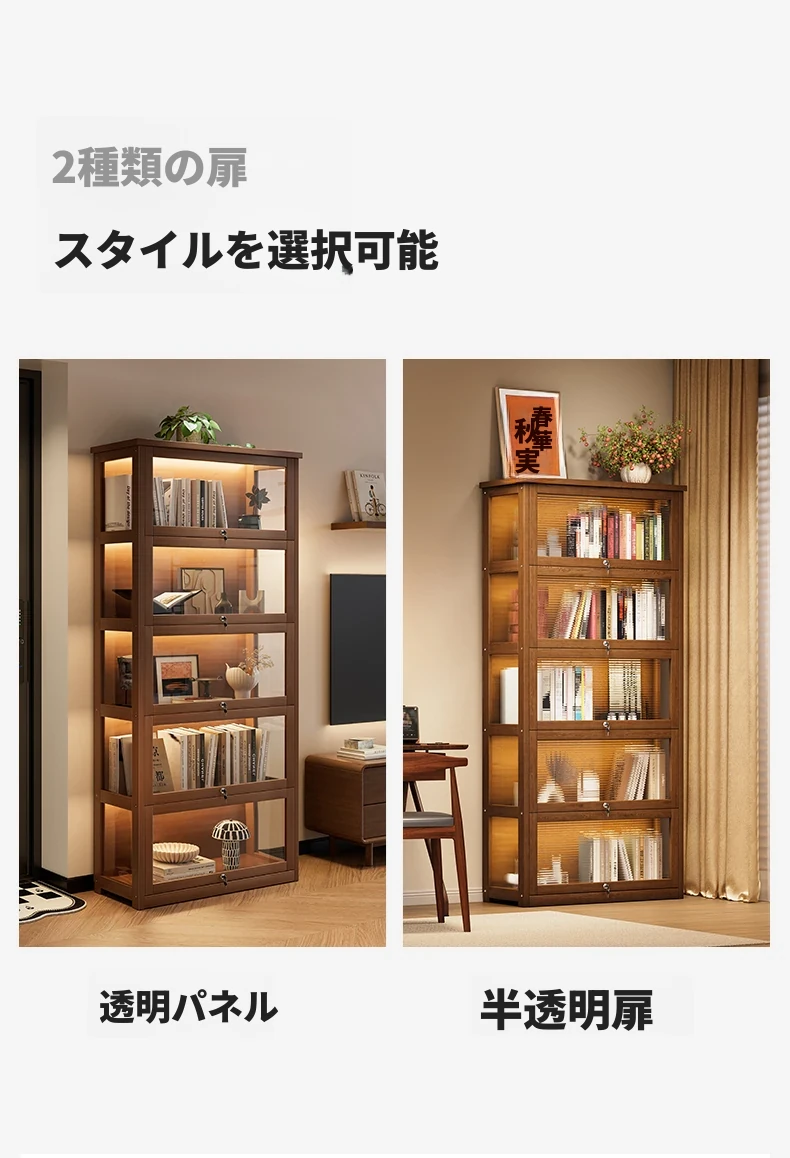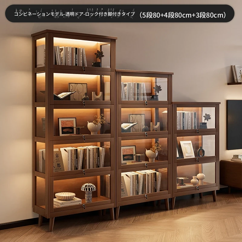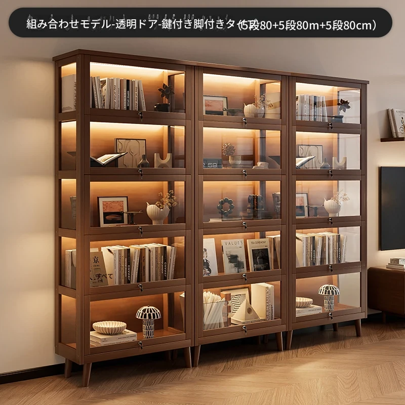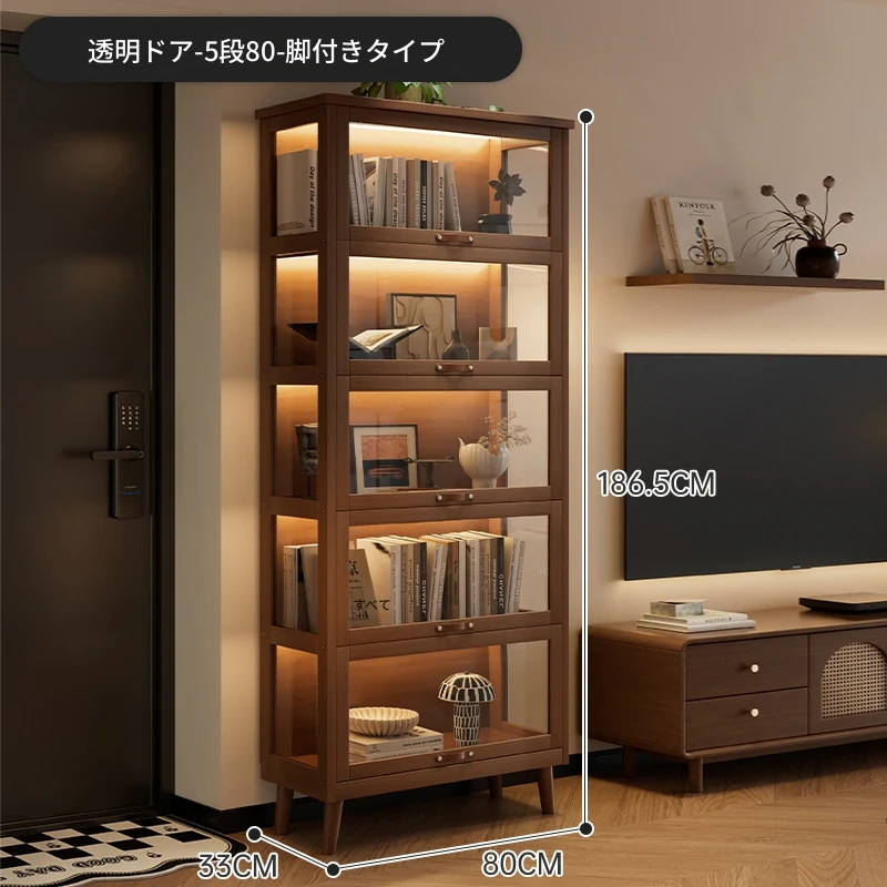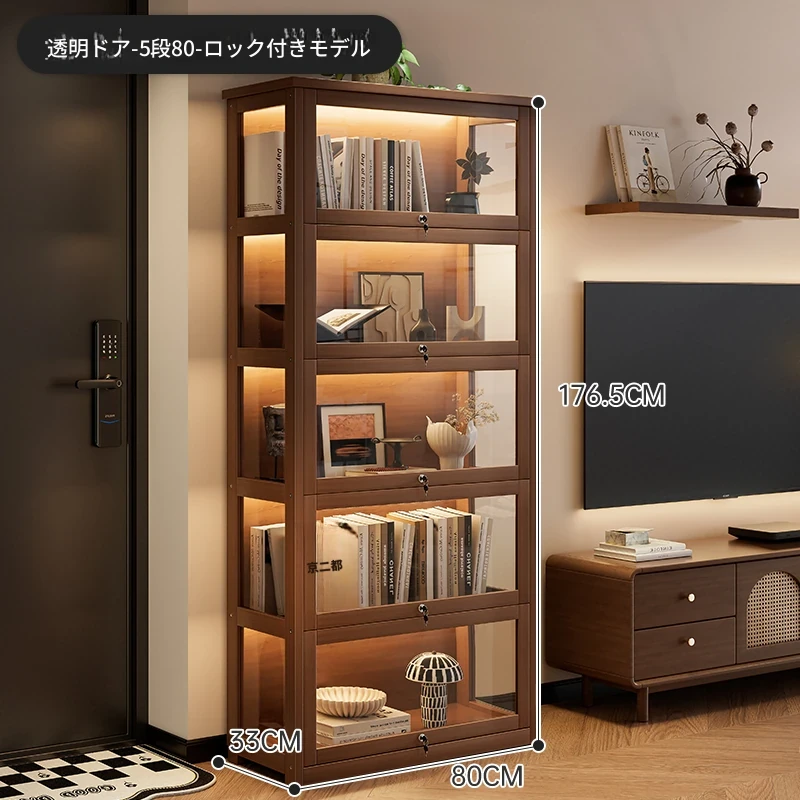 ⭐ベストセラー⭐透明扉-5扉80cm-ロック付き【無垢材 安定して揺れない】