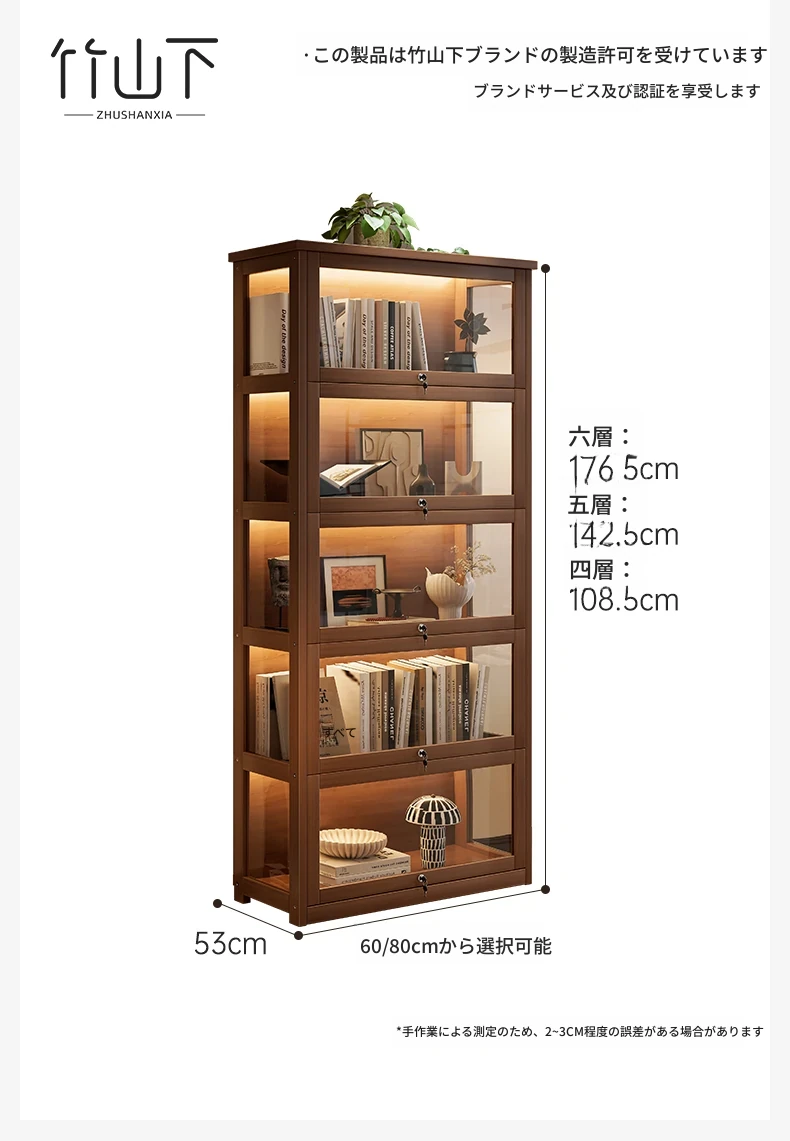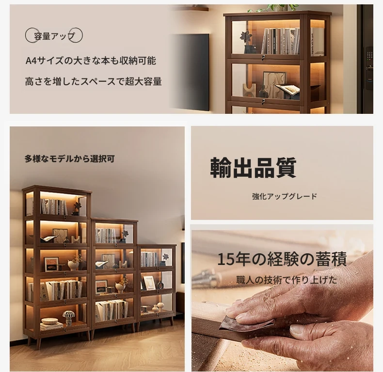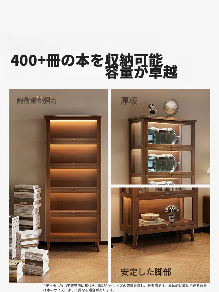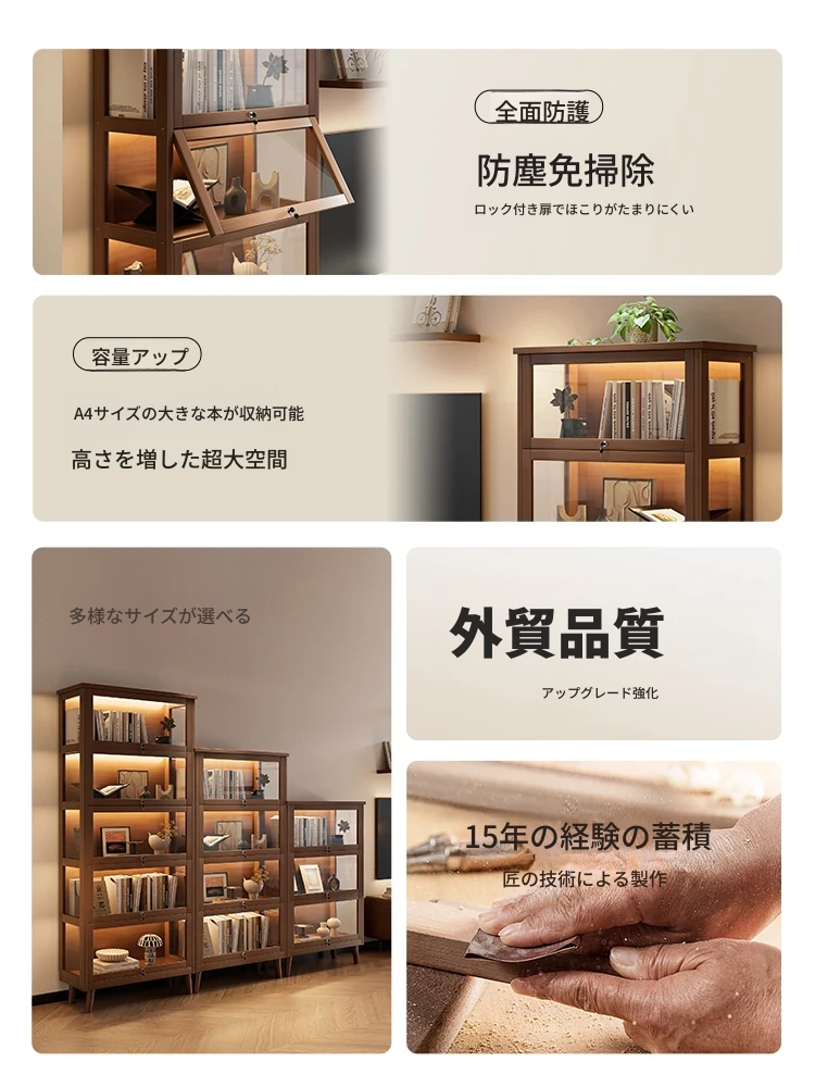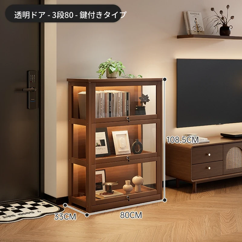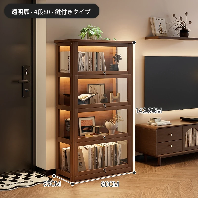 ⭐ベストセラー⭐透明扉-5扉80cm-ロック付き【無垢材 安定して揺れない】