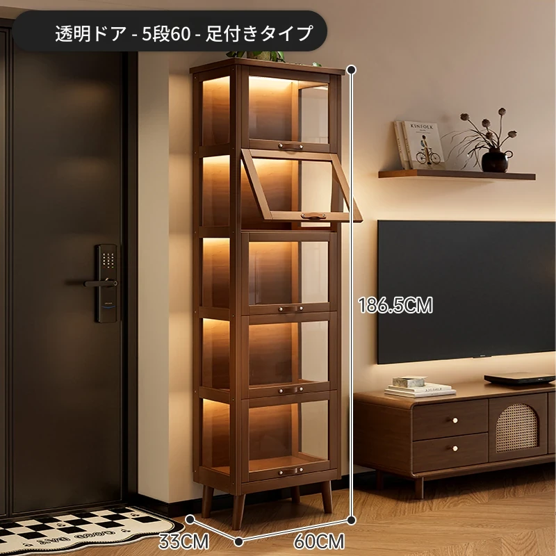 ⭐ベストセラー⭐透明扉-5扉80cm-脚付き【無垢材 安定して揺れない】