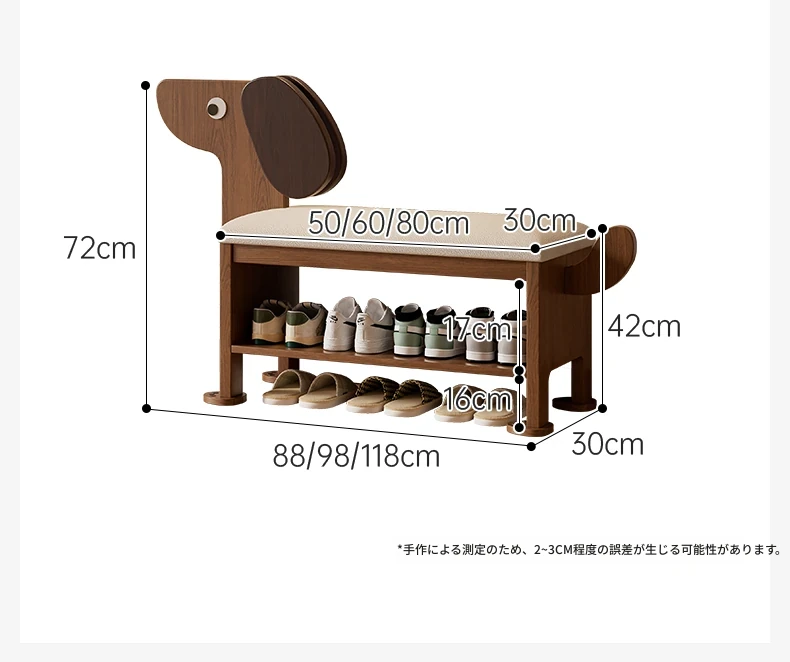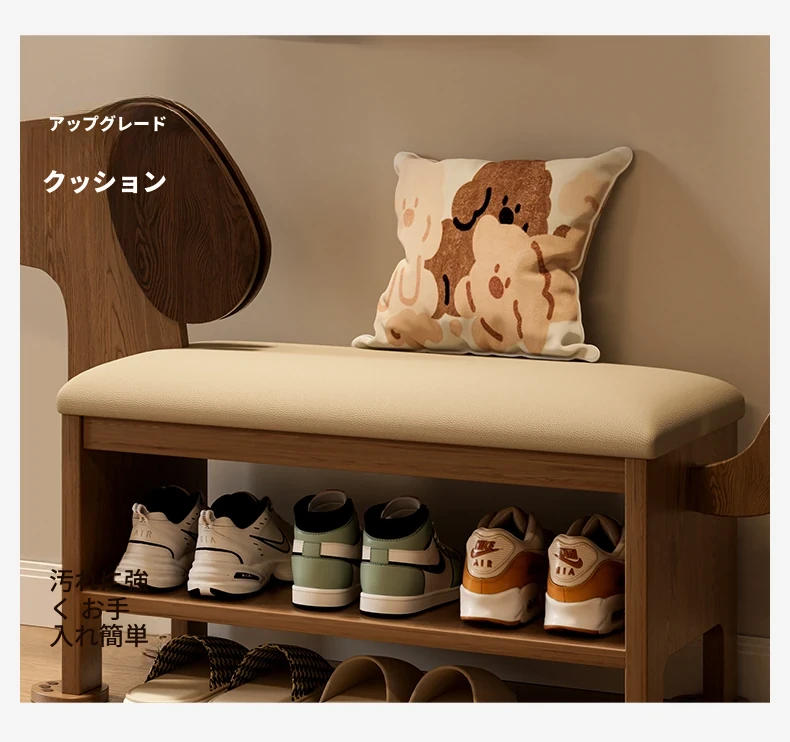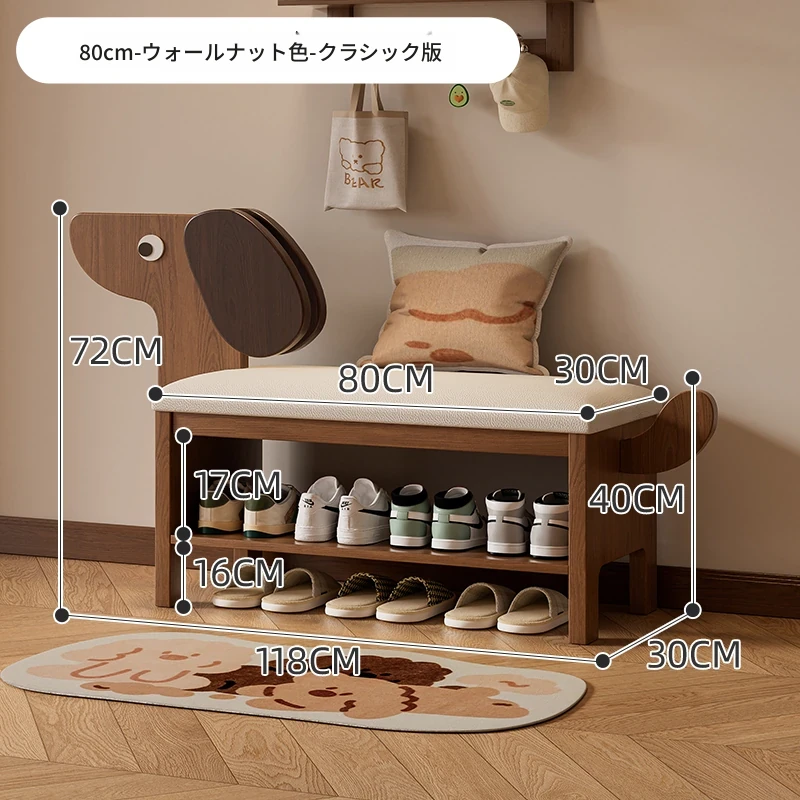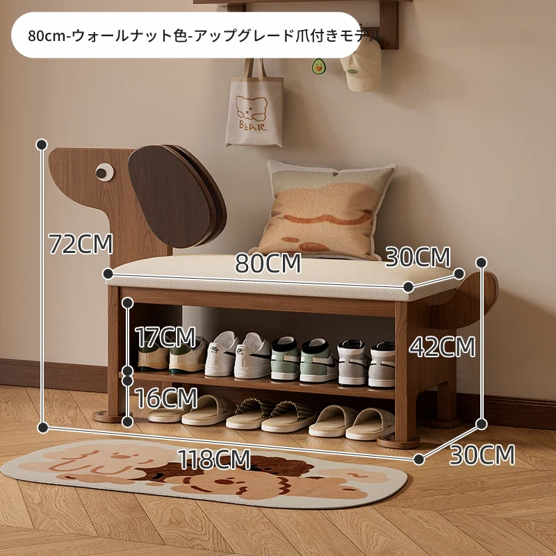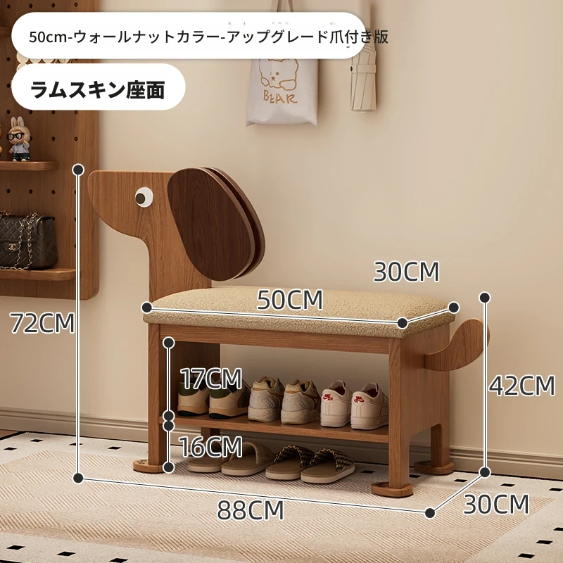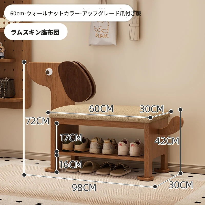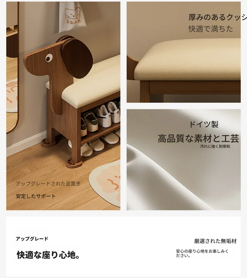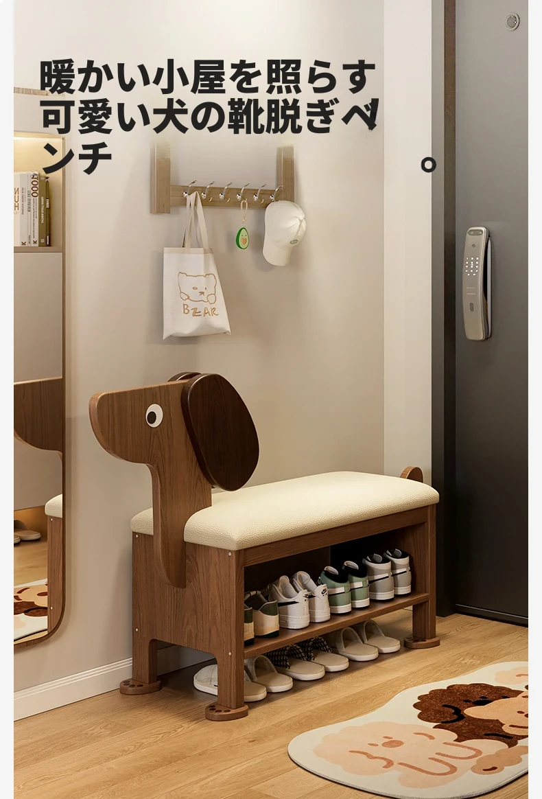 かわいいデザインの無垢材製小犬スリッパチェンジベンチ!玄関にぴったりの座れる靴箱で、入るたびに心温まるおもてなし。おしゃれで実用的な動物型スツールで、家族や友人を迎え入れる特別な空間を演出します。