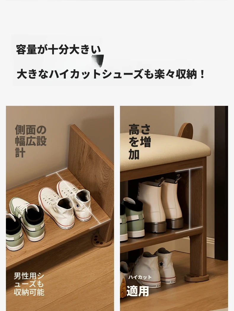 アップグレード爪付き版丨ウォールナット色60cm【6-8足の靴を収納可能】【国際FSC認証ゴムの木】