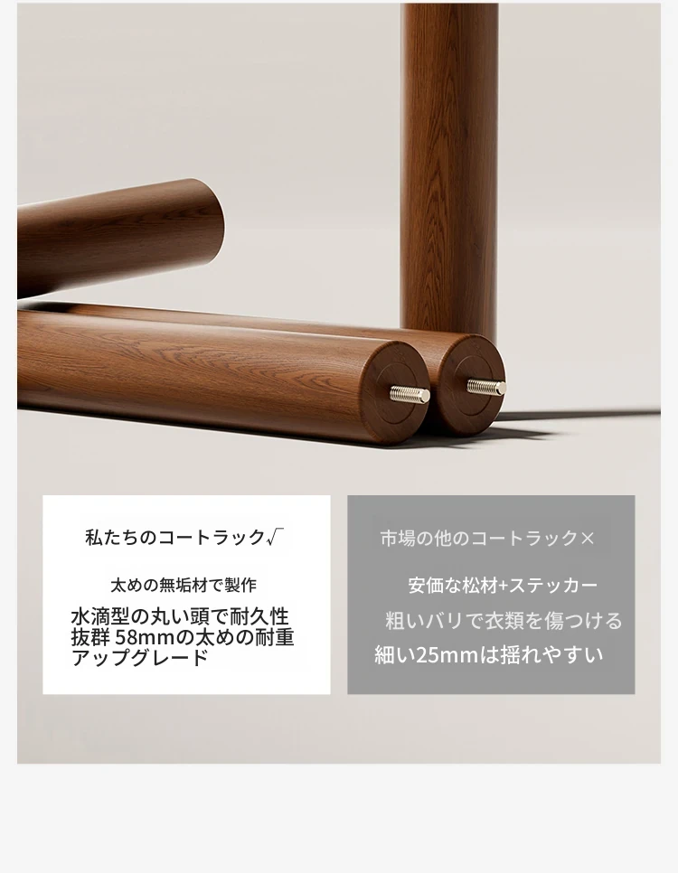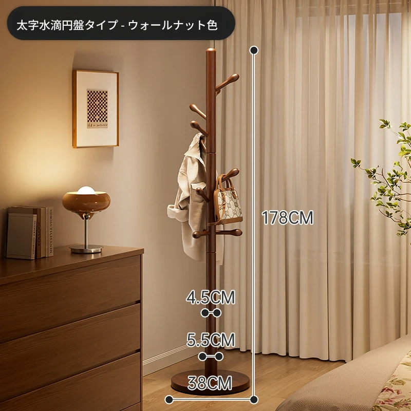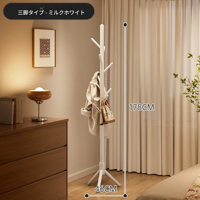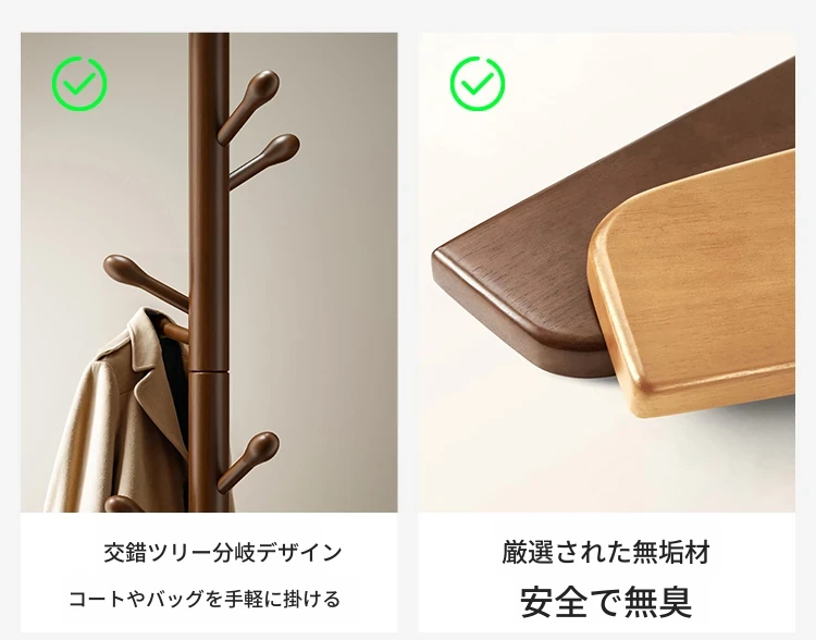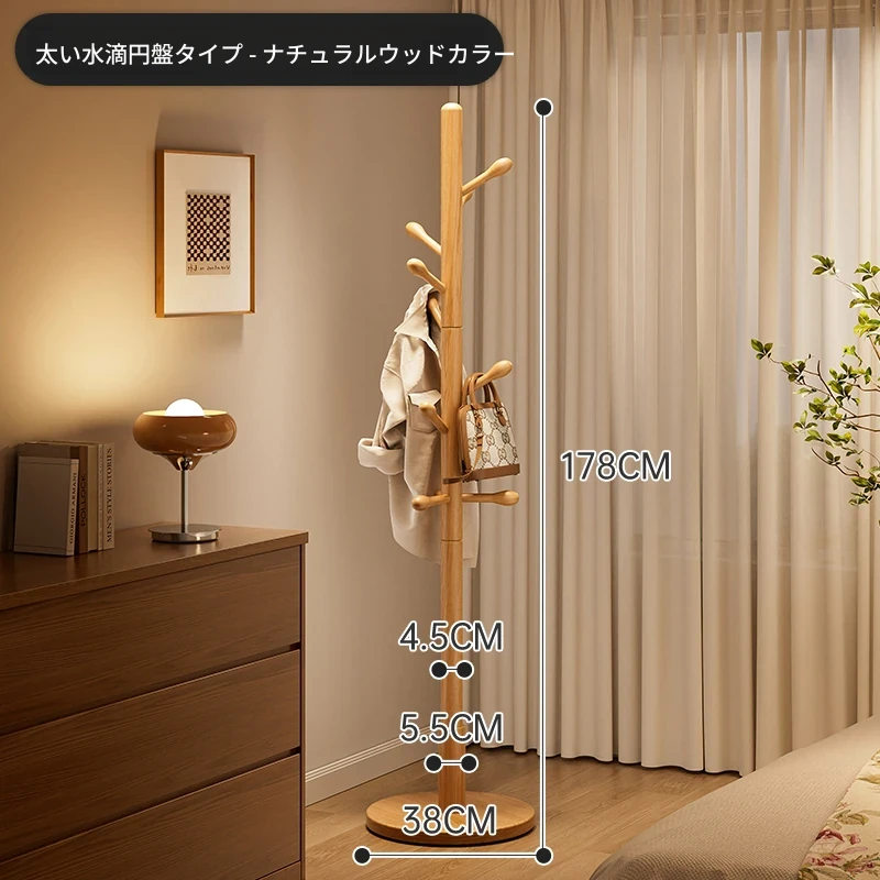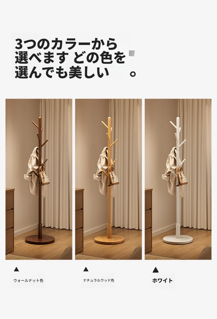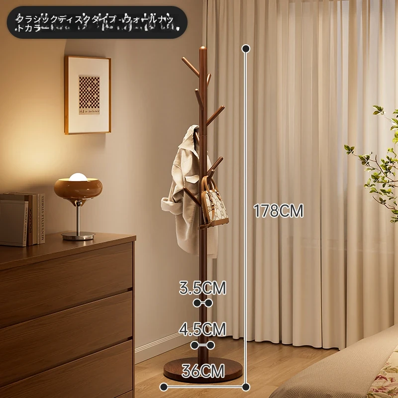 天然木製のスタイリッシュなハンガーラック - ベッドサイドや玄関にぴったり!省スペース設計で、シンプルながらもおしゃれな衣類収納を実現。あなたの生活空間を整える必需品です。