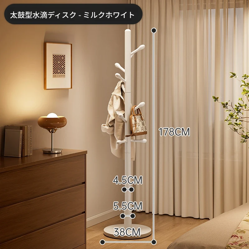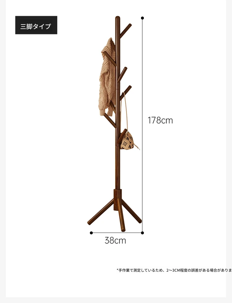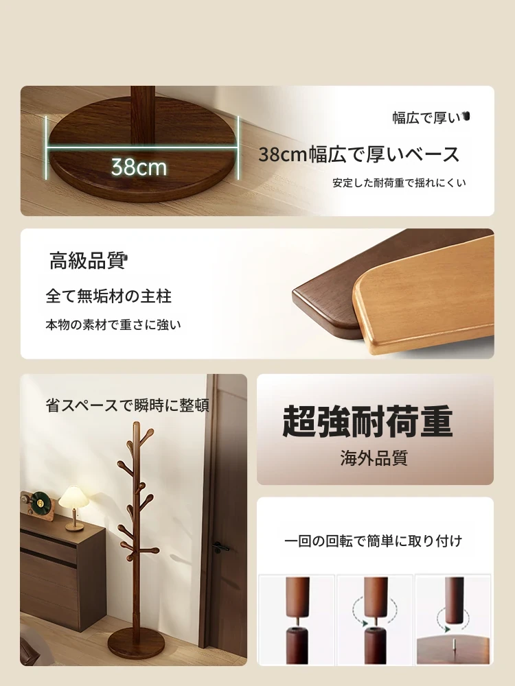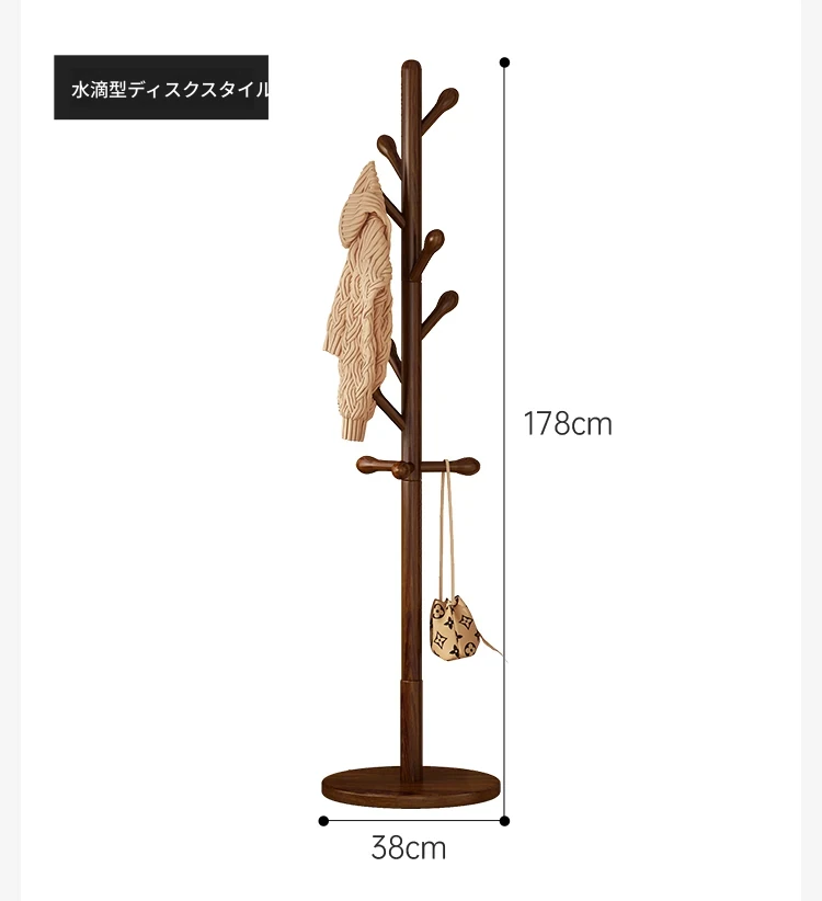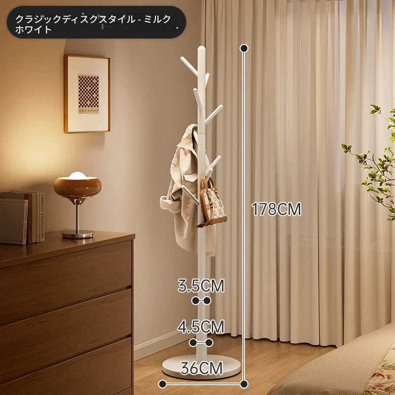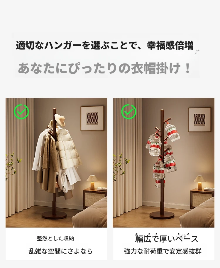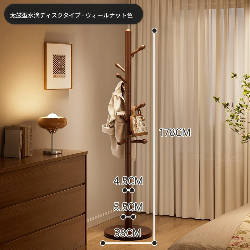 天然木製のスタイリッシュなハンガーラック - ベッドサイドや玄関にぴったり!省スペース設計で、シンプルながらもおしゃれな衣類収納を実現。あなたの生活空間を整える必需品です。