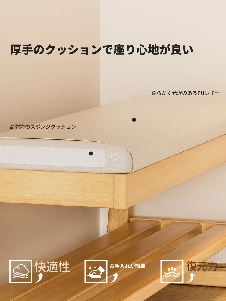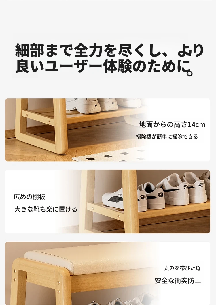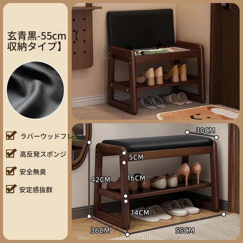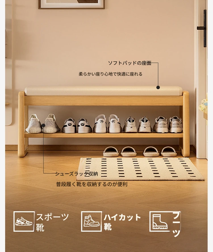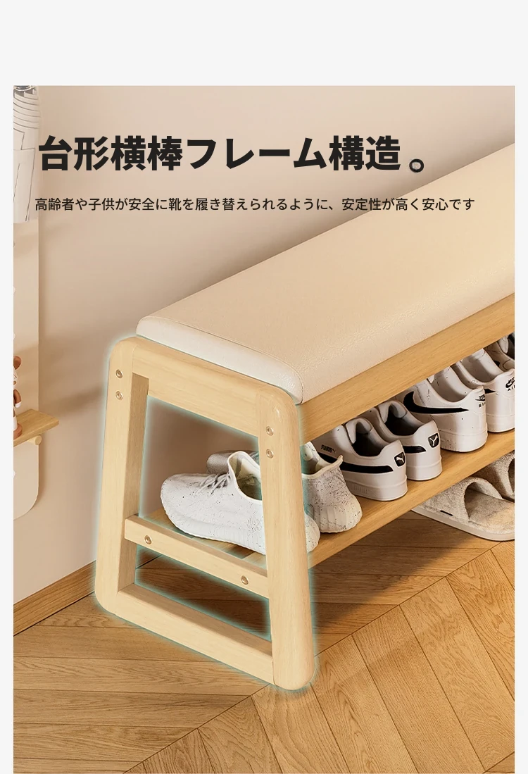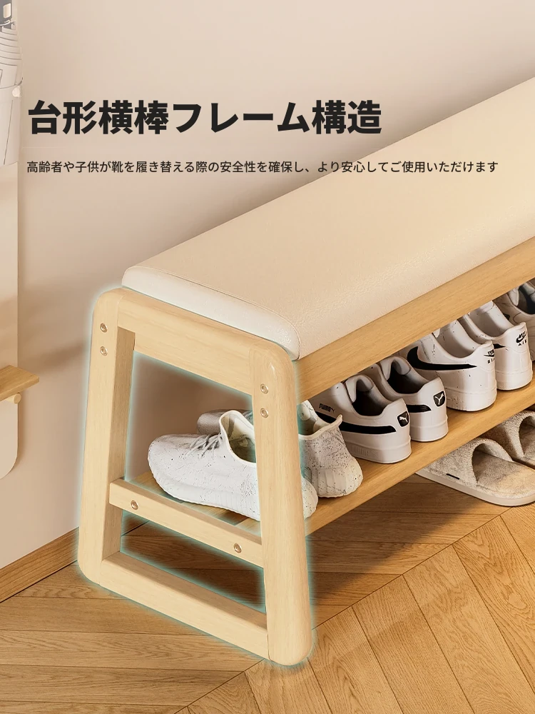 実木製の靴を履くためのベンチ!玄関や入居スペースに最適なシューズラック。座ることもできる多層収納で、靴をスッキリ整理!おしゃれで実用的な空間を演出します。