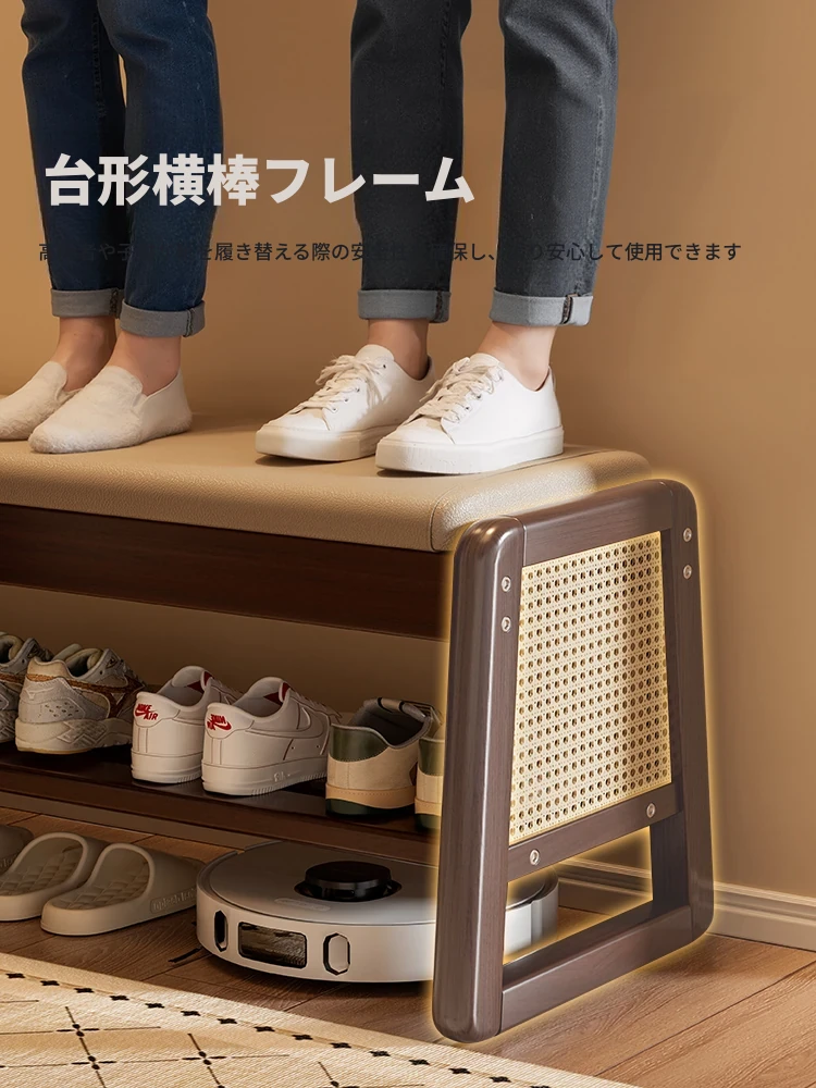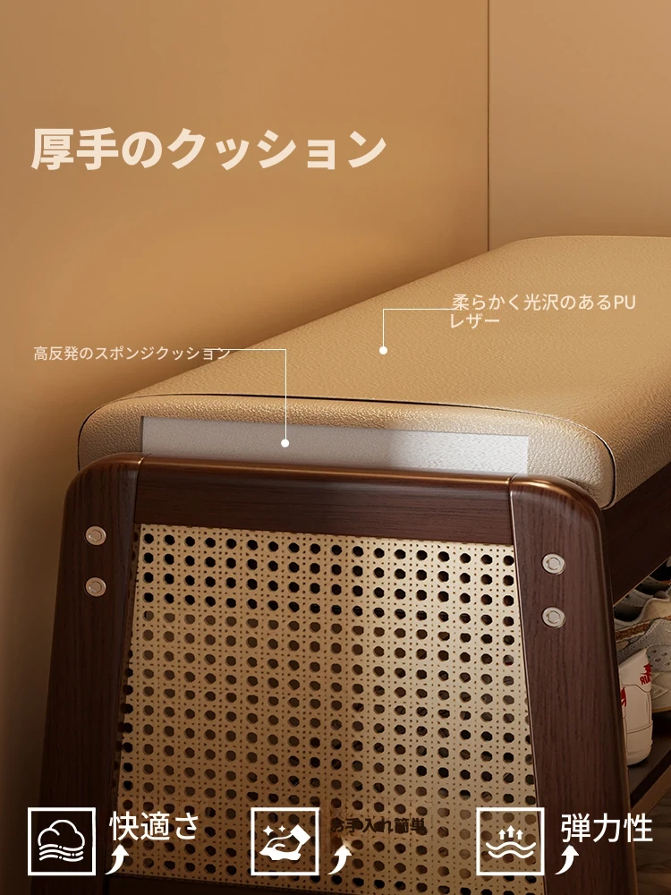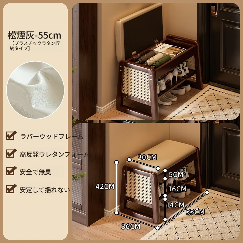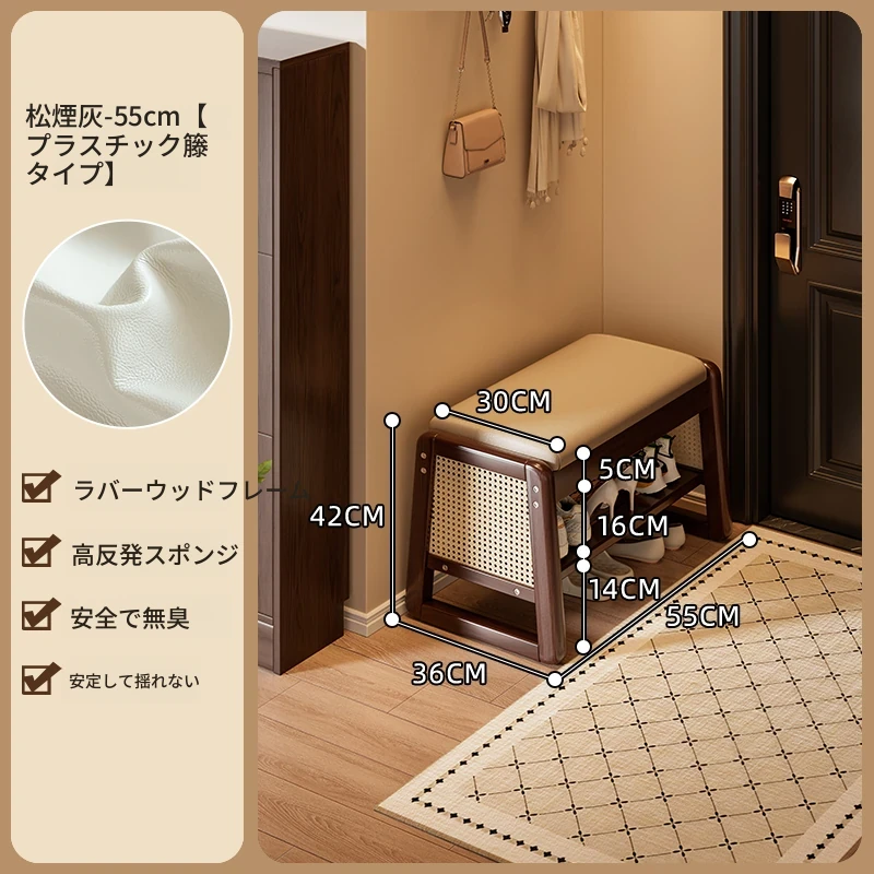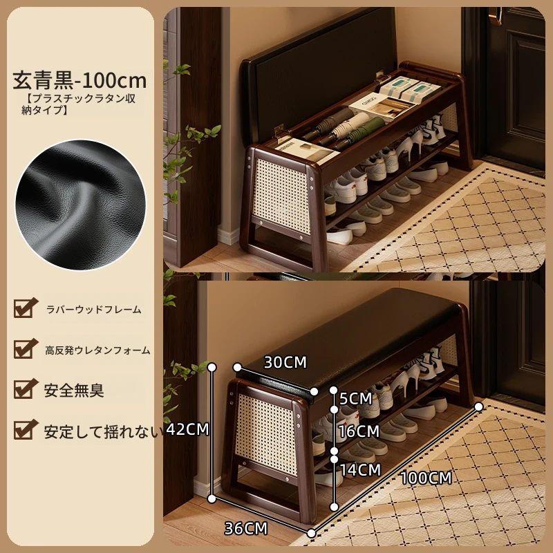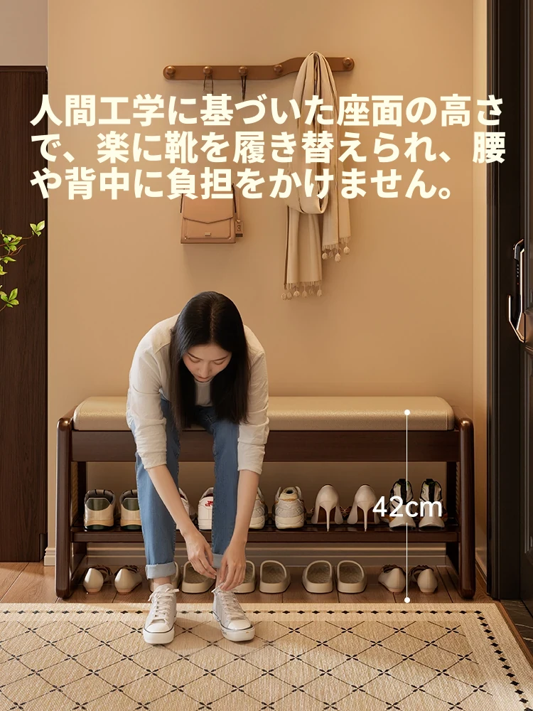 新作!実木製の靴を履くためのベンチ、玄関用に最適な収納付きシューラック一体型。おしゃれで便利なシューズベンチで、スムーズな靴の出し入れを実現!
