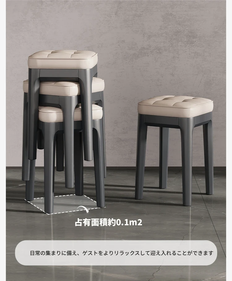 高級感溢れる実木製スツール - 家庭用に最適!頑丈で耐久性抜群、軽やかにスタッキング可能。厚みのあるデザインで、ダイニングテーブルやゲスト用にもぴったりな丸型スツール。あなたのリビングを格上げします!