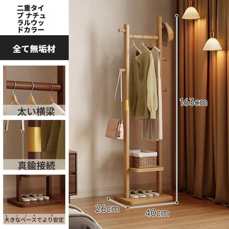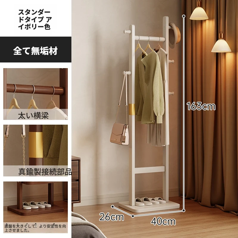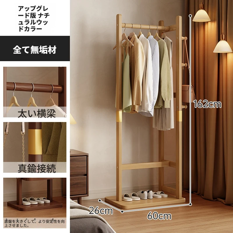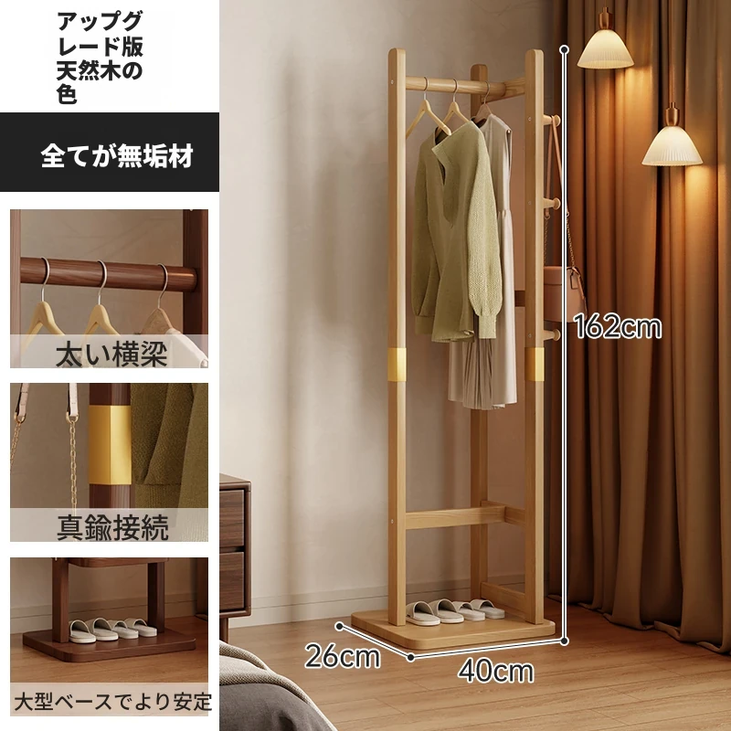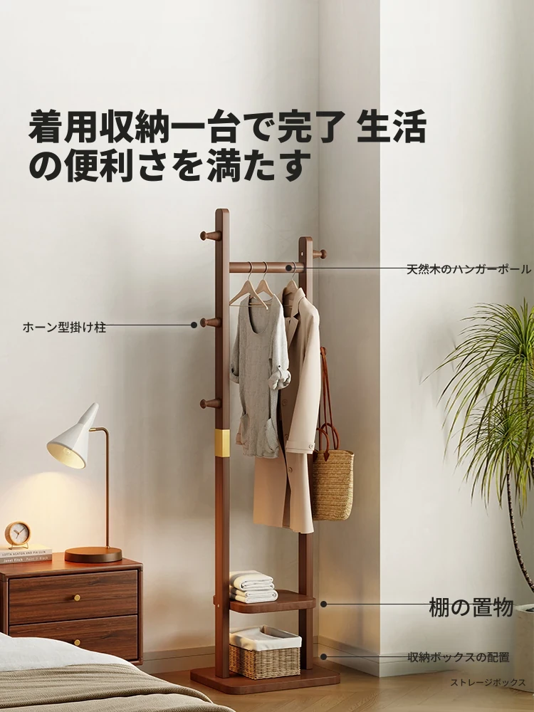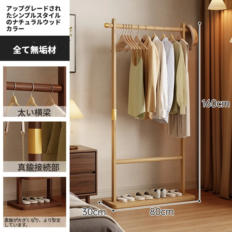 省スペース!実木製の立てかけ式衣類ハンガー - 寝室のベッドサイドにぴったり!夜のお洋服をスッキリ収納できる便利なアイテム!おしゃれで機能的な衣帽掛けで、あなたの生活をもっと快適に。