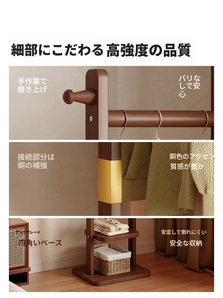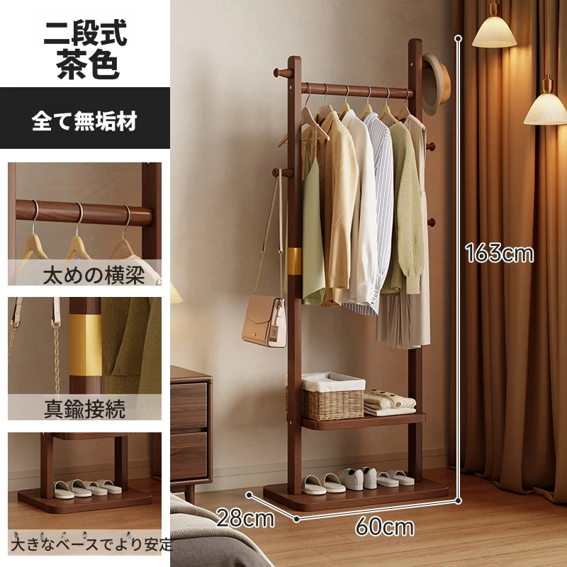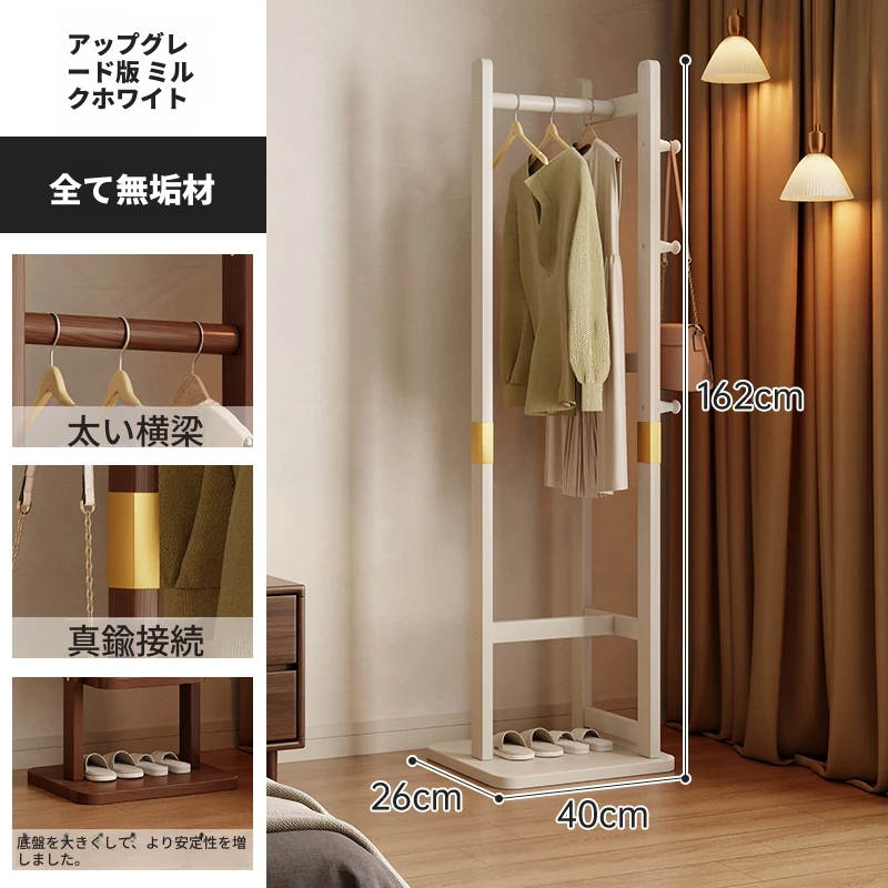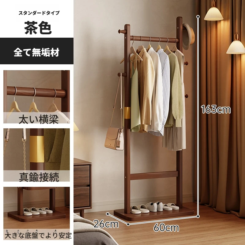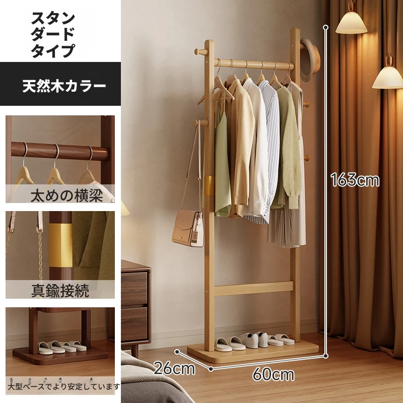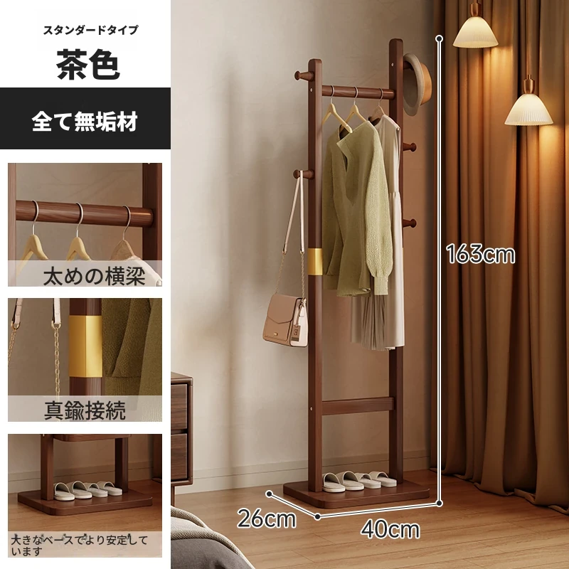 省スペース!実木製の立てかけ式衣類ハンガー - 寝室のベッドサイドにぴったり!夜のお洋服をスッキリ収納できる便利なアイテム!おしゃれで機能的な衣帽掛けで、あなたの生活をもっと快適に。