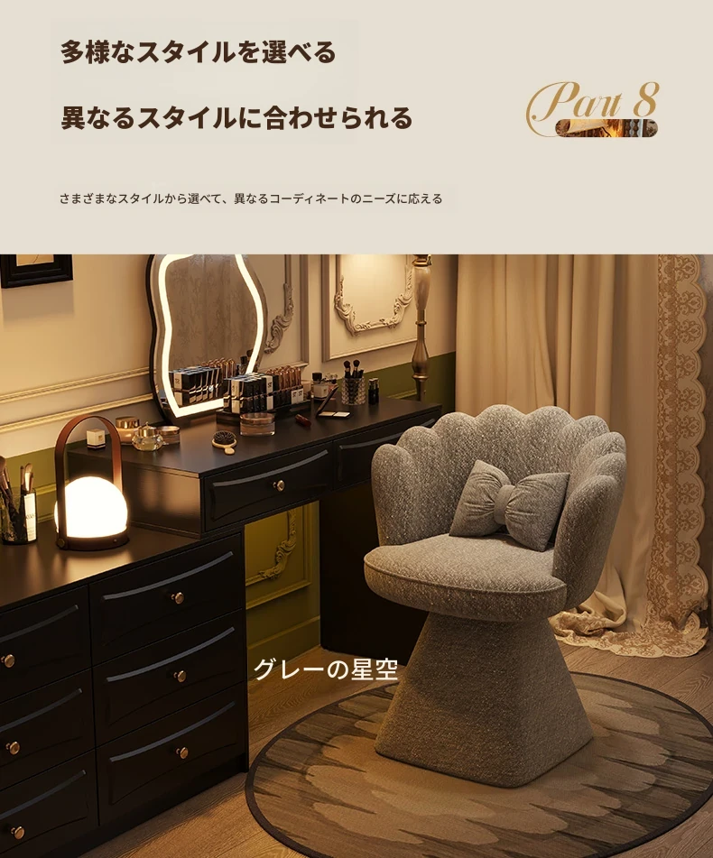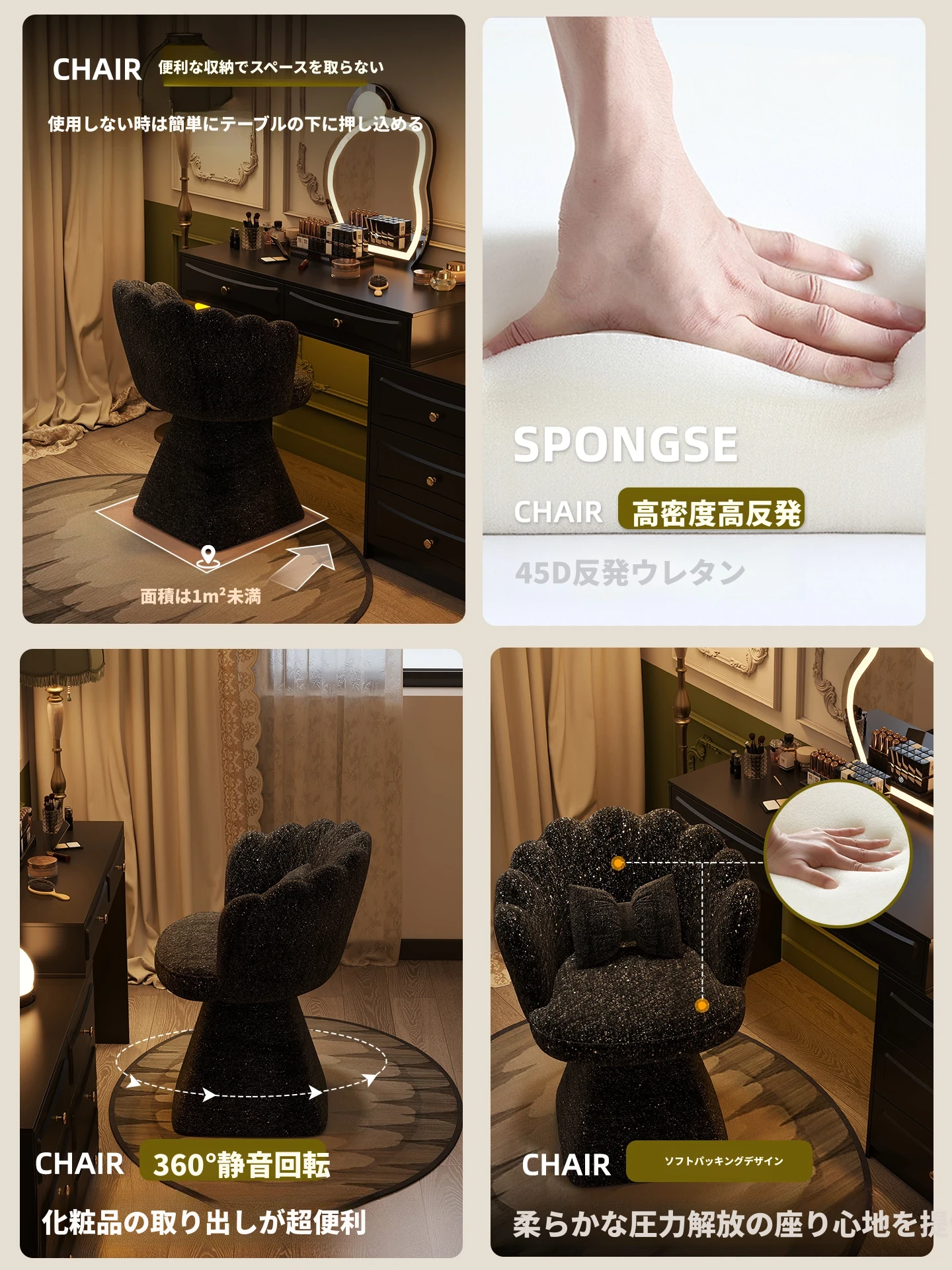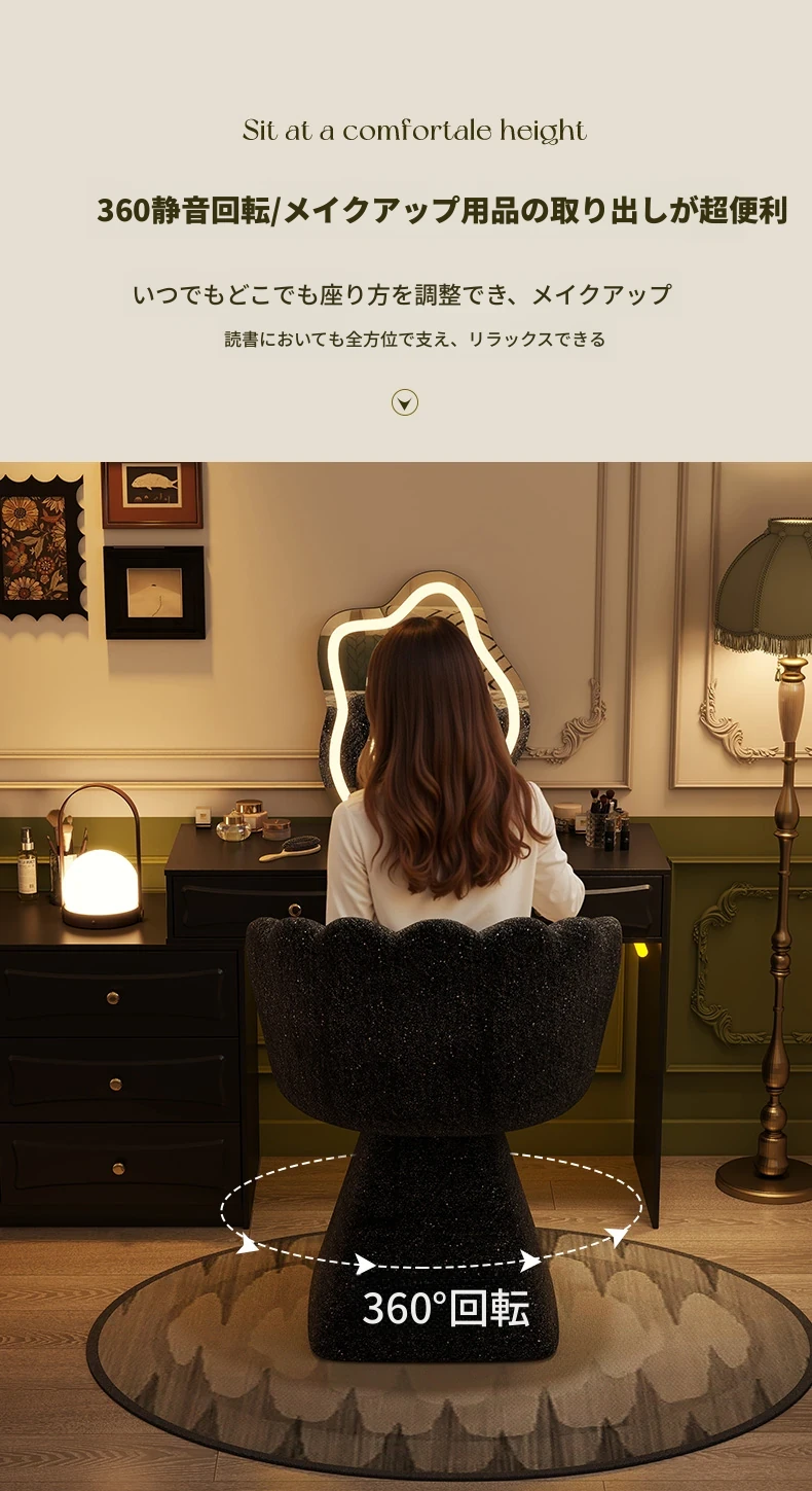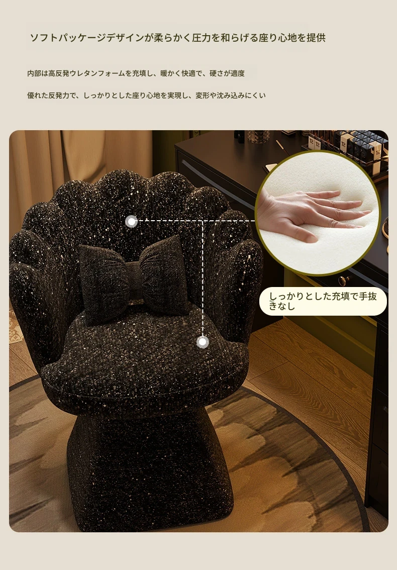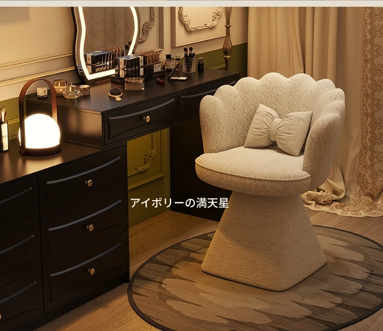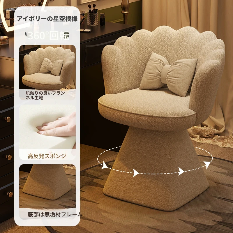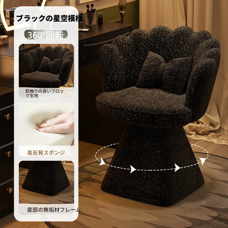 星空デザインの回転式化粧椅子 - 女の子の寝室にぴったり!軽やかな高級感を演出する、家用クローゼットやドレッサーに最適な一品です。あなたの美容時間を特別に彩ります!