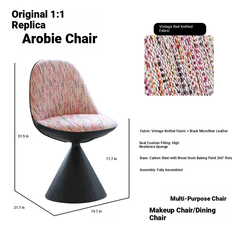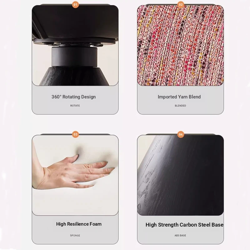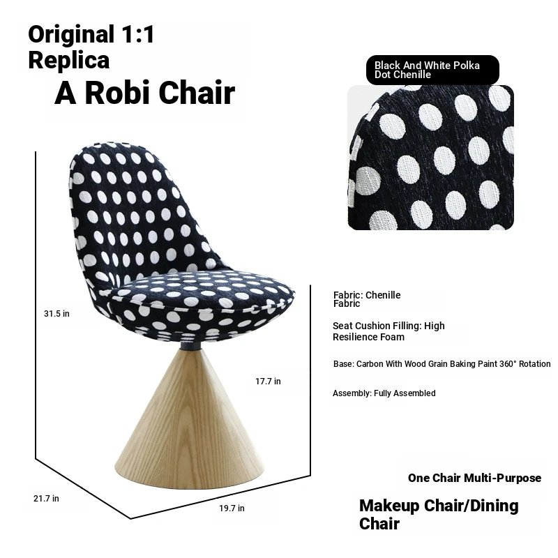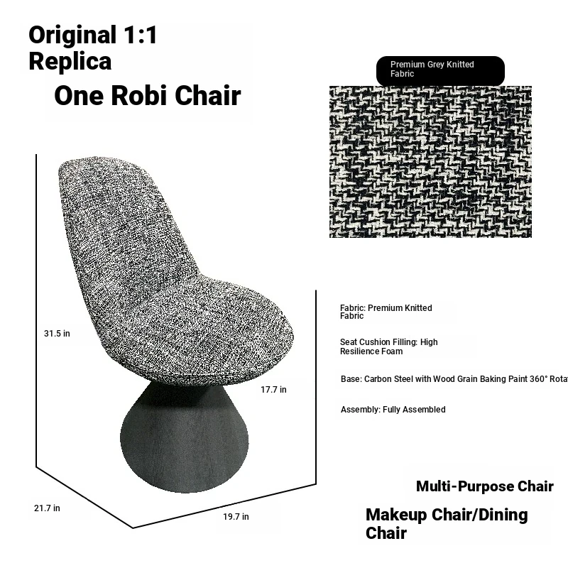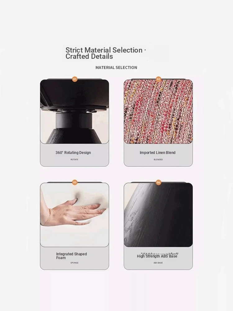Stylish Italian Minimalist Makeup Chair - Trendy Luxury Fabric Dining Chair, Rotatable Vanity Stool for Bedroom - ROMBY