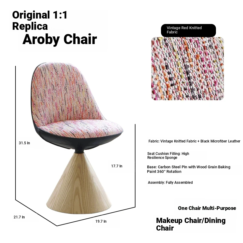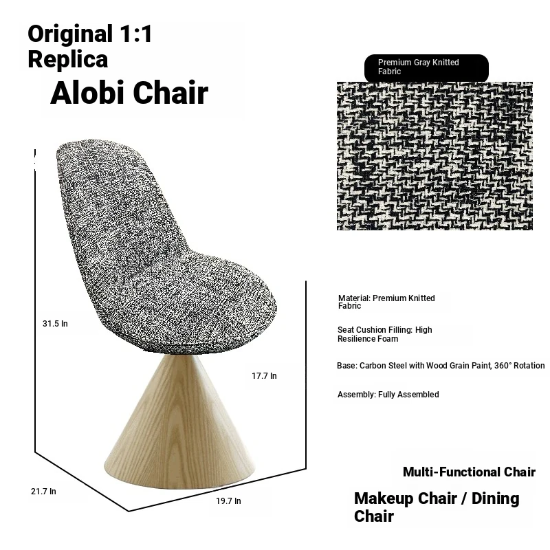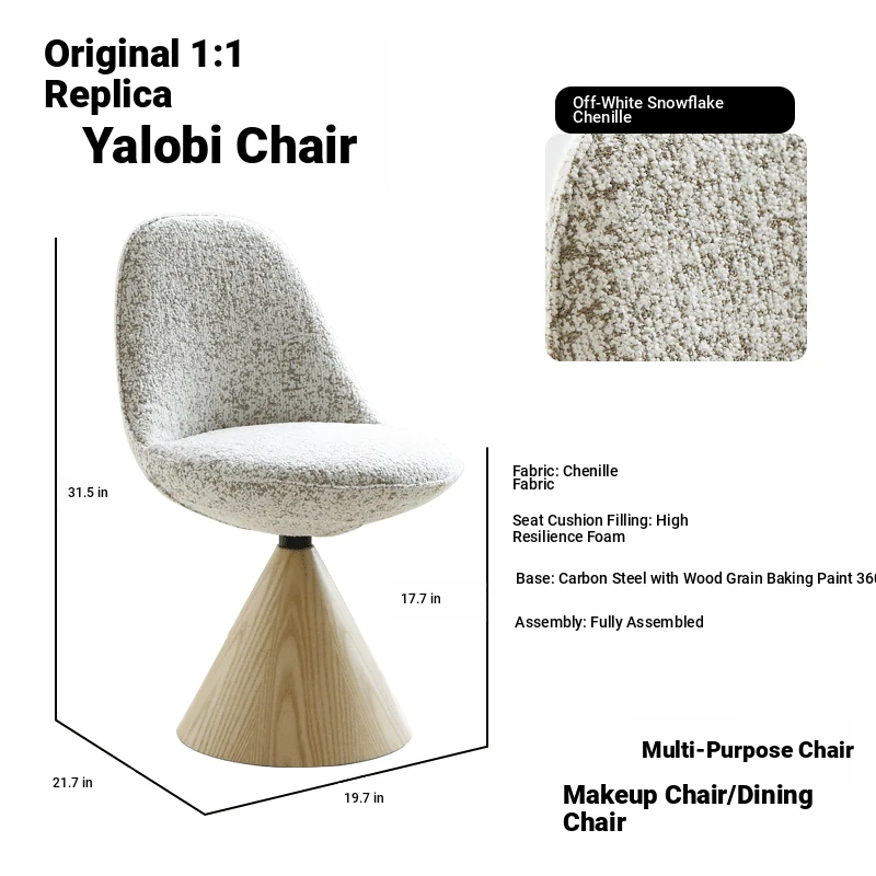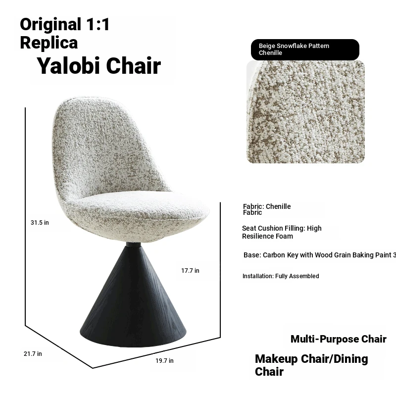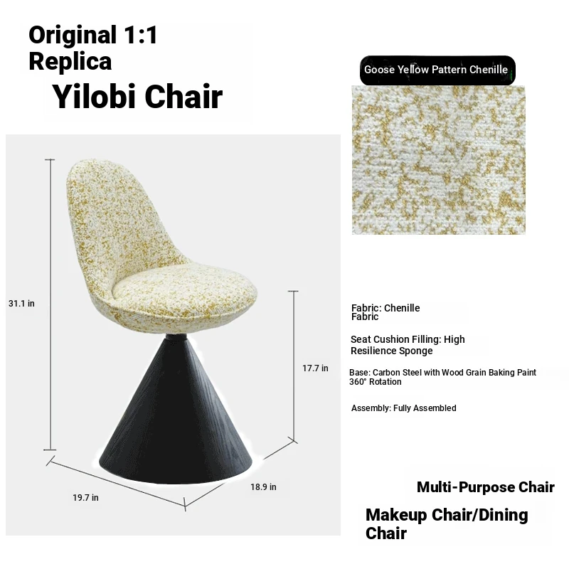 Stylish Italian Minimalist Makeup Chair - Trendy Luxury Fabric Dining Chair, Rotatable Vanity Stool for Bedroom - ROMBY