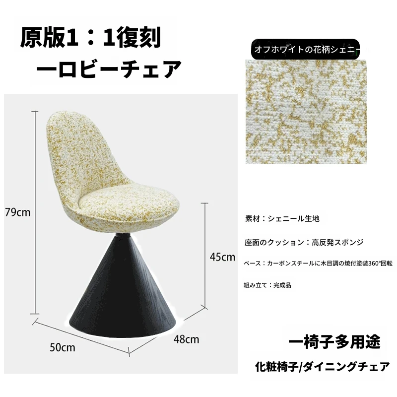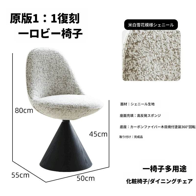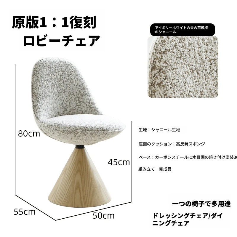 アイボリーホワイト+ブラックウッド塗装ベースシェニール回転可能