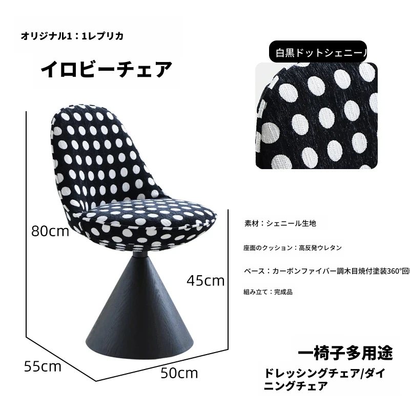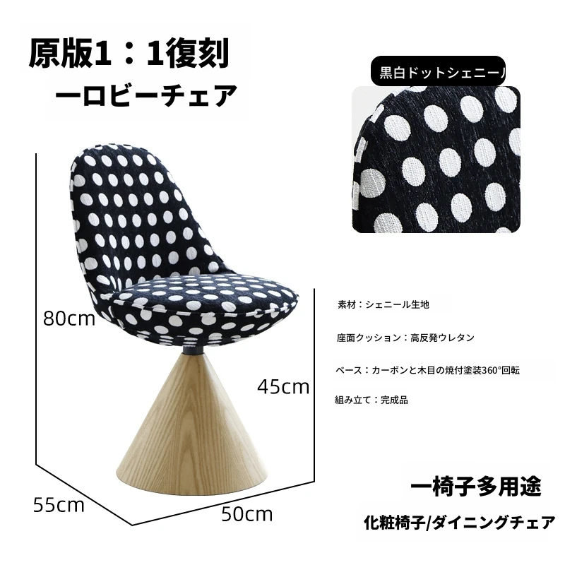 ドット+ブラックウッド塗装ベースシェニール回転可能