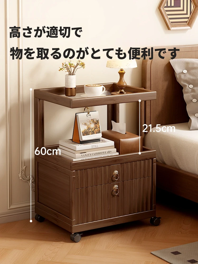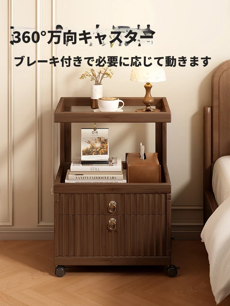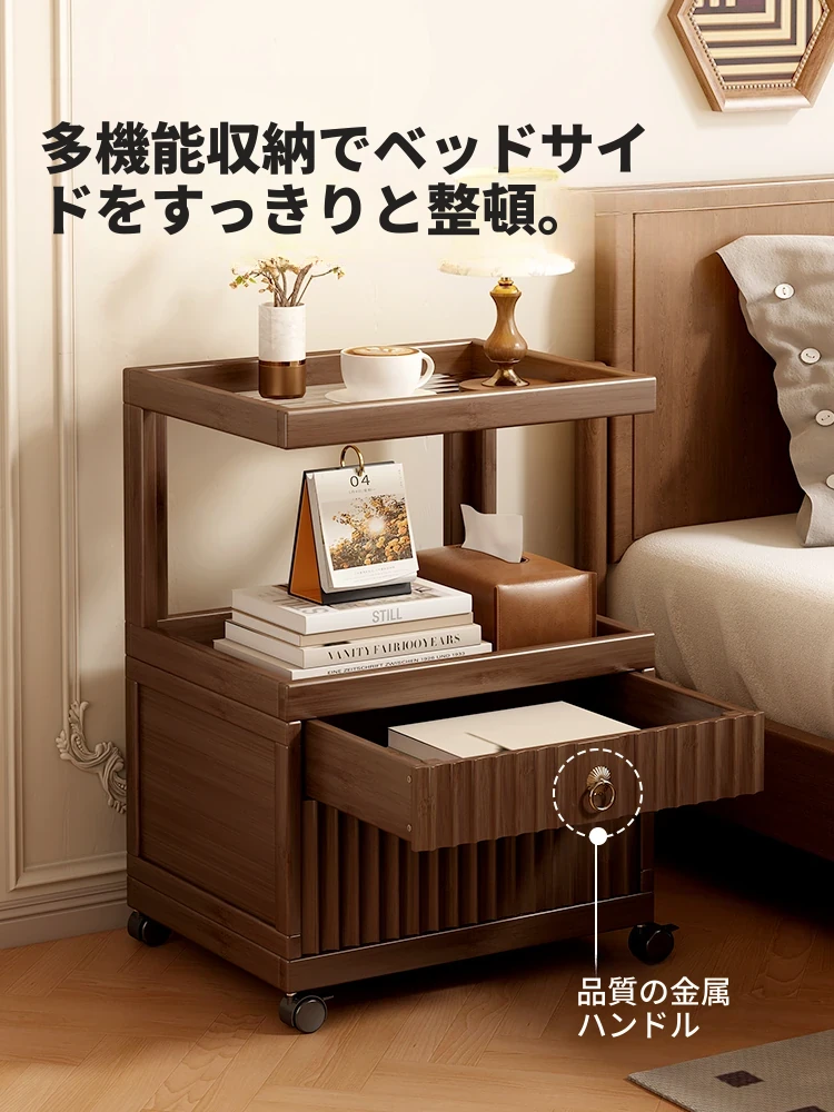 移動式ベッドサイドキャビネット - 家庭用の寝室にぴったり!シンプルでスタイリッシュな収納ラック、サイドテーブルとしても使える。ユニークなデザインで、お部屋をおしゃれに演出します!収納力抜群で、スペースを有効活用。