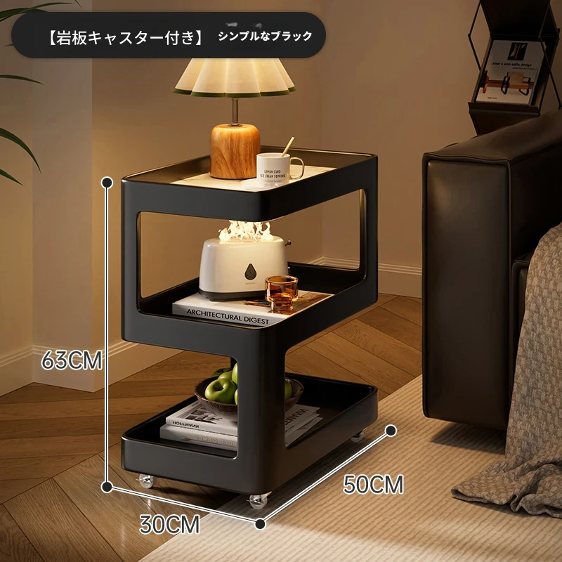 【キャスター付き】シンプルブラック-ホワイトストーン 30*50*63【鉄製】【品質選定】