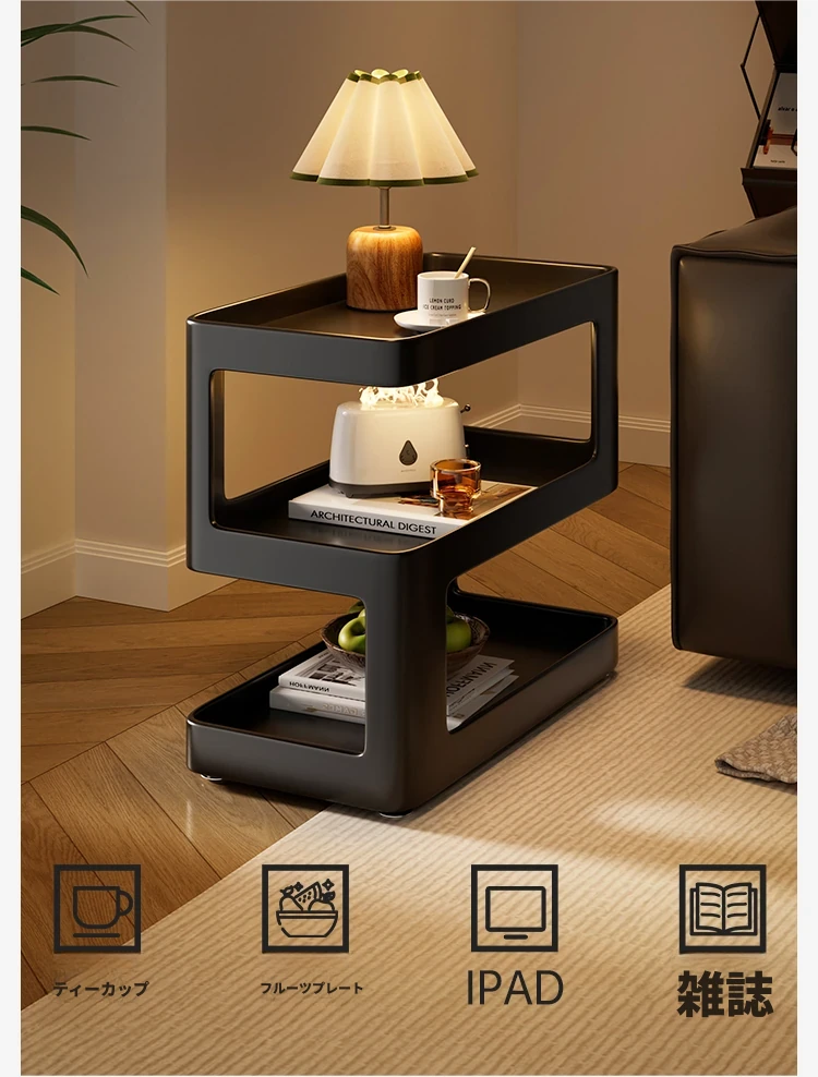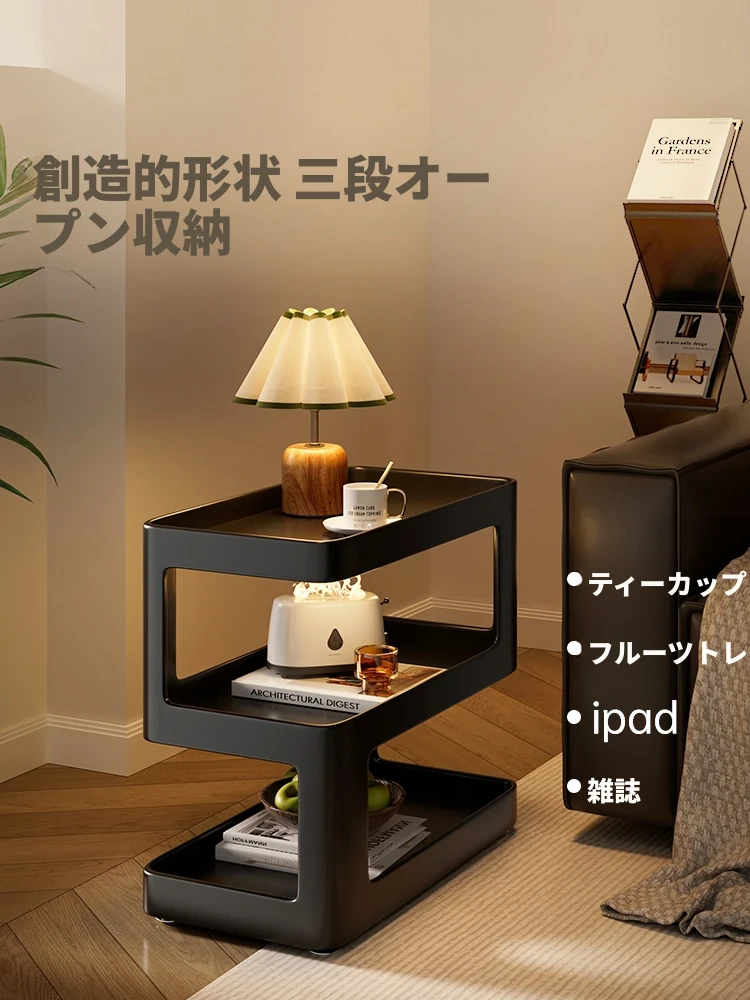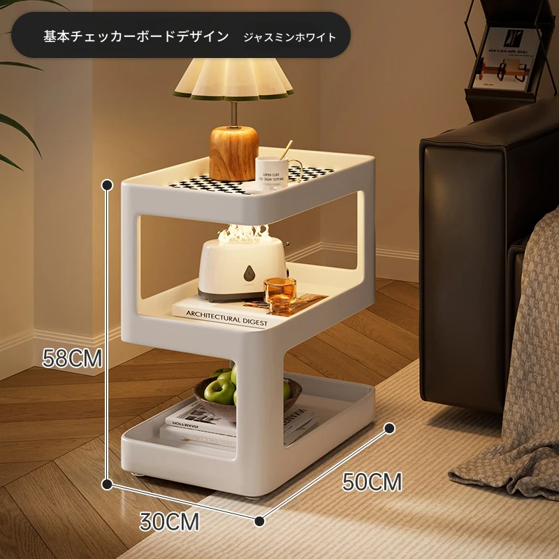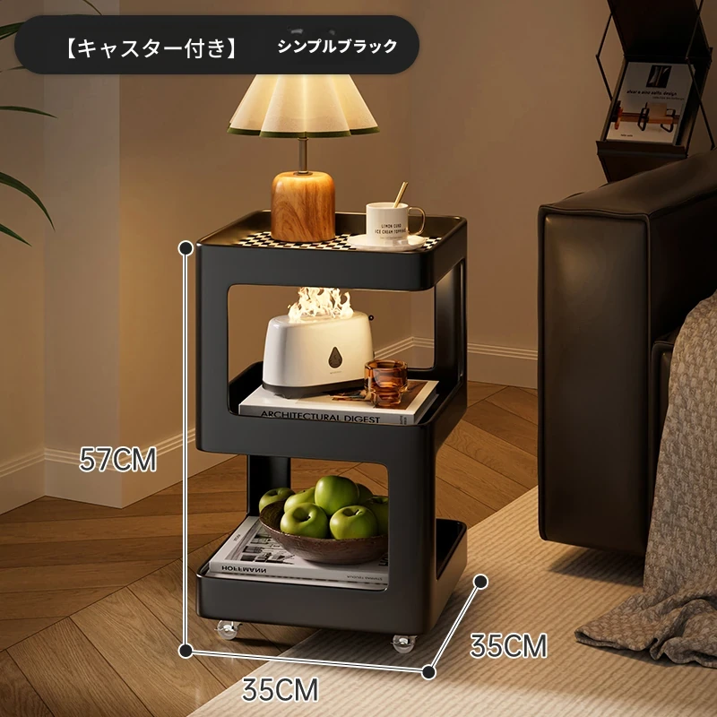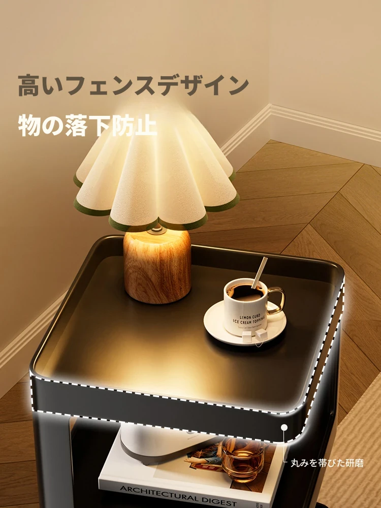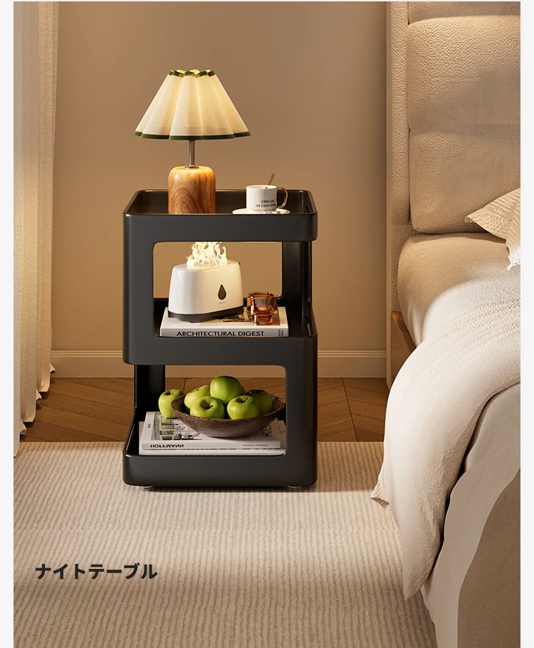 移動可能な小さなサイドテーブル、軽奢なデザインの収納キャビネット!クリエイティブなリビングルーム用、キャスター付きで便利なアイロン製ベッドサイドテーブル。おしゃれで機能的な空間を演出します!