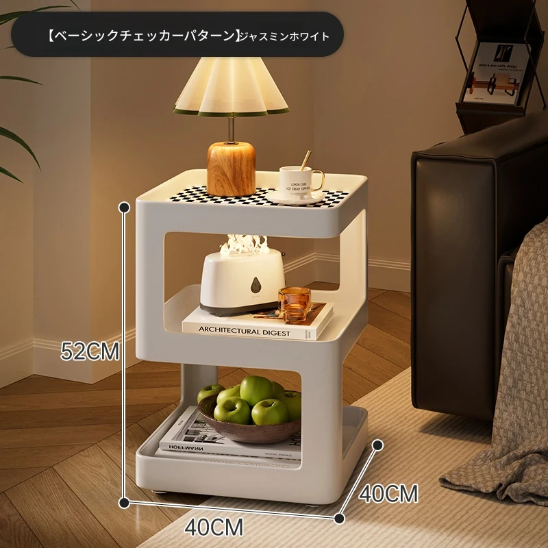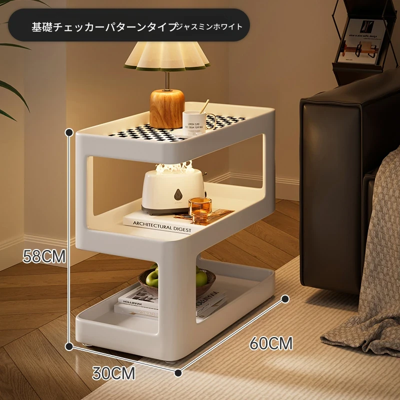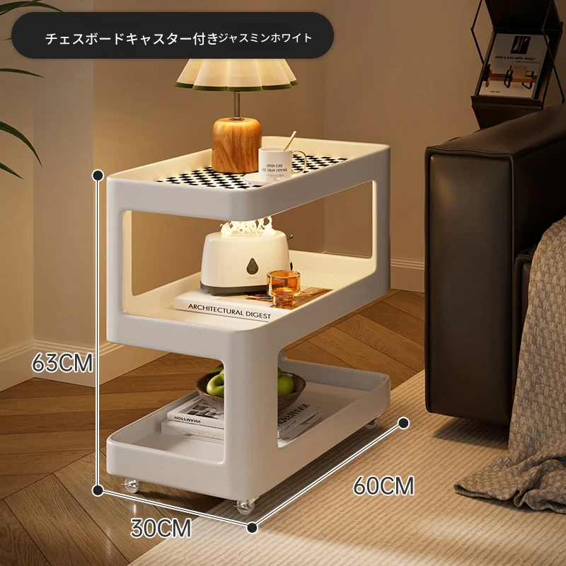 【キャスター付き】ミルクホワイトチェッカーパターン 30*60*63【鉄製】【品質選定】